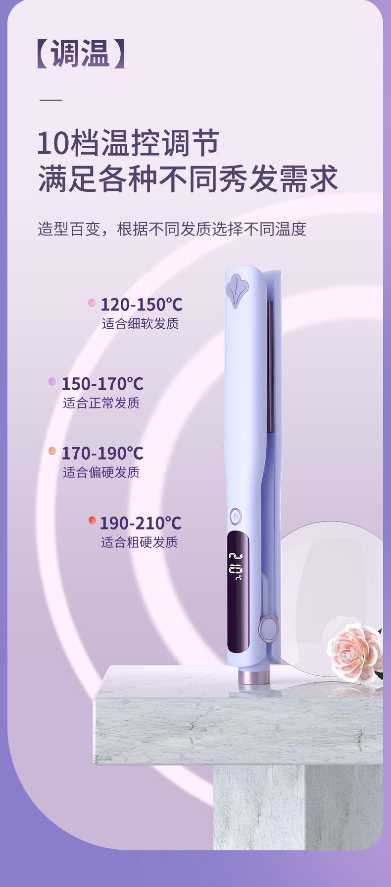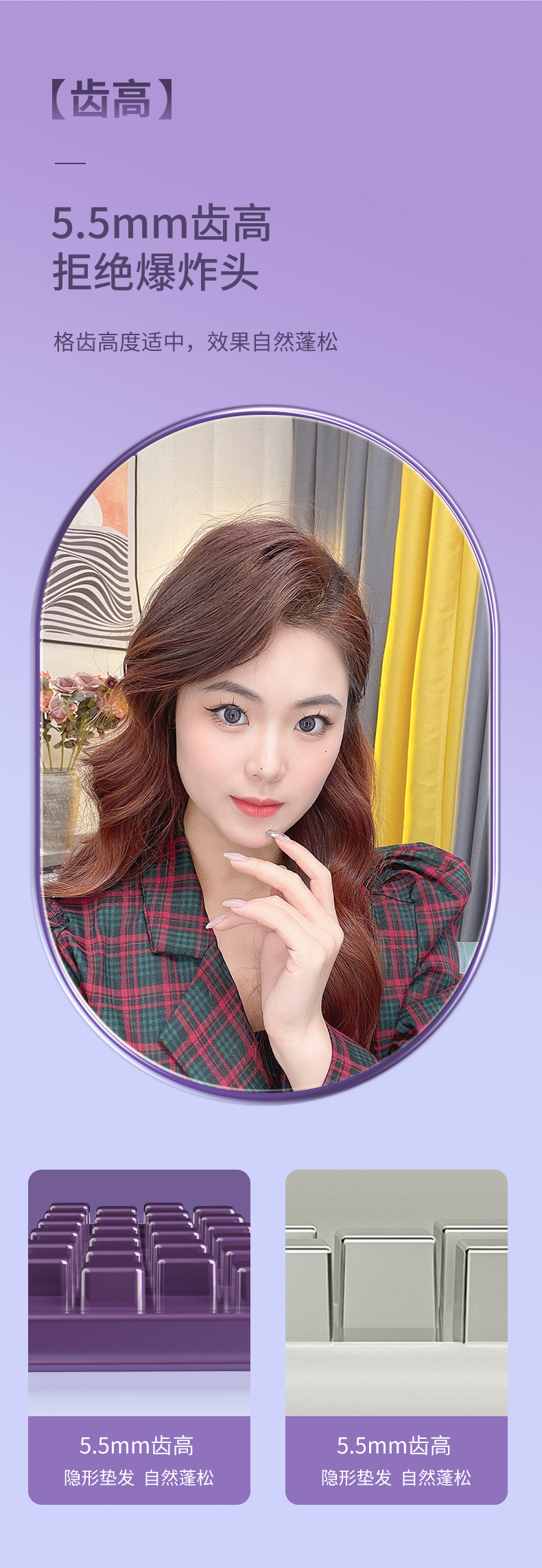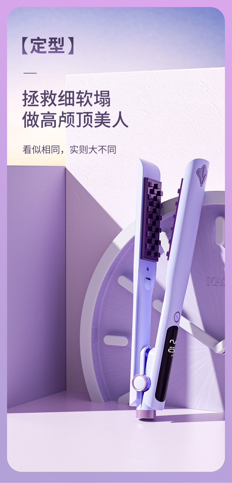 敏煌(MingHuang)玉米烫夹板发根负离子发根颅顶头发蓬松神器玉米须夹垫卷发棒 顶配款/千万负离子/10档调温HD-838A紫色(顶配款)
