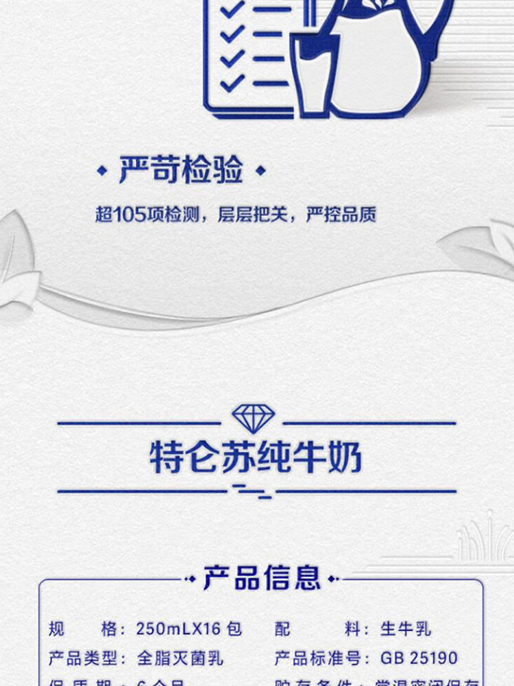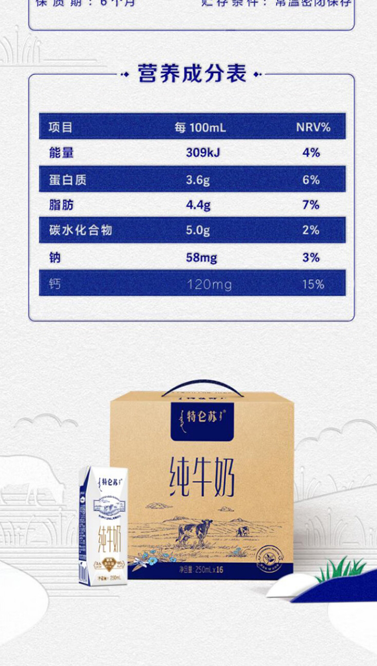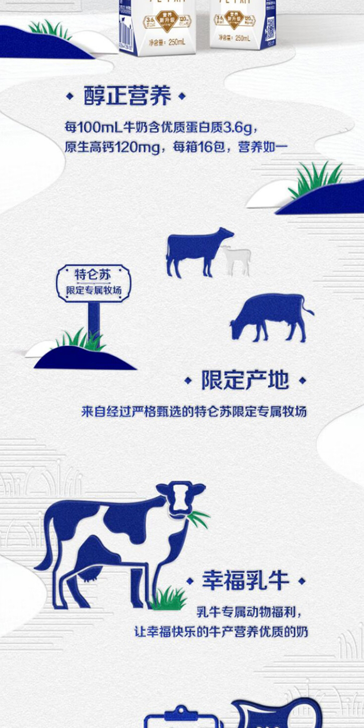 特仑苏 纯牛奶利乐钻250mL*16盒