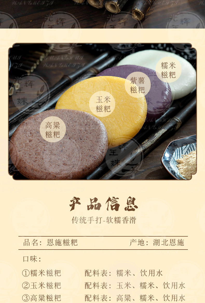 土家粗粮糍粑彩色糍粑(糯米、玉米、高粱、紫薯四种口味)