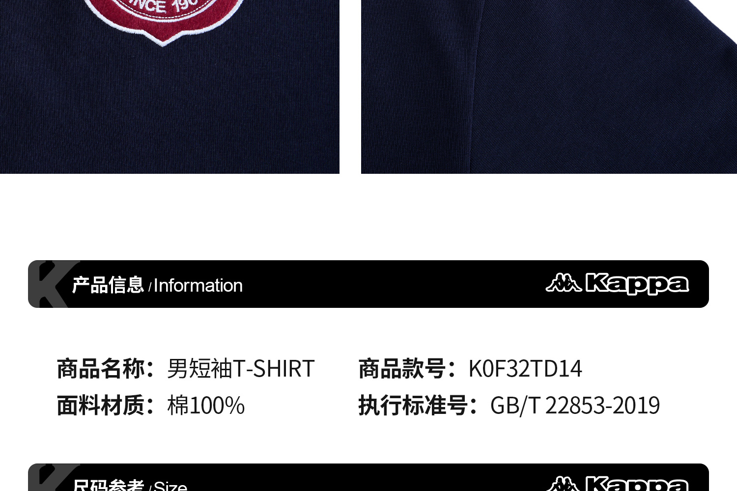 Kappa卡帕背靠背夏季运动短袖2025新款纯棉透气t恤男休闲半袖上衣K0F32TD14