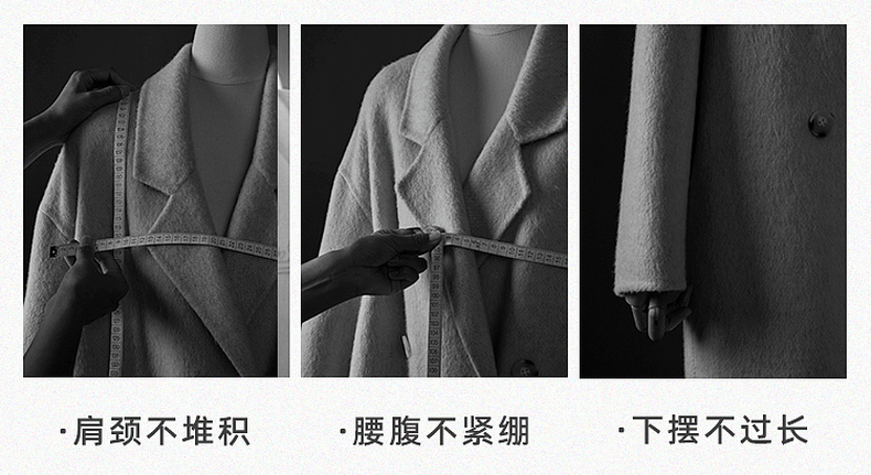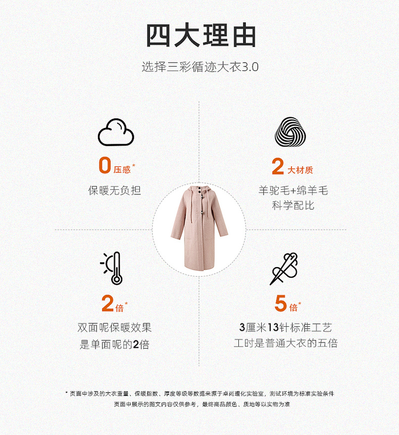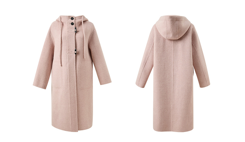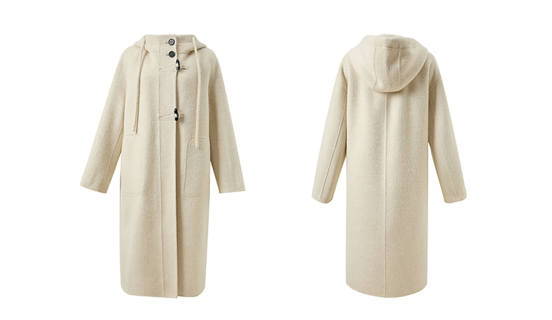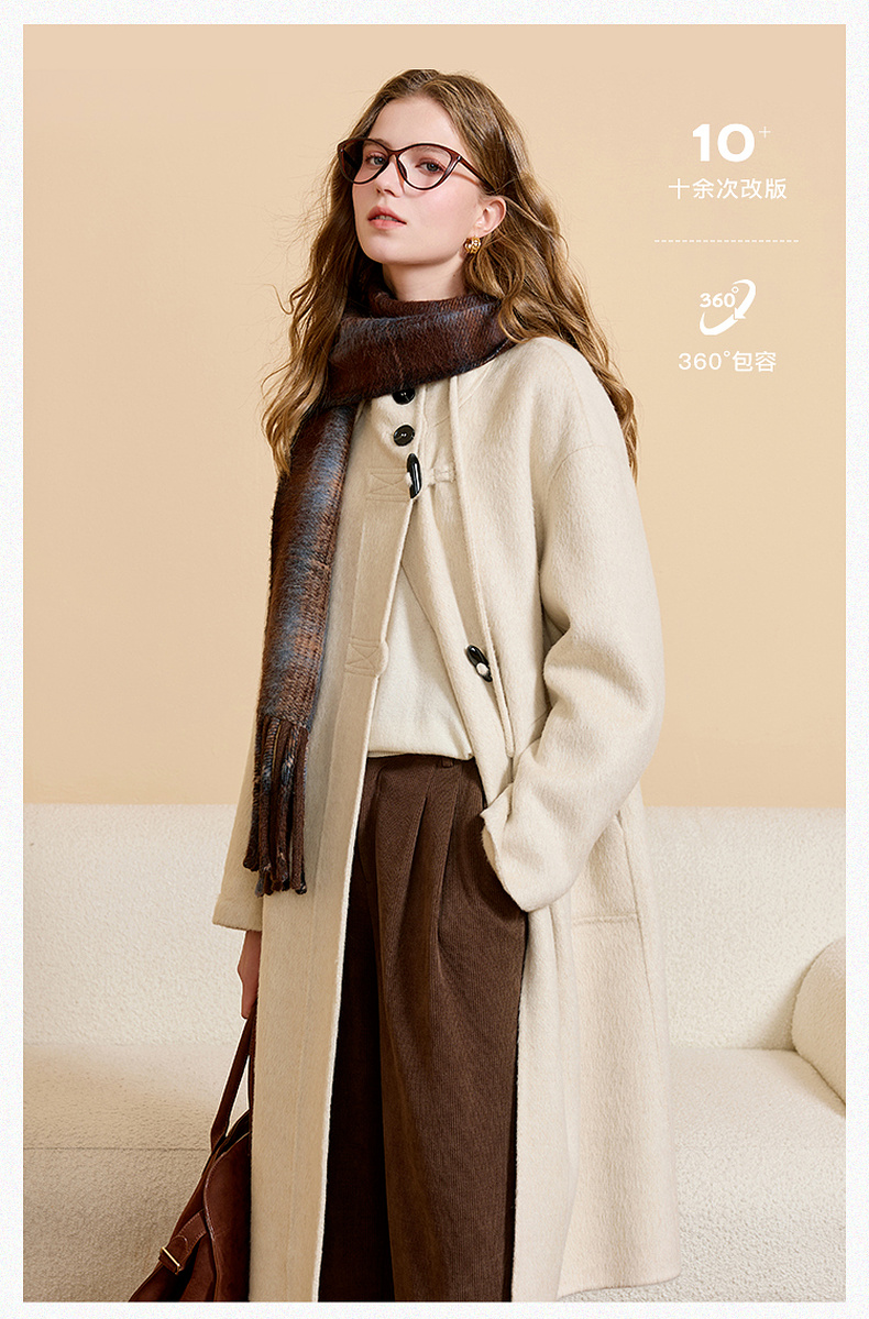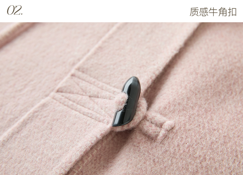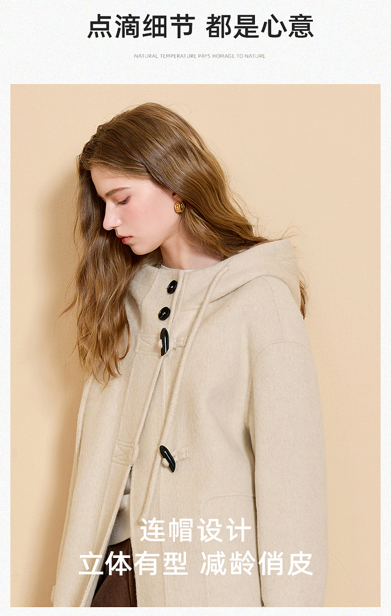 【阿尔巴卡】三彩2025冬季新款连帽双面呢大衣长款牛角扣M