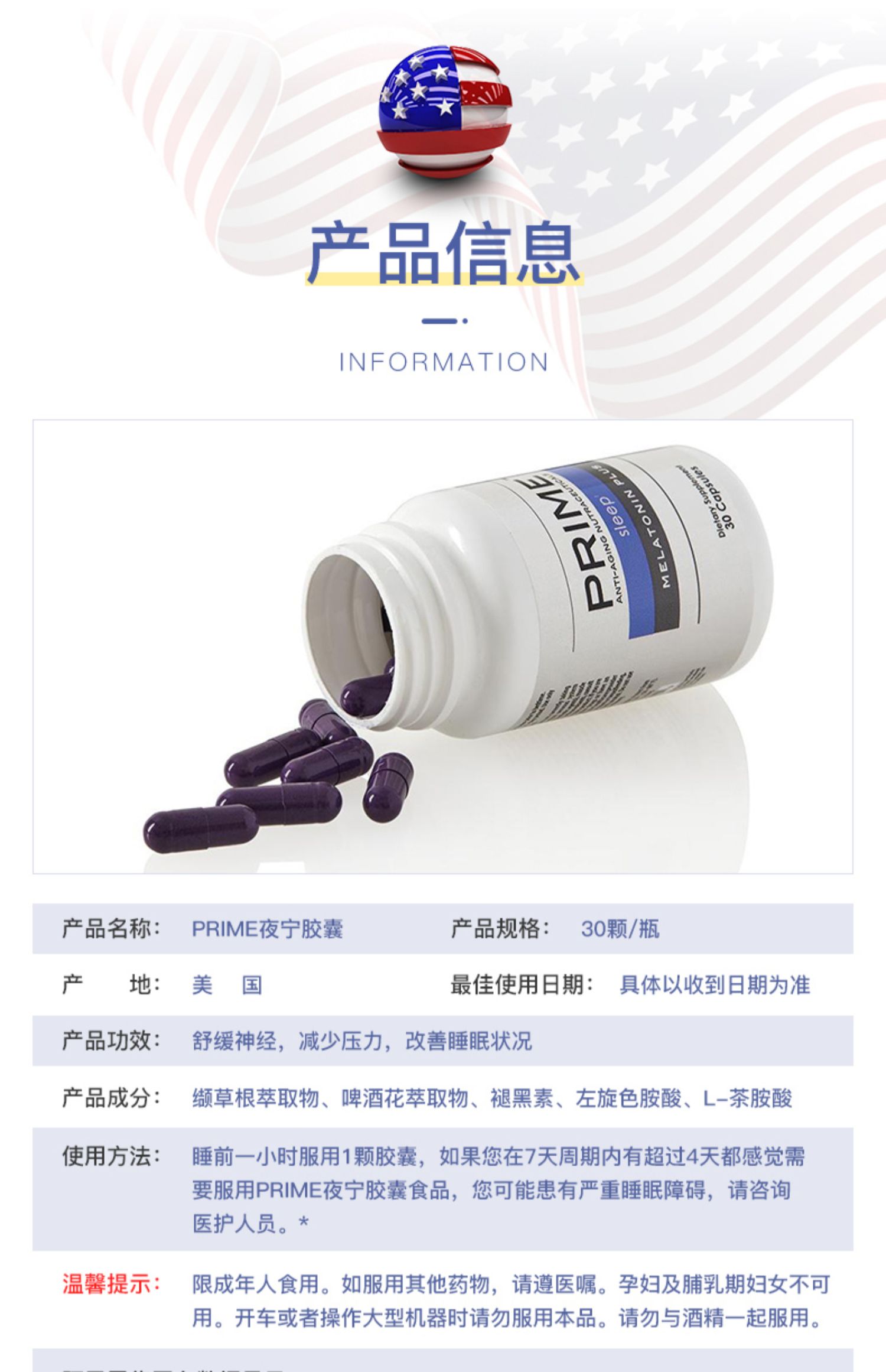 Prime 夜宁胶囊-美国直邮仓发货