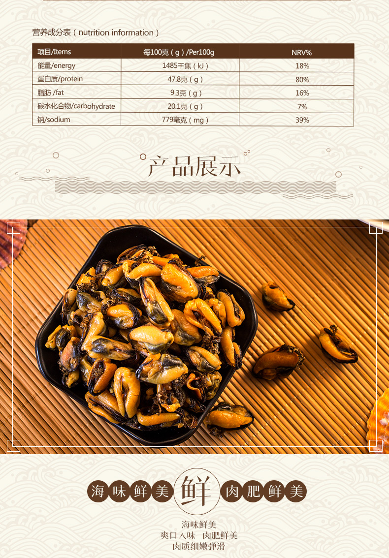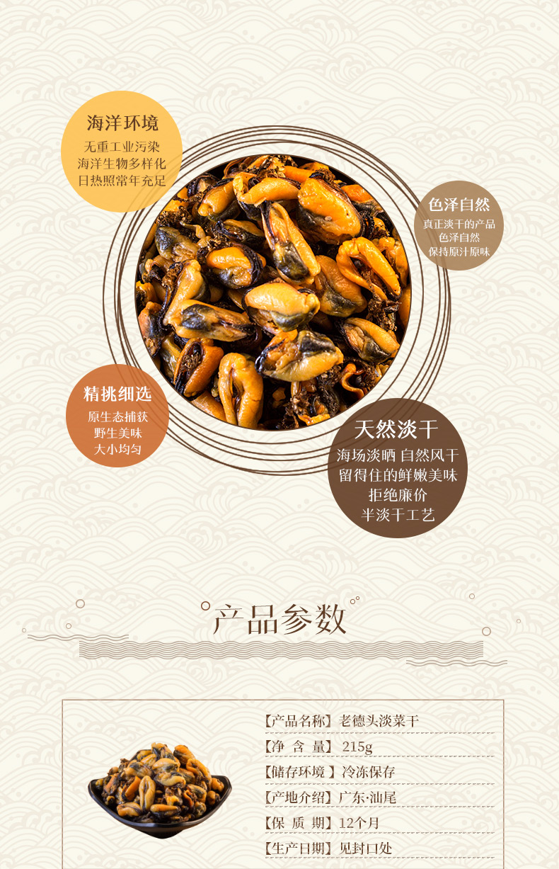 【老德头】淡菜干 海虹干肥贻 青口贻贝 煲汤壳菜 海鲜干货 215g/罐