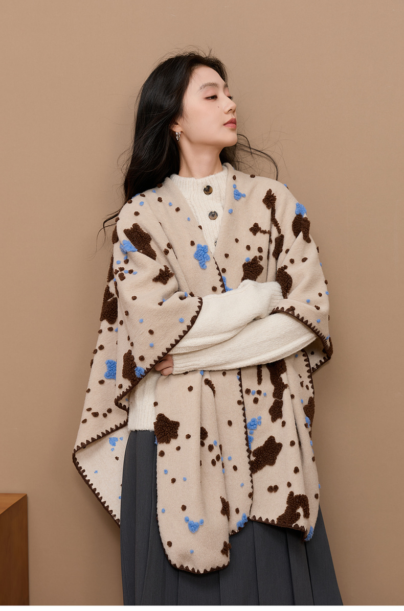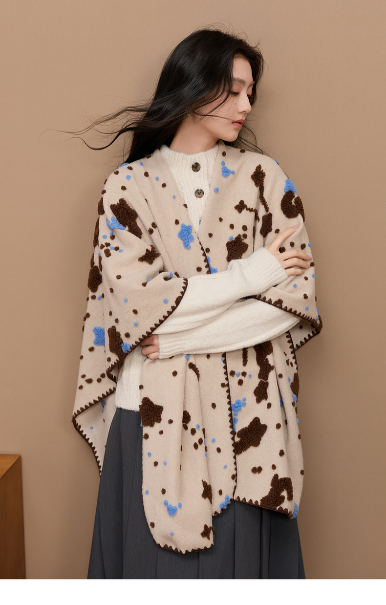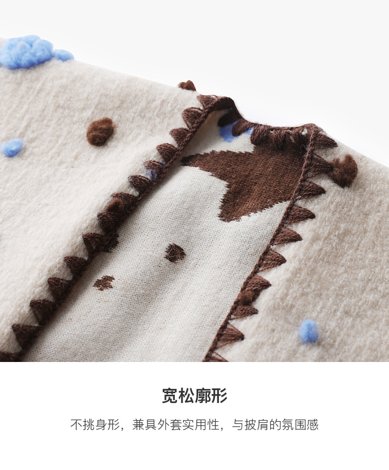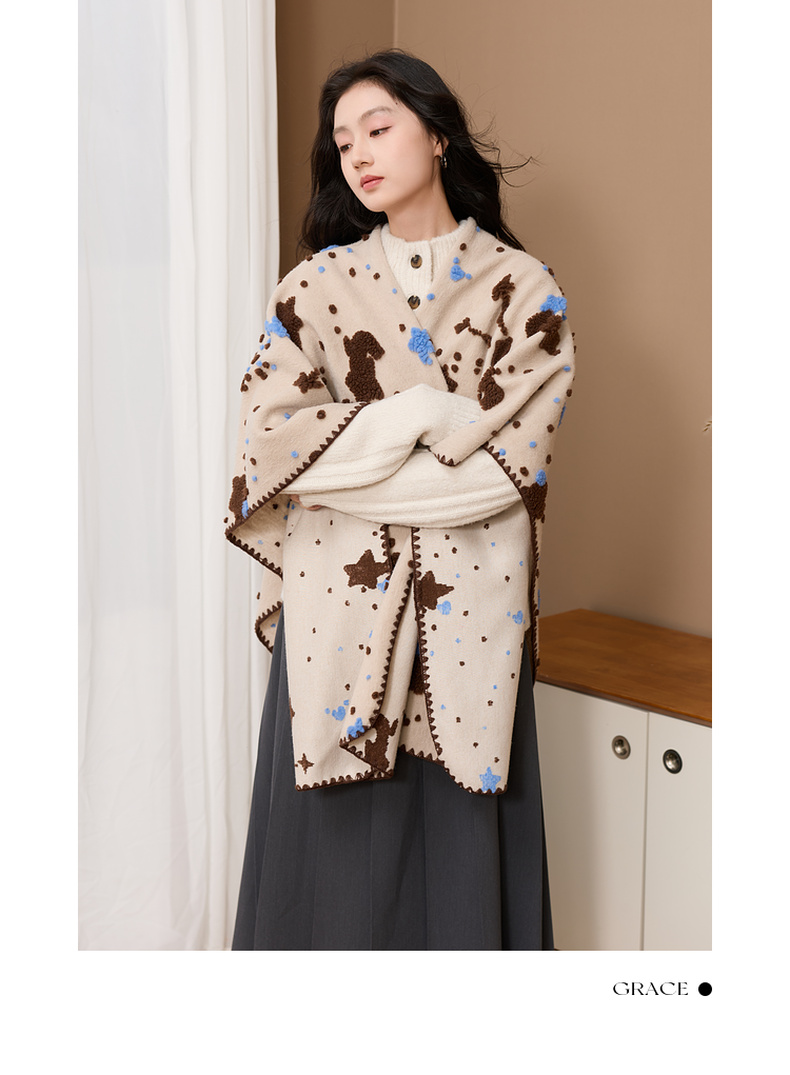 三彩2025新款立体图案外搭毛绒披肩保暖文艺女氛围感可爱趣味