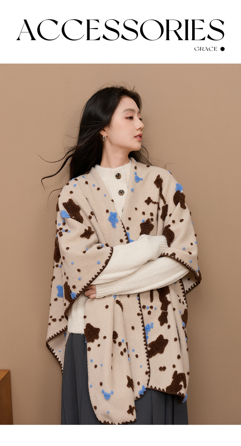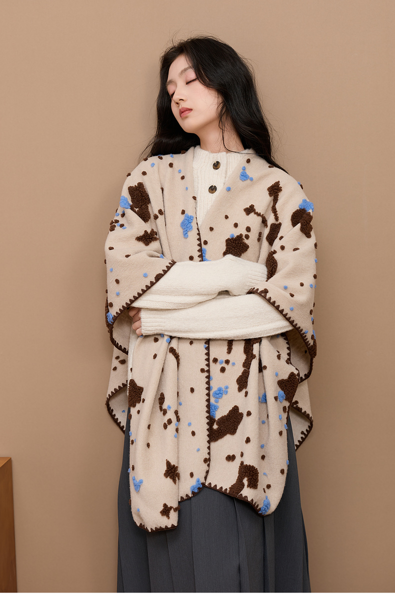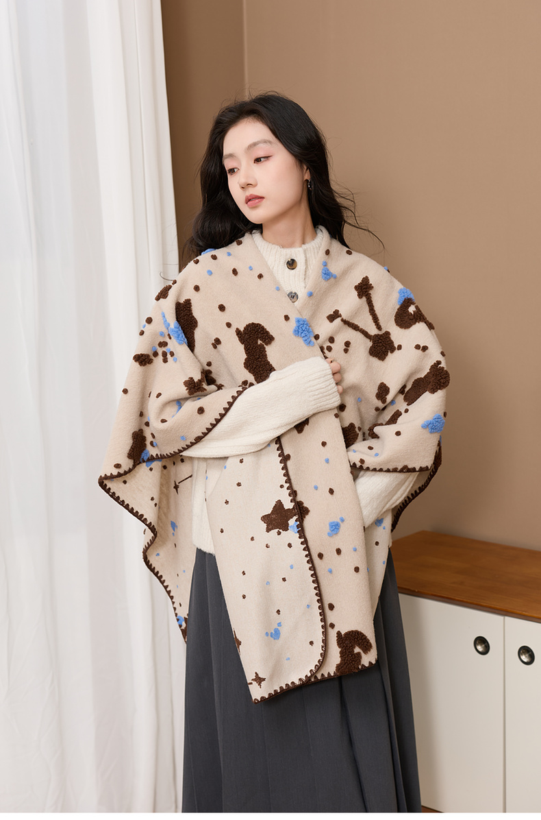 三彩2025新款立体图案外搭毛绒披肩保暖文艺女氛围感可爱趣味