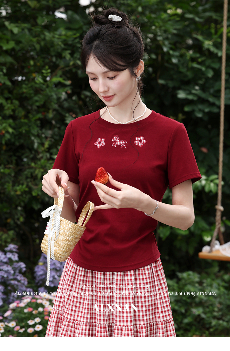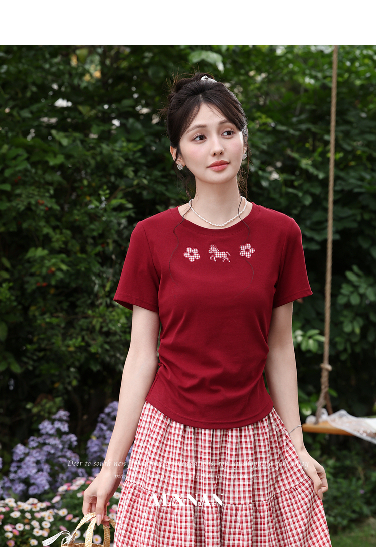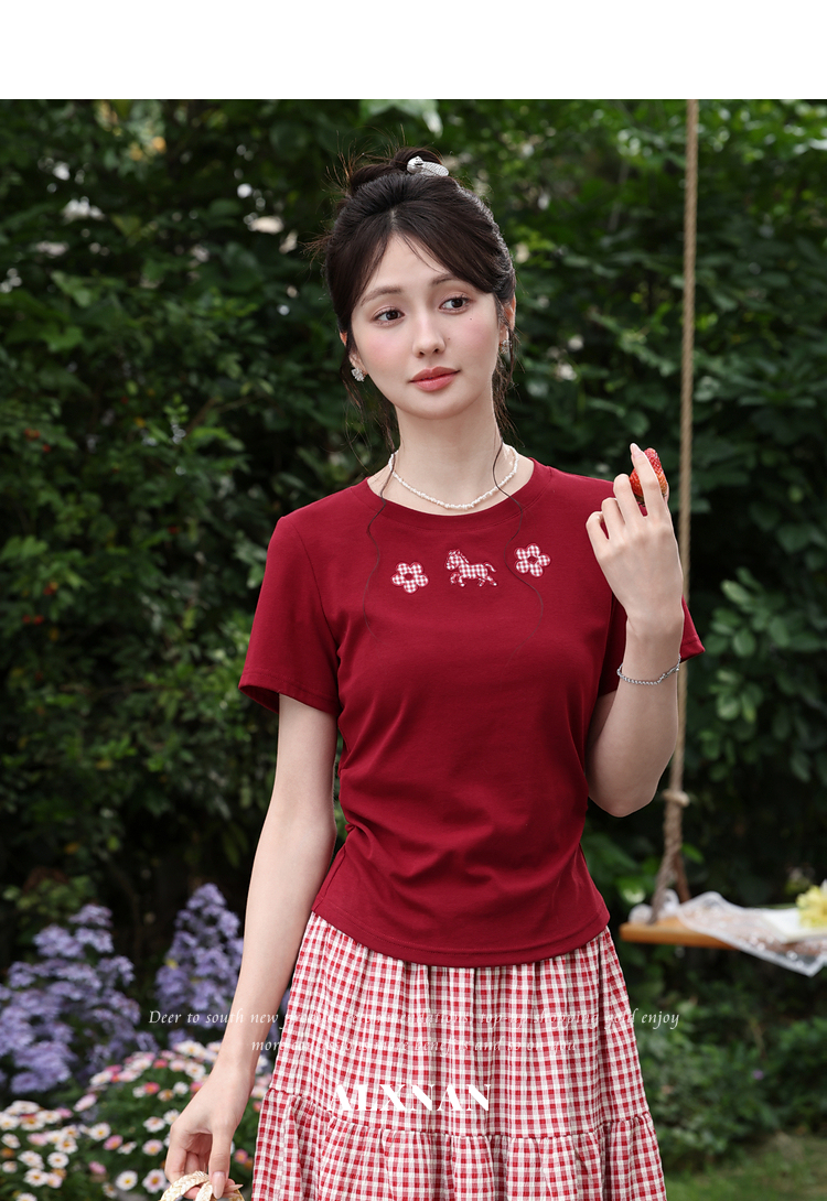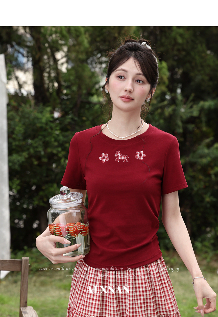 鹿向南【0330/20:00新品前一小时7折限量100件】红色T恤