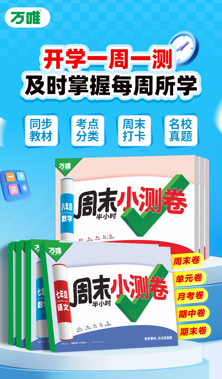 2026新版万唯周末半小时小测卷初中七八年级上册同步教材周测单元测期中期末试卷语文数学英语物理道法历史人教北师万维教育