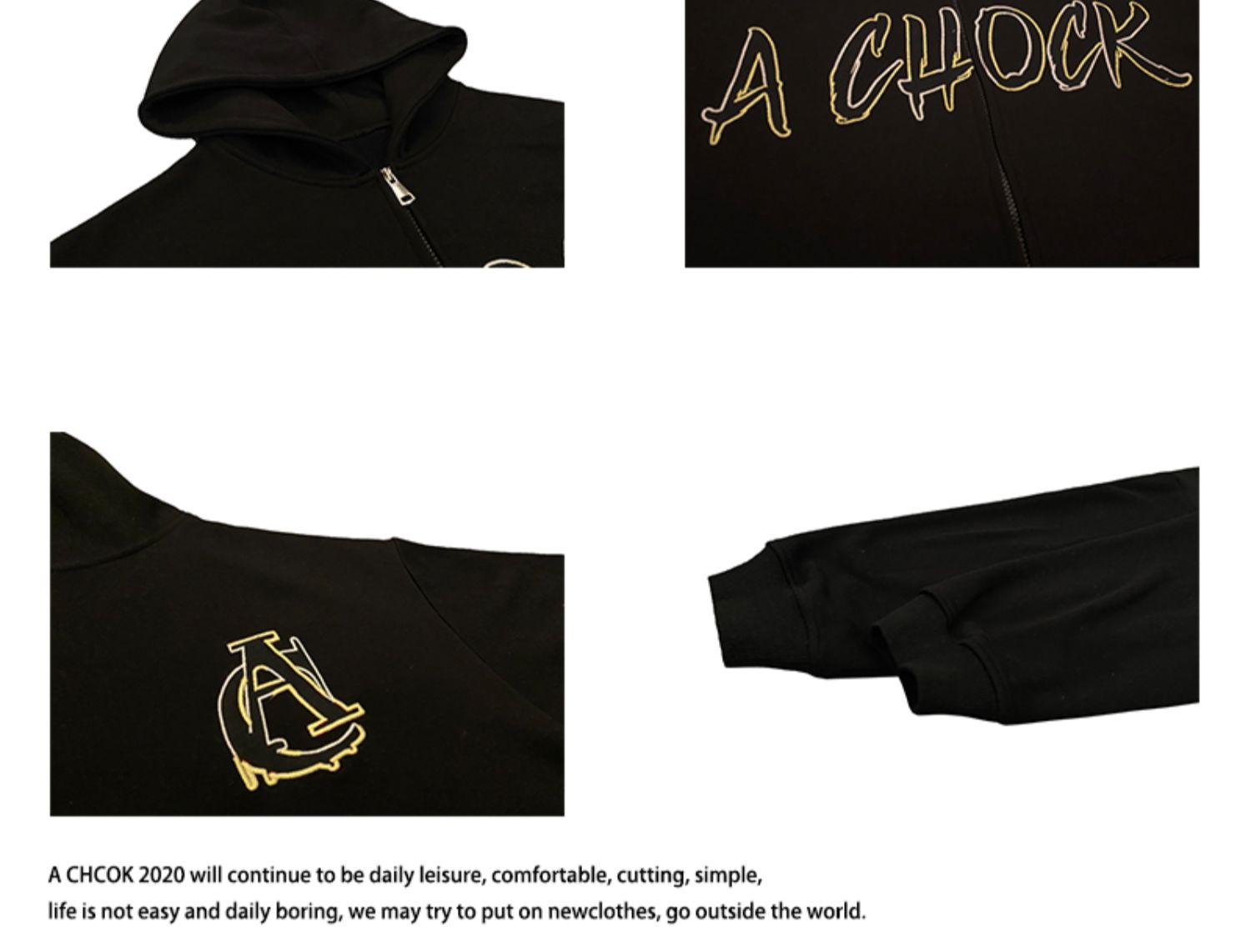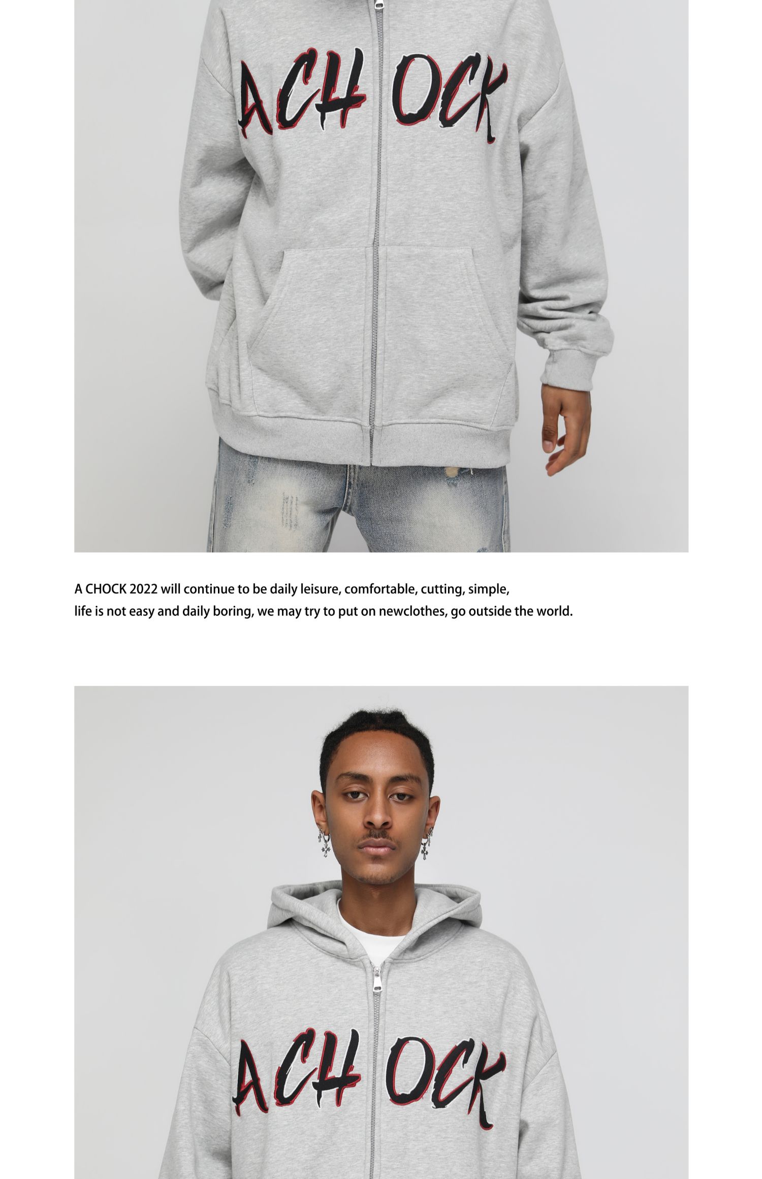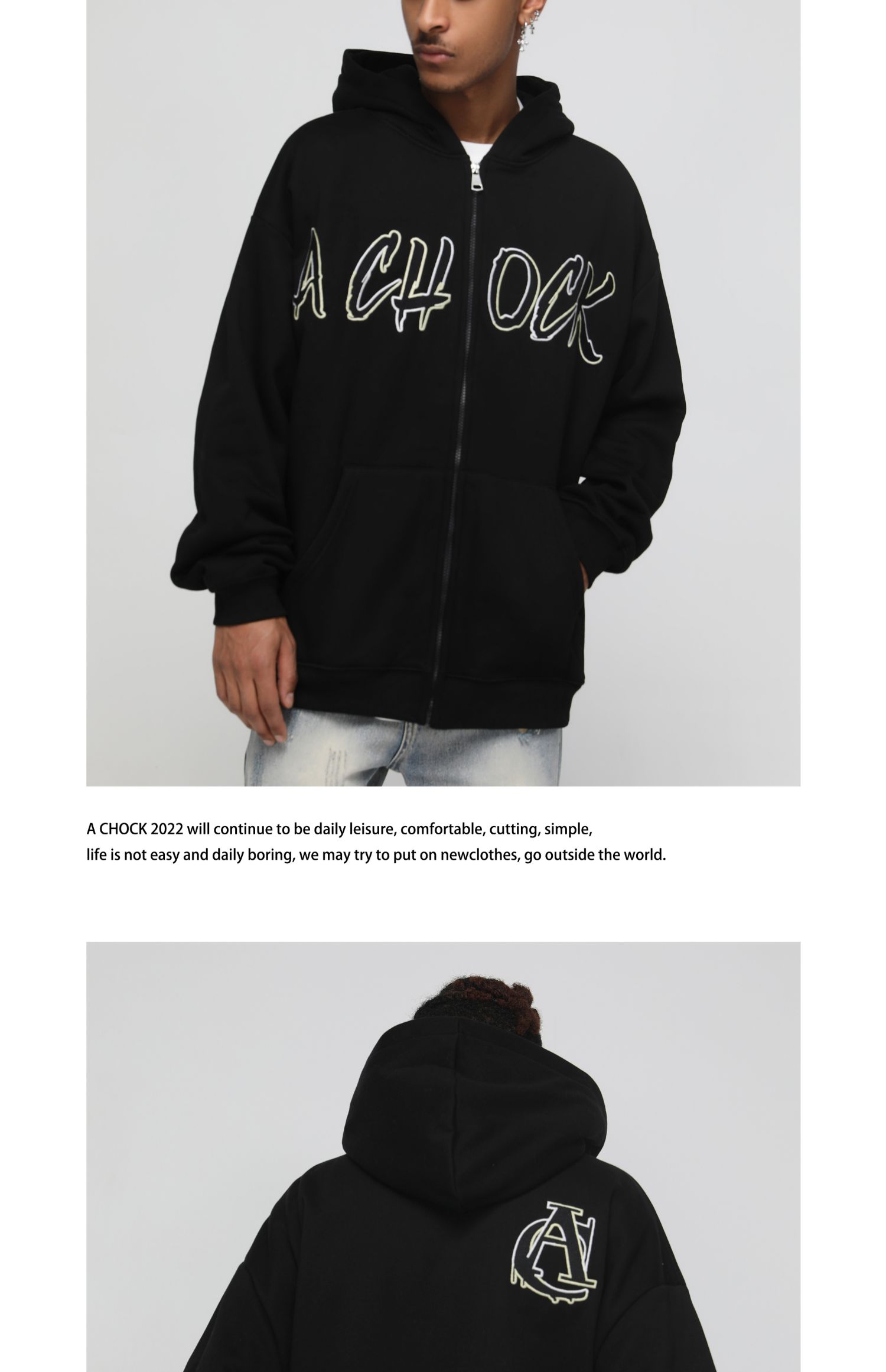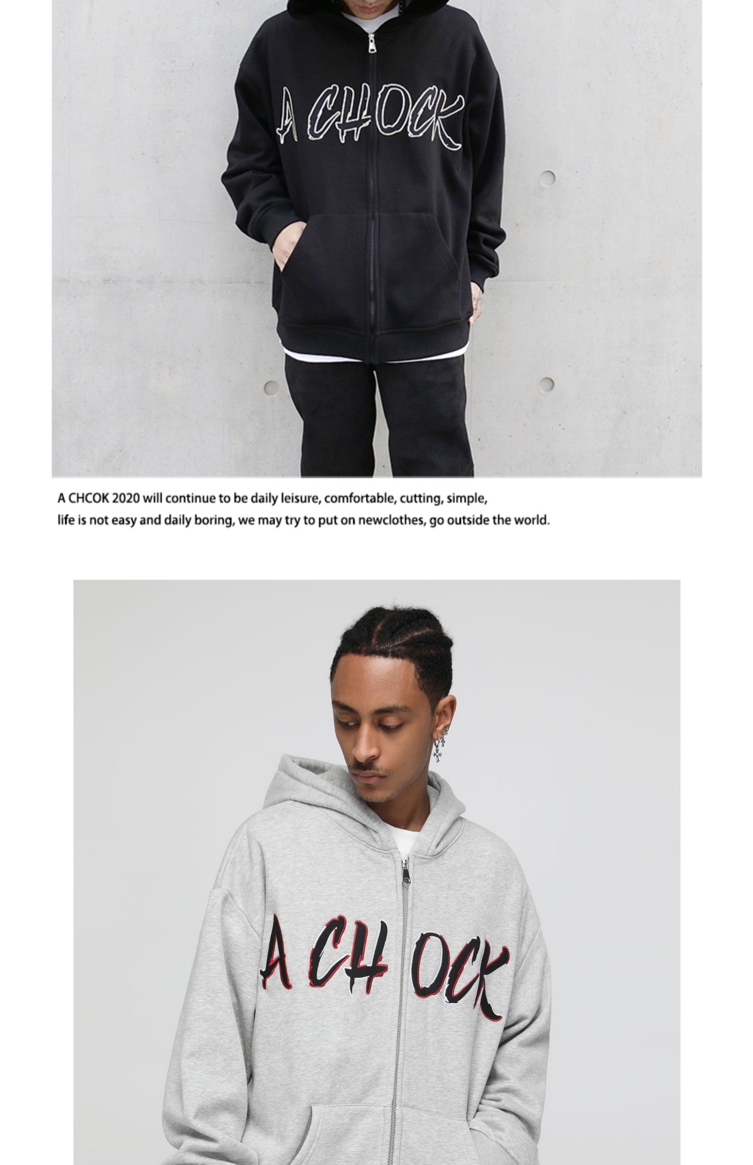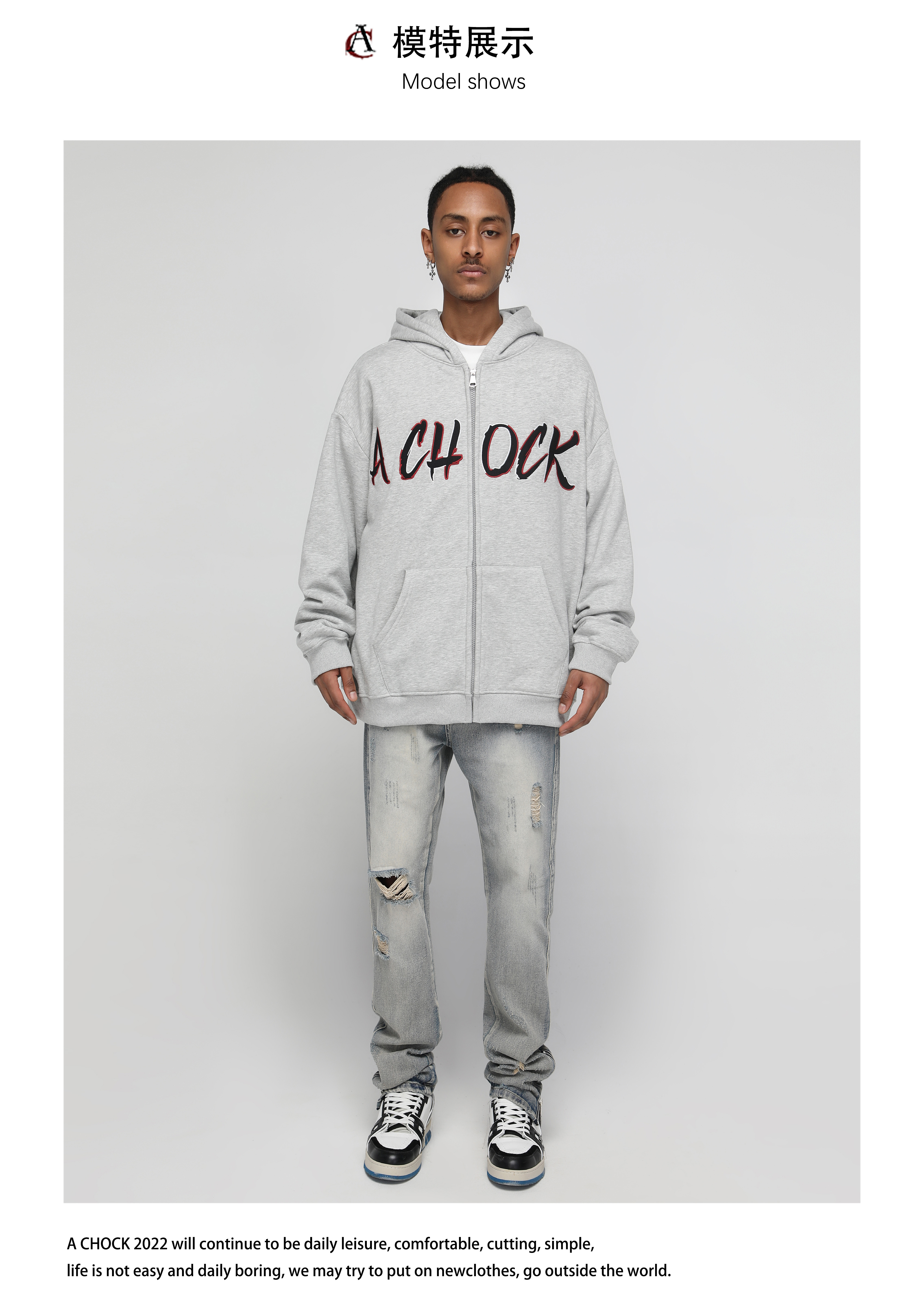 【Achock官方店】国潮毛粒绒刺绣印花拉链卫衣春季简约连帽外套男