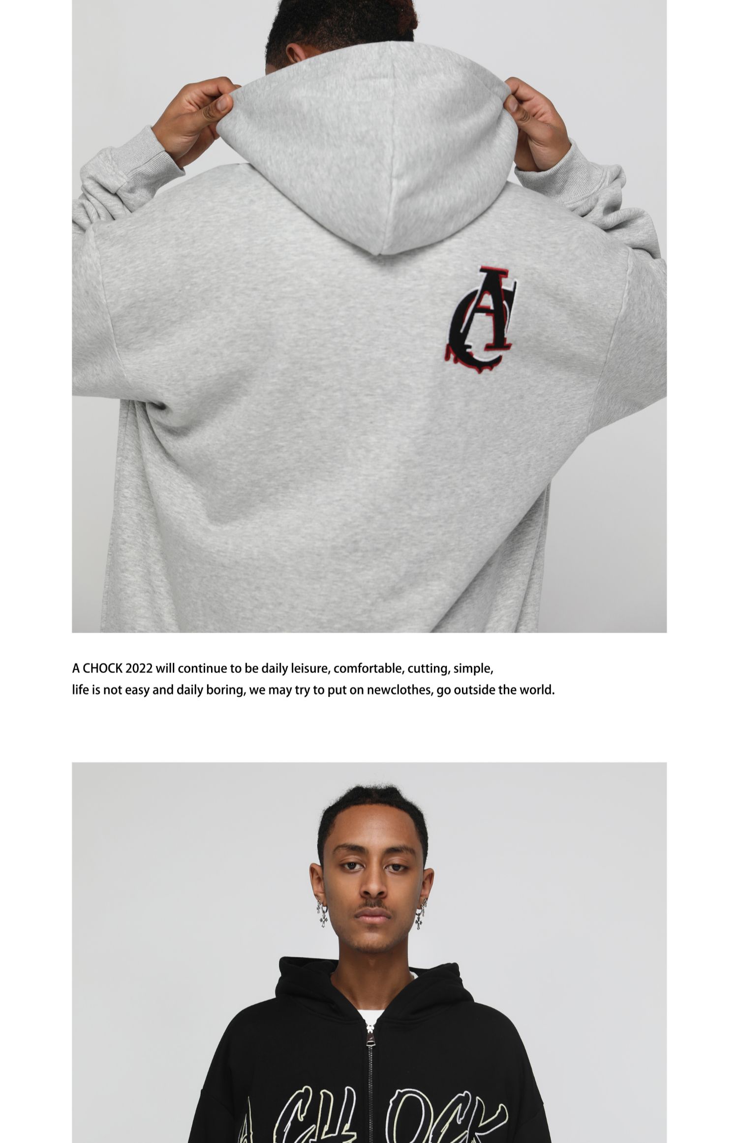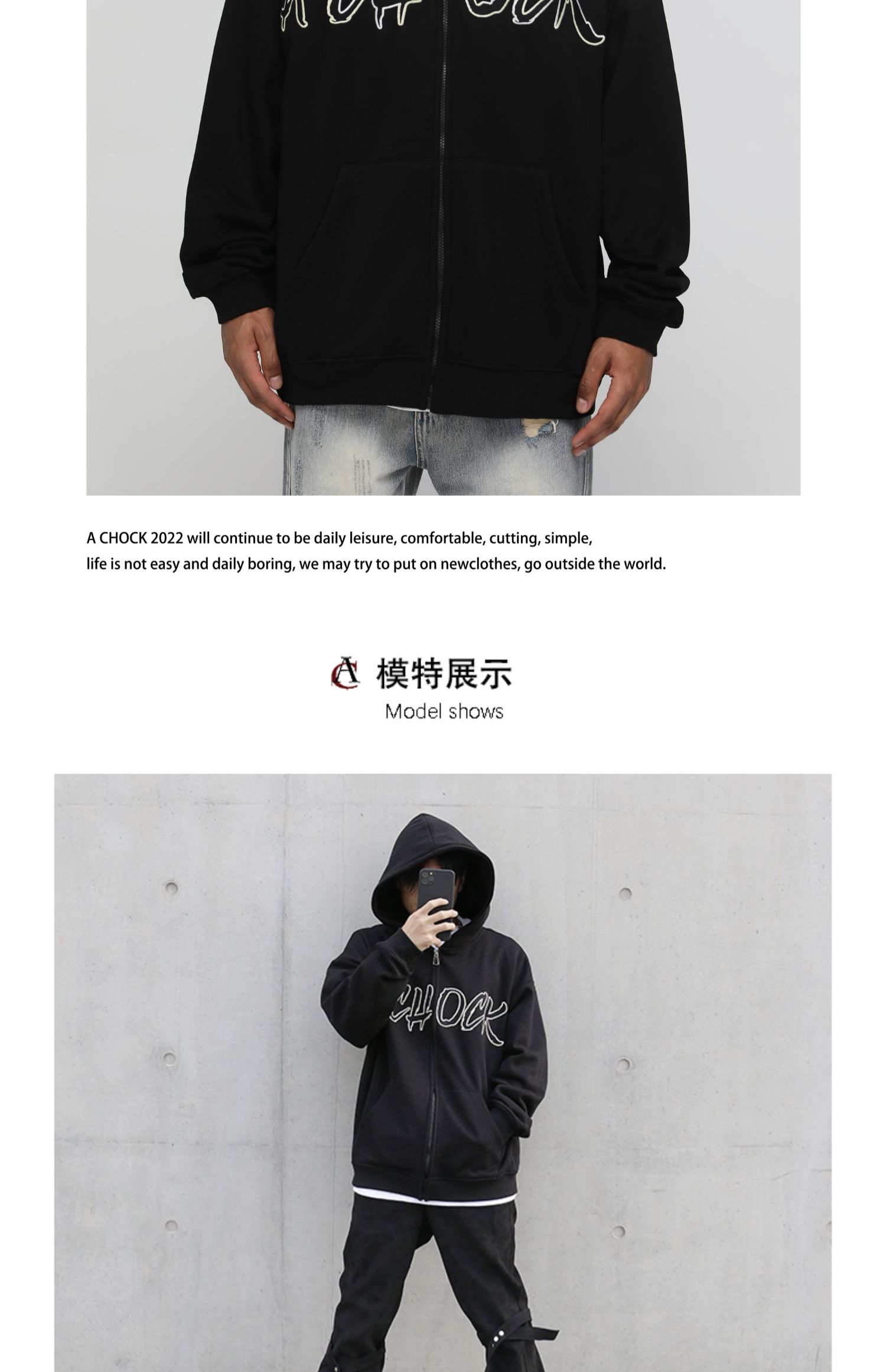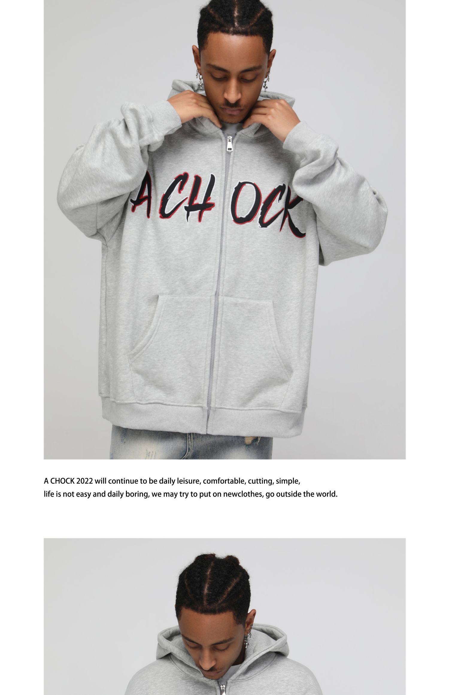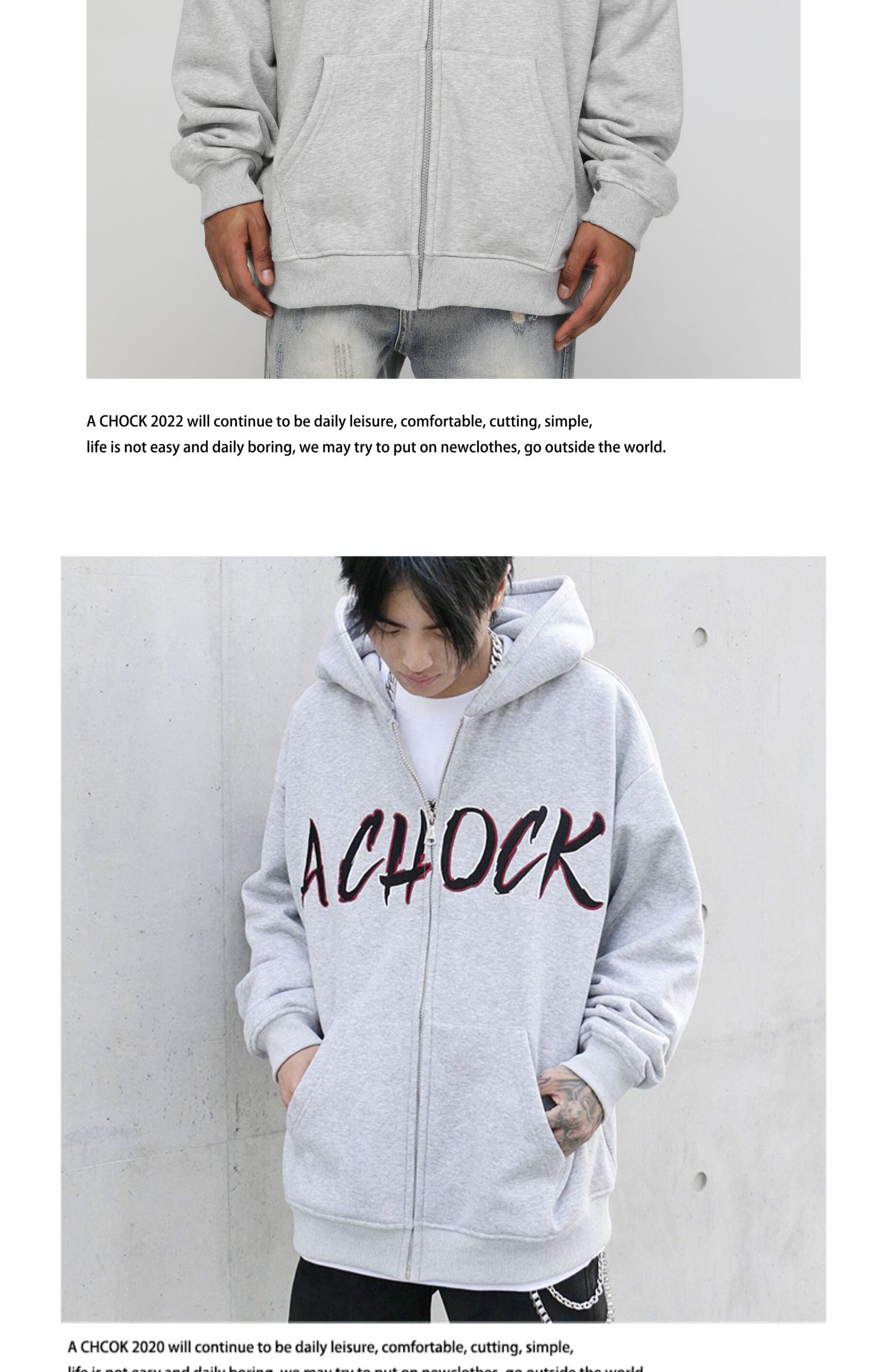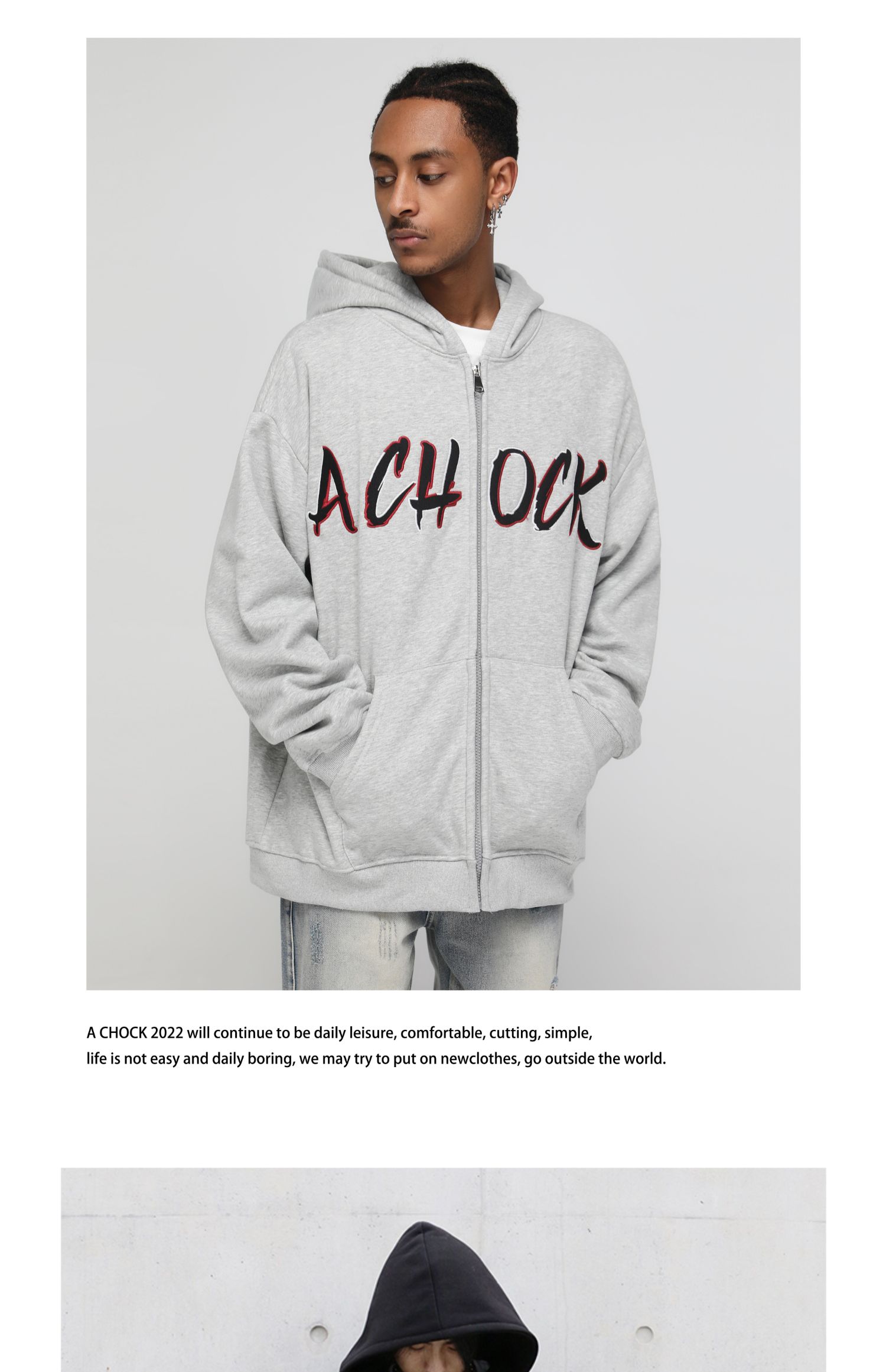 【Achock官方店】国潮毛粒绒刺绣印花拉链卫衣春季简约连帽外套男