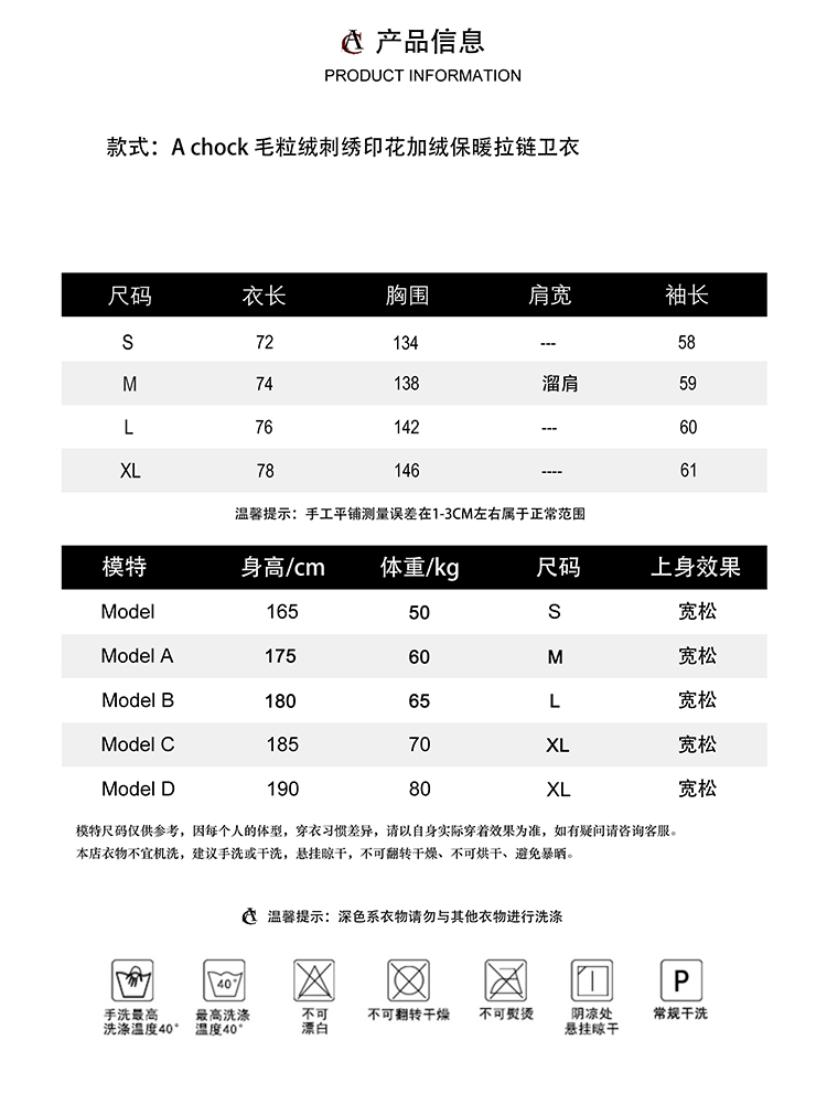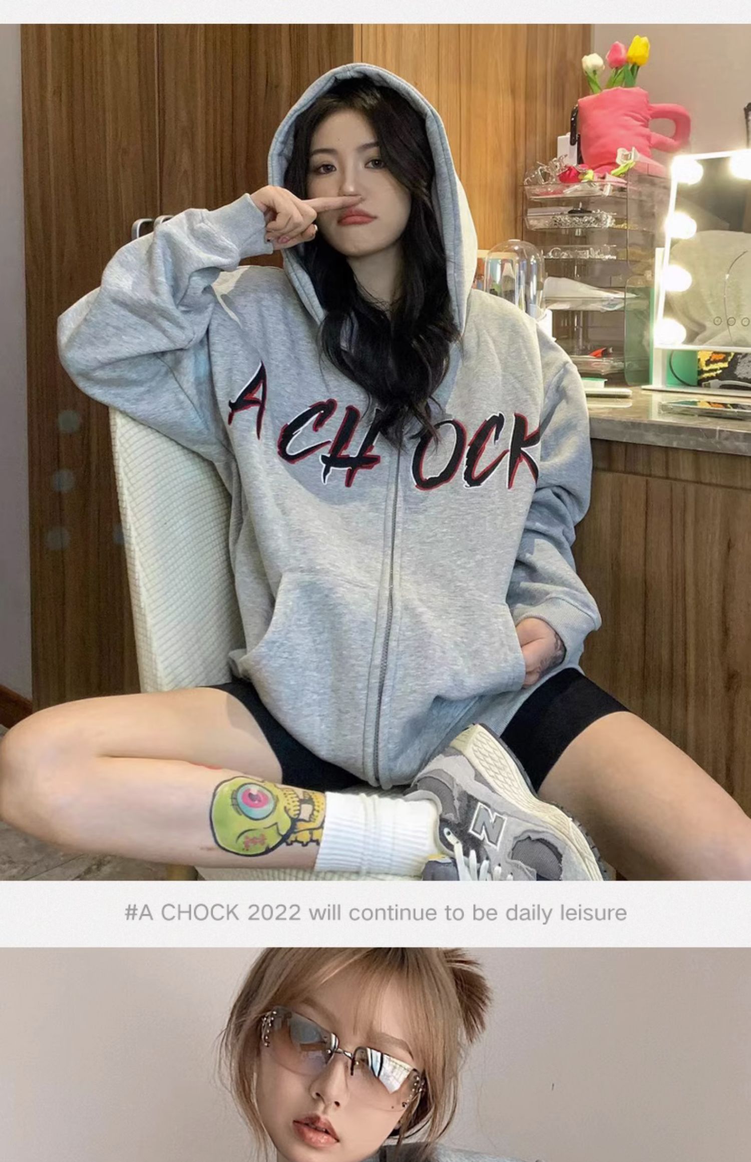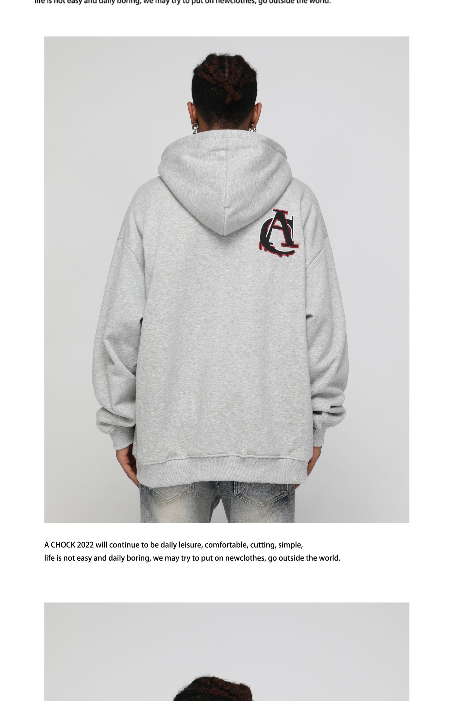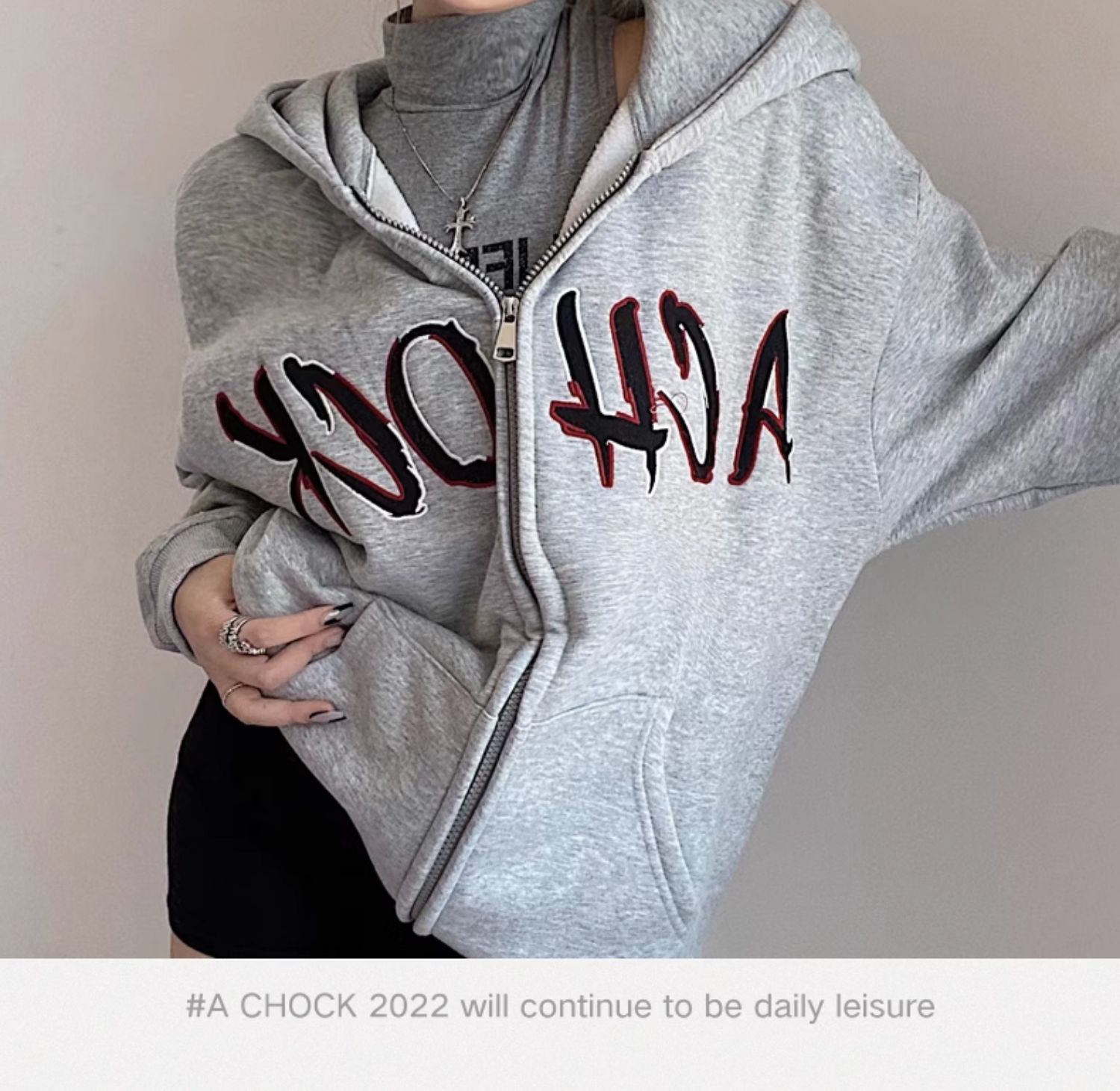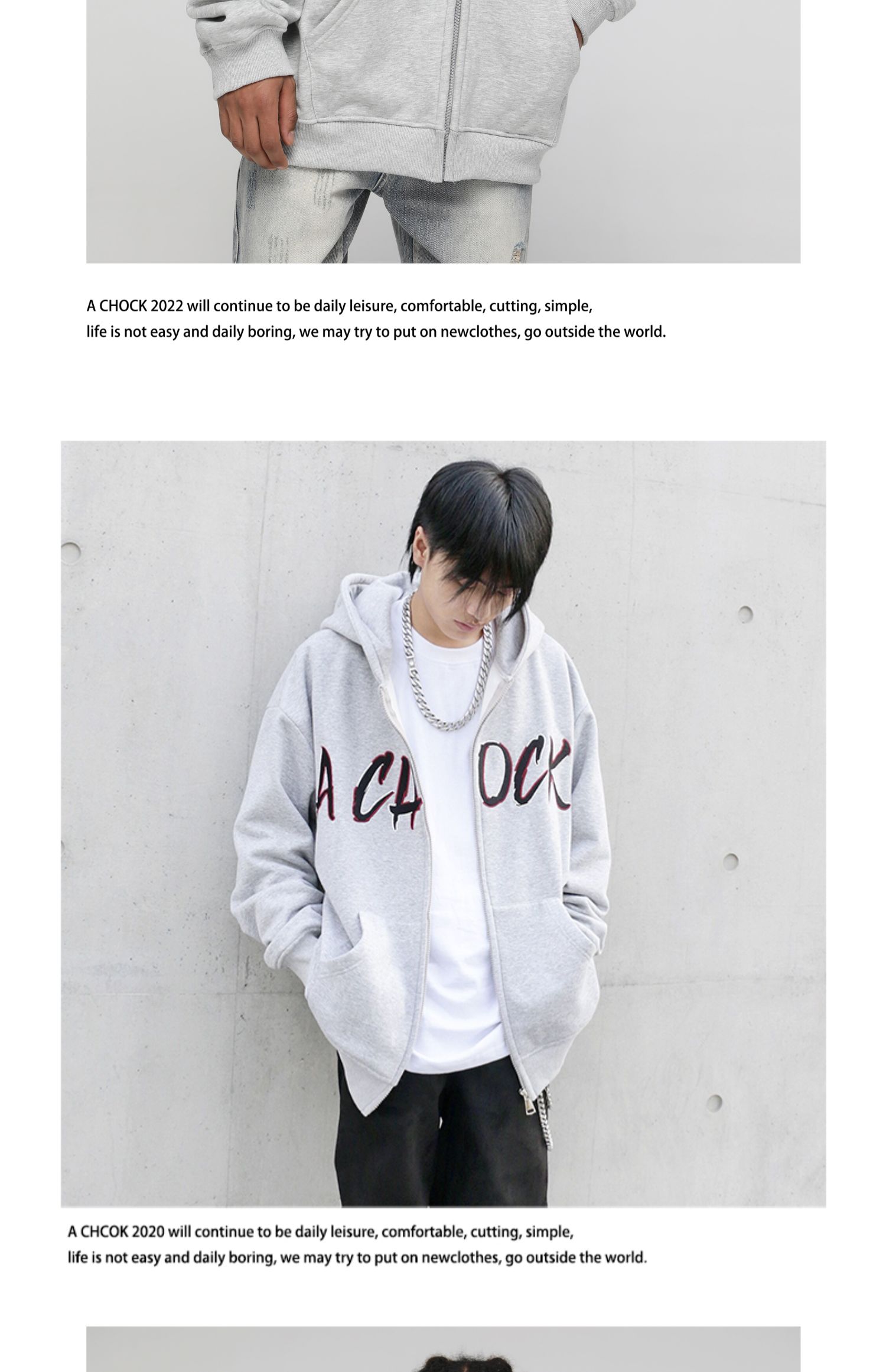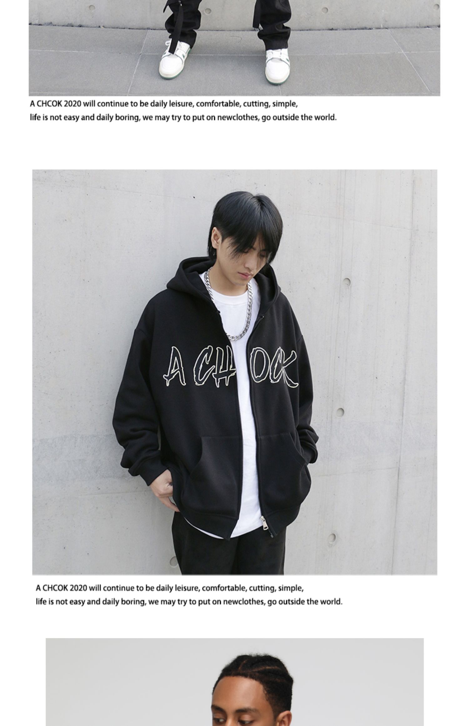 【Achock官方店】国潮毛粒绒刺绣印花拉链卫衣春季简约连帽外套男