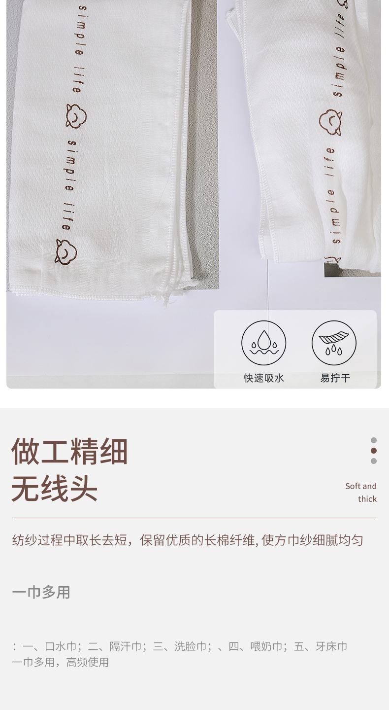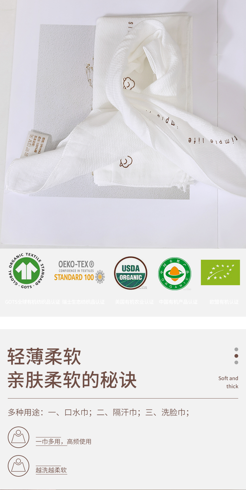 素道天然有机彩棉提花手帕 纯棉隔汗巾 A类口水巾 34*36cm
