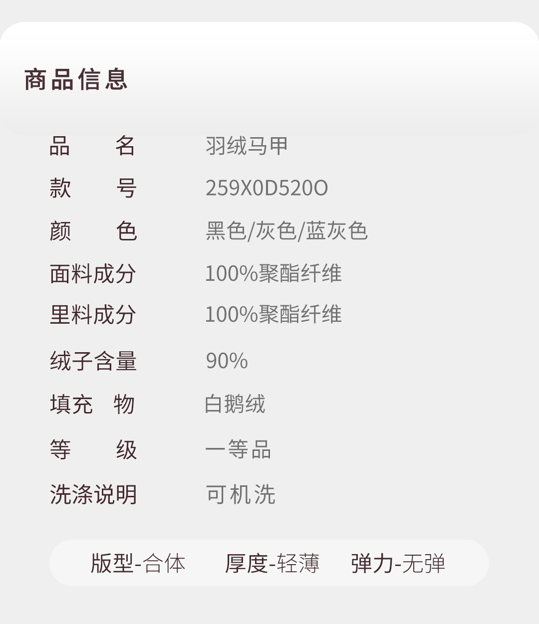 【北极七号】90白鹅绒立领羽绒马甲259X0D520O[门店专款]