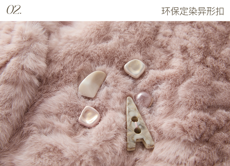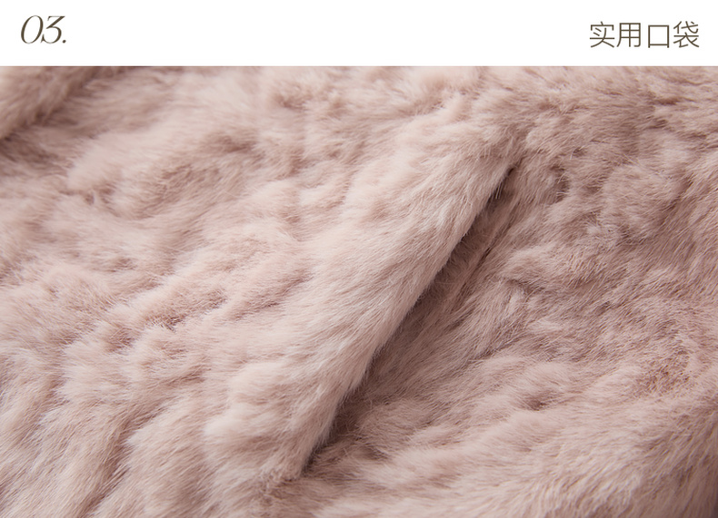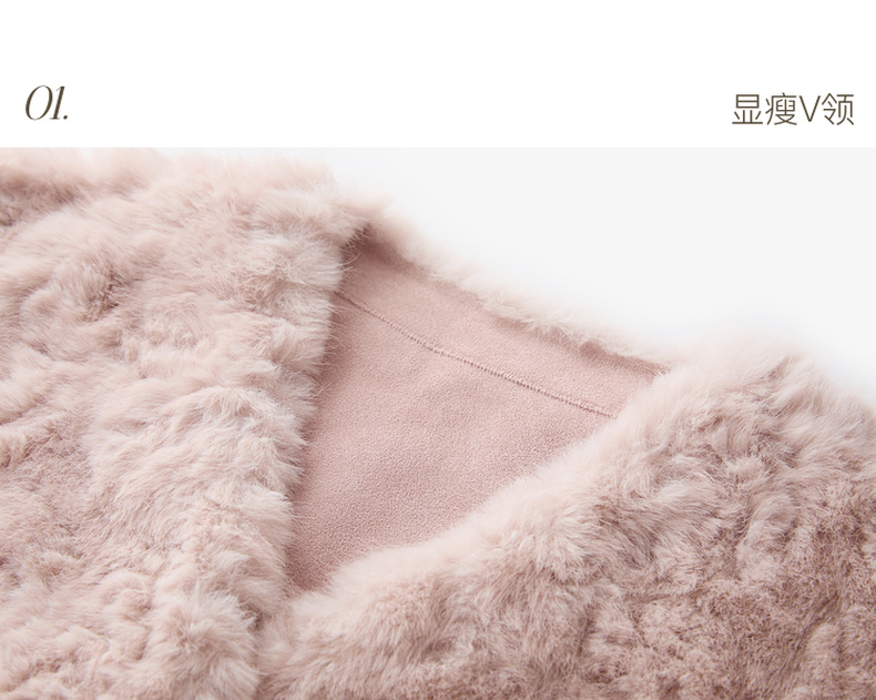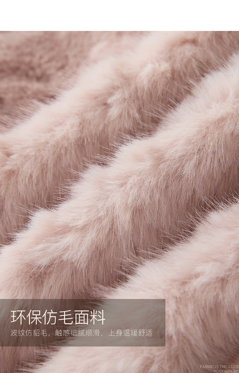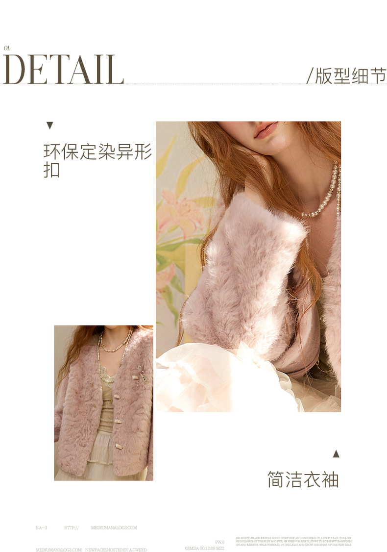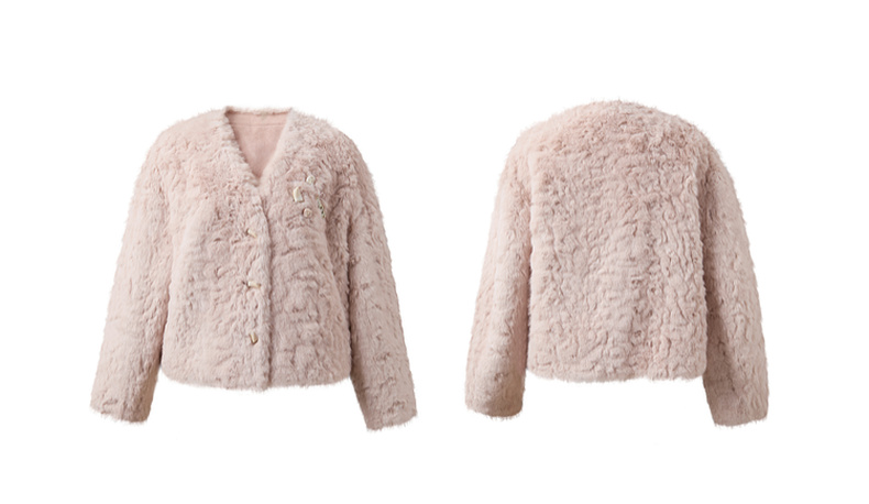 三彩2025冬季新款千金风V领环保皮草毛毛外套短款宽松仿皮草M