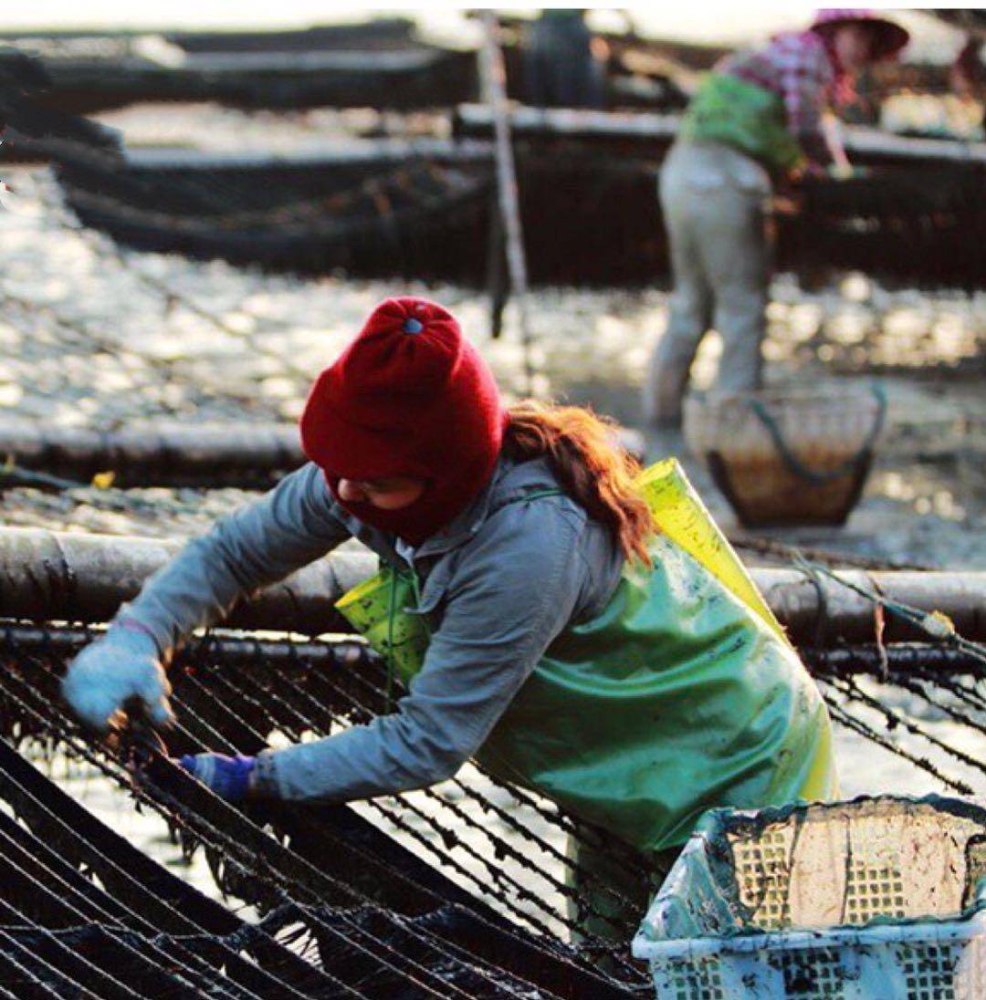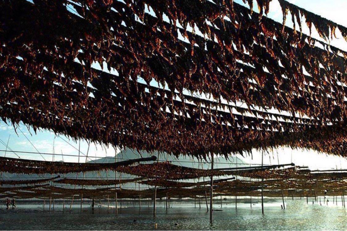 从第一波的打捞开始,前后仅有7天的黄金时期,只有在这个时间段采摘的紫菜才能被称为“头水紫菜”。 不负众望的是,头水紫菜无论在其鲜嫩的口感还是营养含量上,都比其他“兄弟姐妹们”更胜一筹。每年10月,是头水紫菜丰收的季节,一望无际的海面上,整齐划分成无数方方正正的区域,每一块区域便是一块紫菜田。