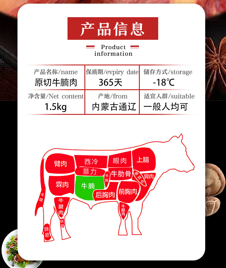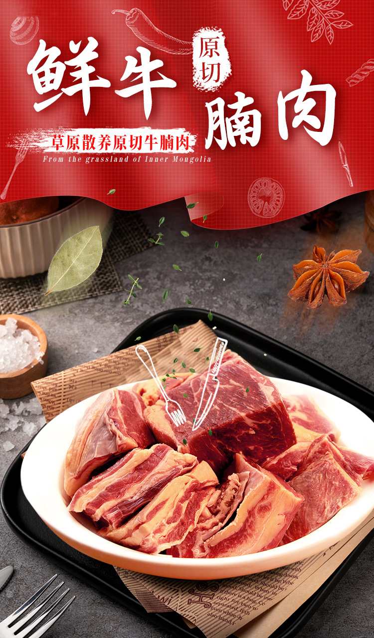 【沙漠甜心】内蒙古大草原散养原切无添加黄膘牛腩 1.5kg/袋(顺丰)
