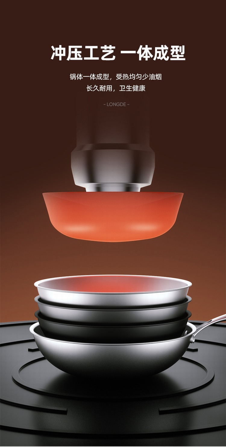 龙的悦享系列不锈钢炒锅LD-CG600