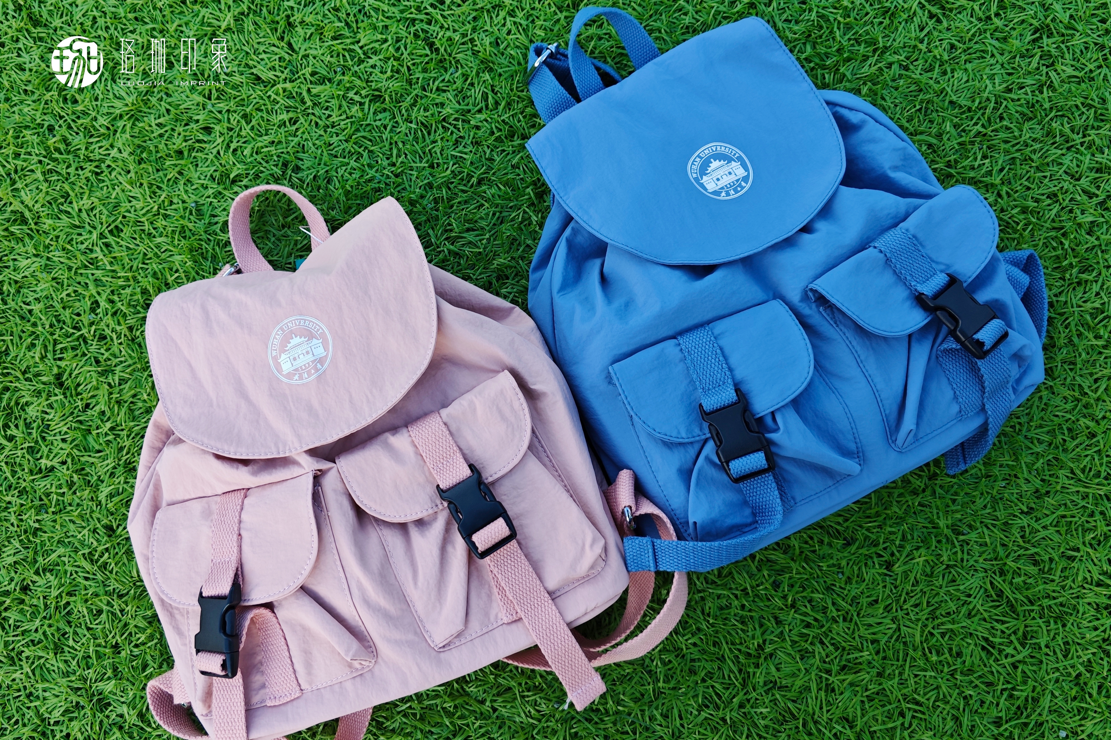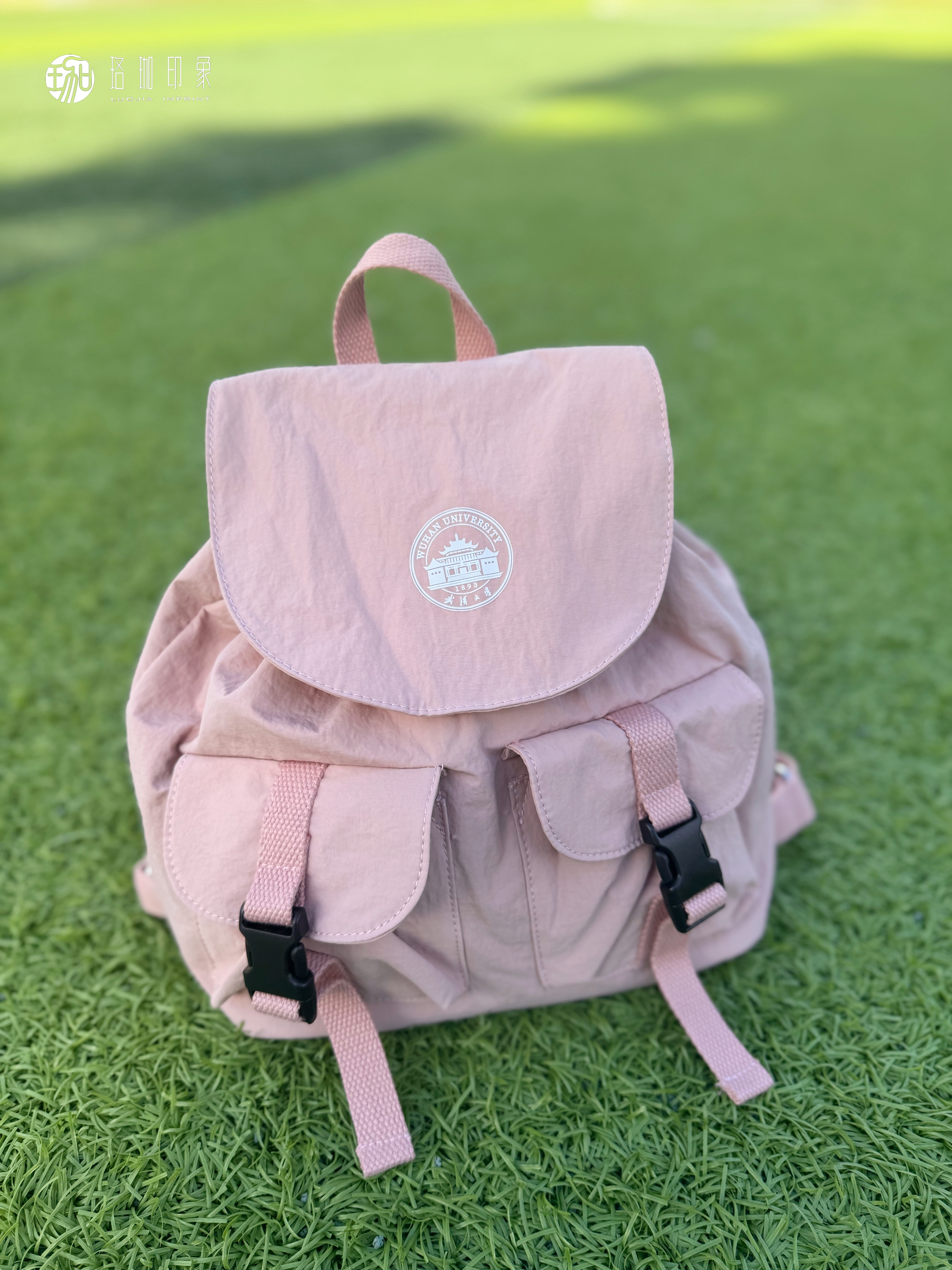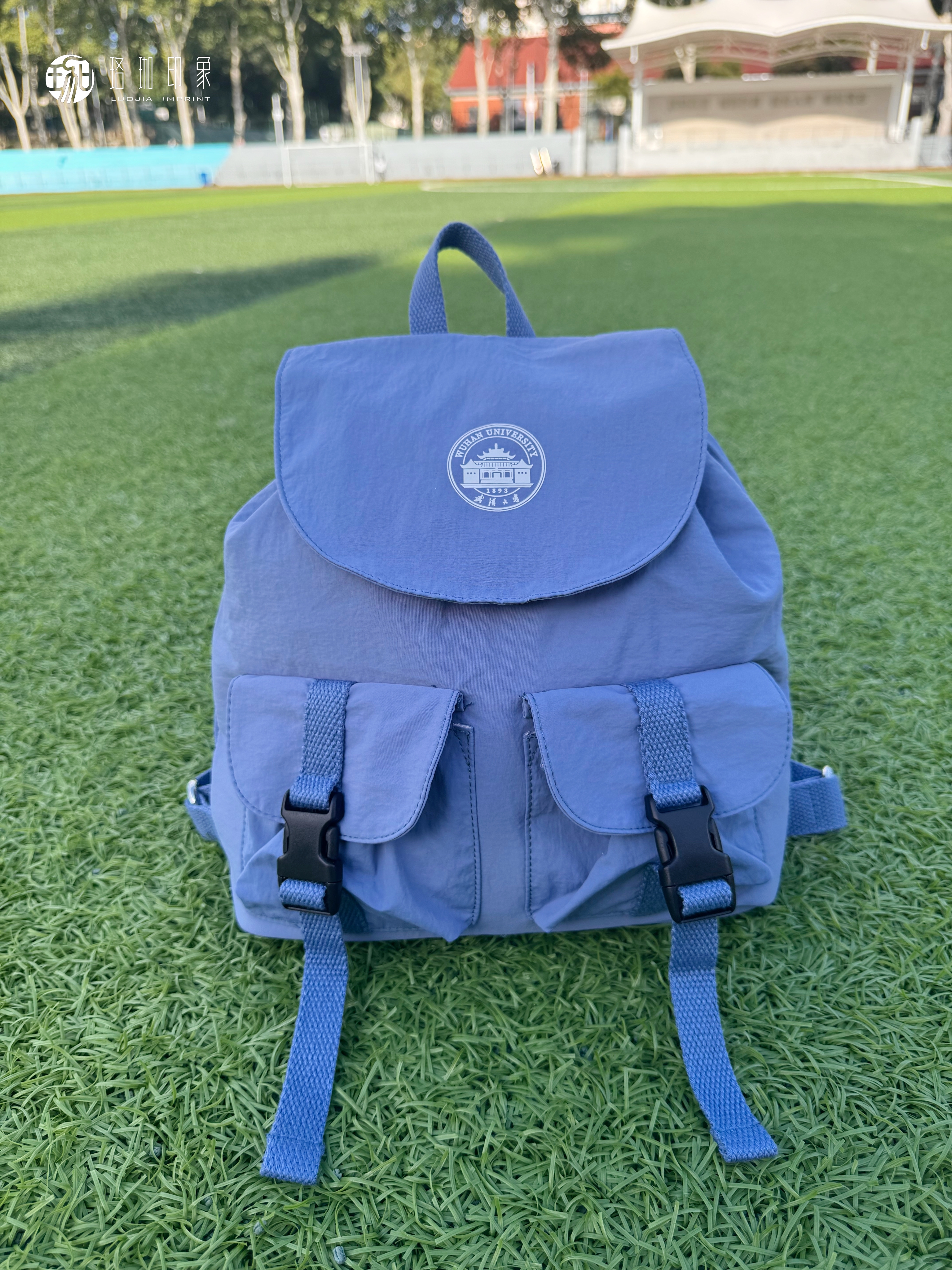 背上萌趣与智慧同行!珞珈印象专为儿童设计的休闲背包,以武汉大学标志性校徽点缀,抽绳+按扣双闭合设计,单手一拉轻松开合,双包分区收纳,书本文具不杂乱。
