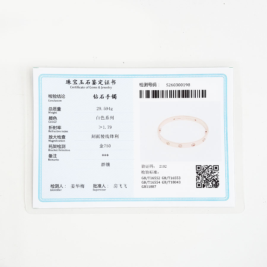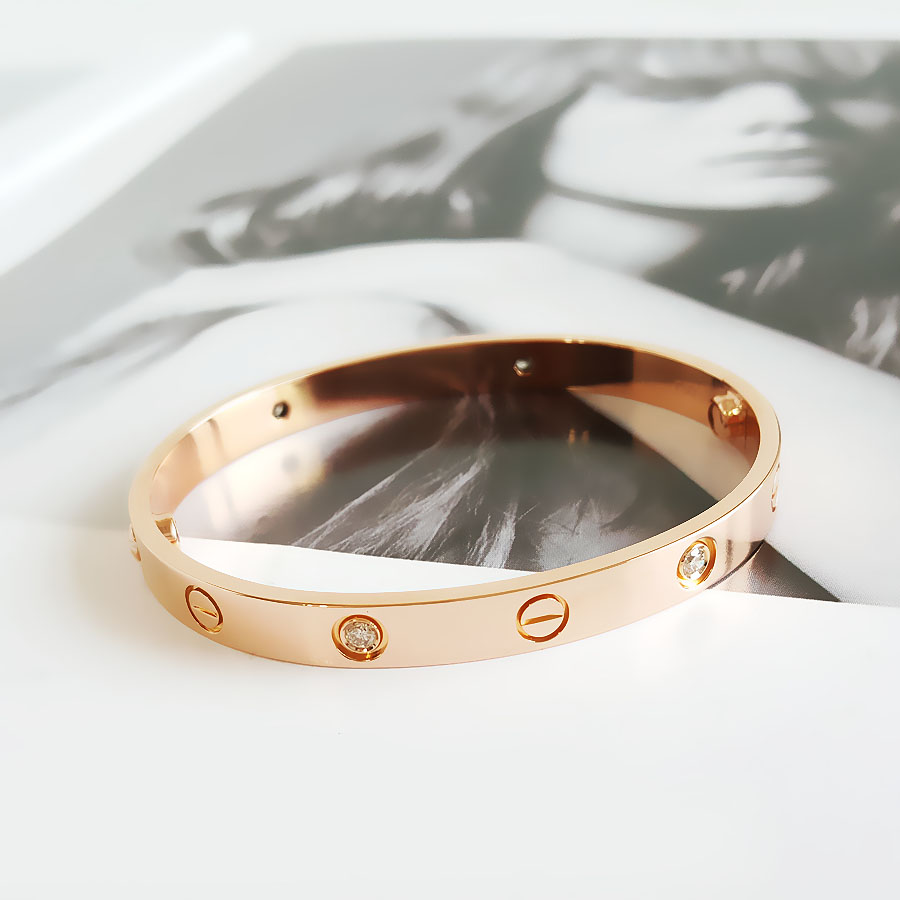 【天然正品】AU750玫瑰金经典时尚高定定制款四钻LOVE手镯17号(皆取最大值)030326NJS28