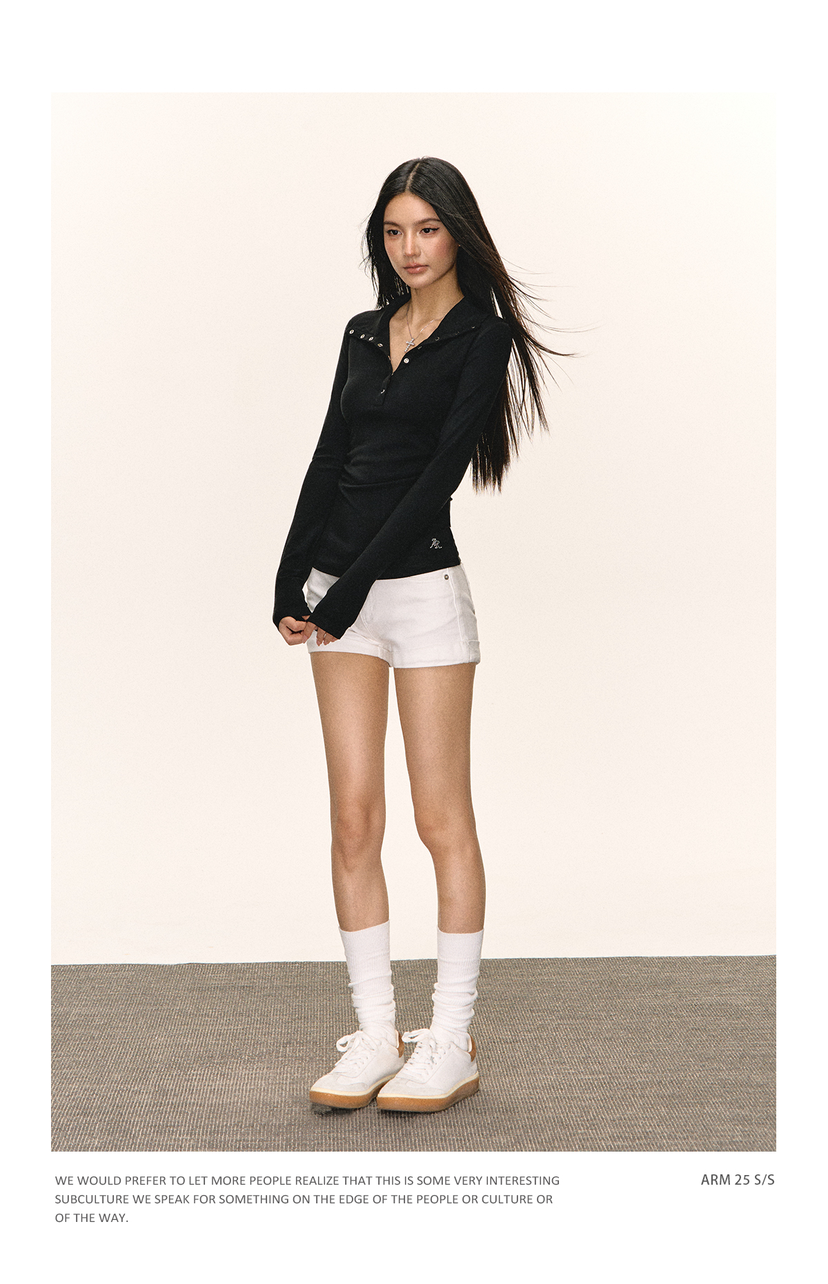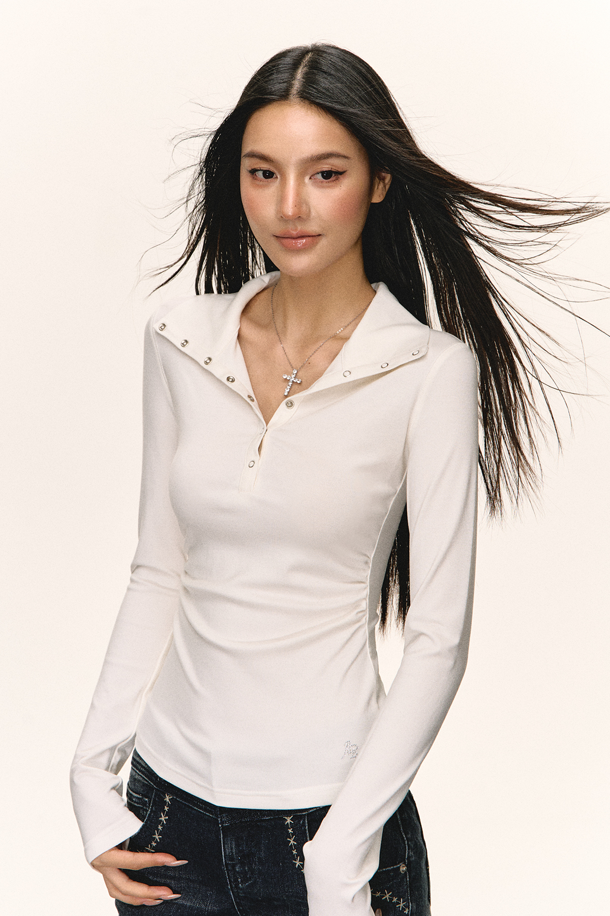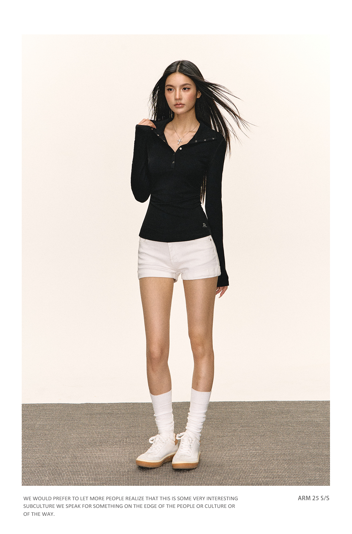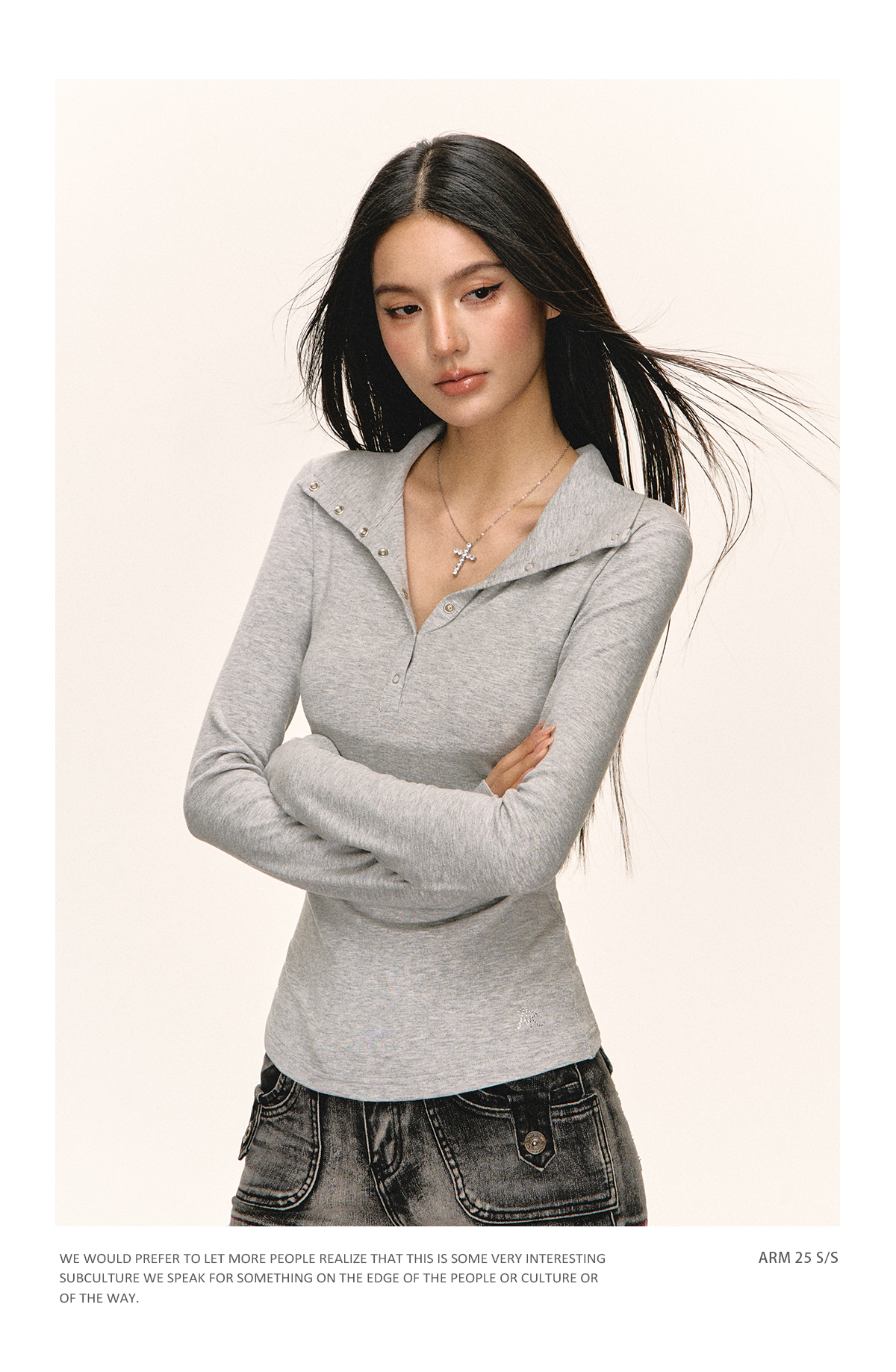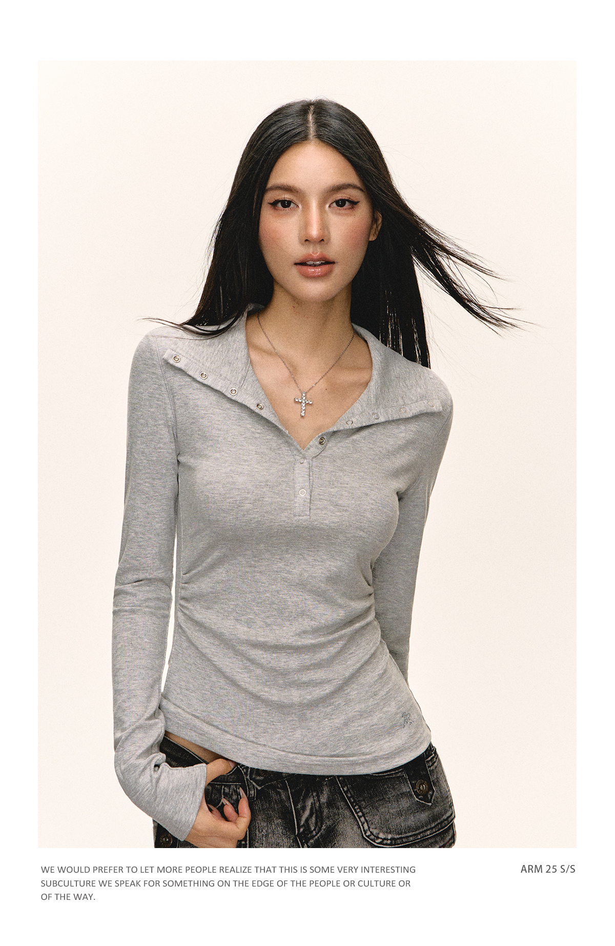Ariseism 美式复古黑色亨利领长袖t恤女秋季新款修身上衣