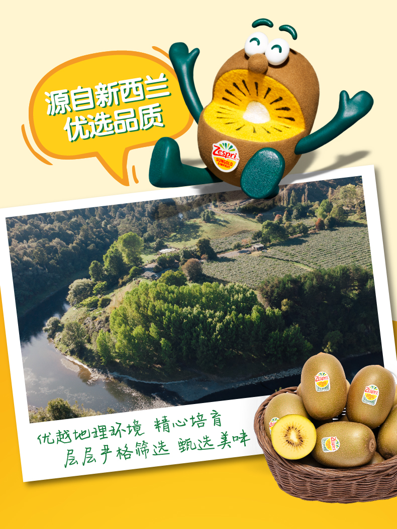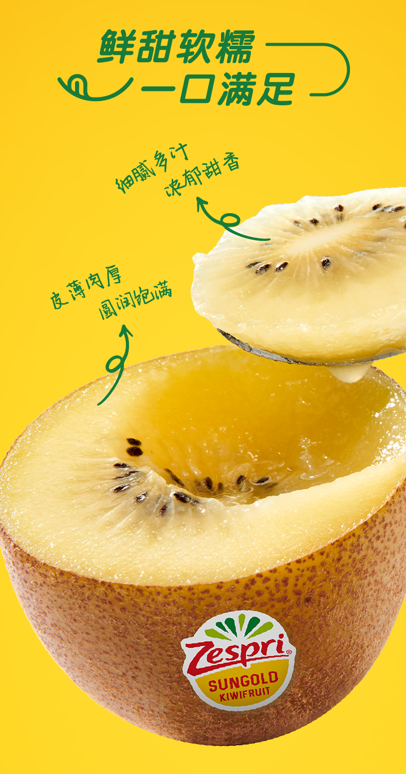 《限时秒杀大果》佳沛新西兰阳光金奇异果12粒(单果120-150g),4月中上旬发货