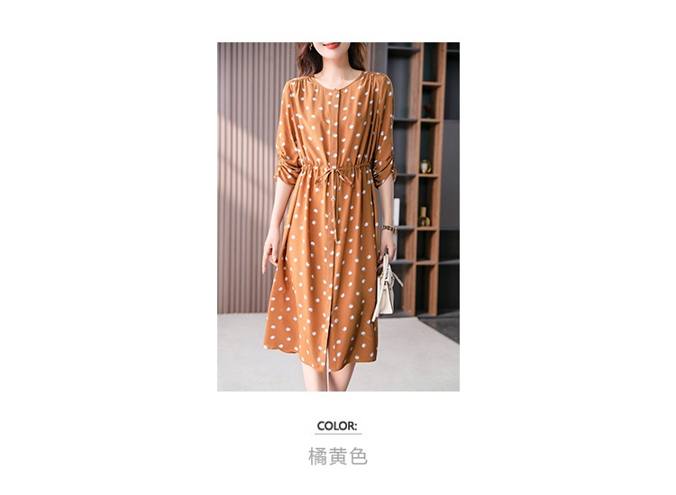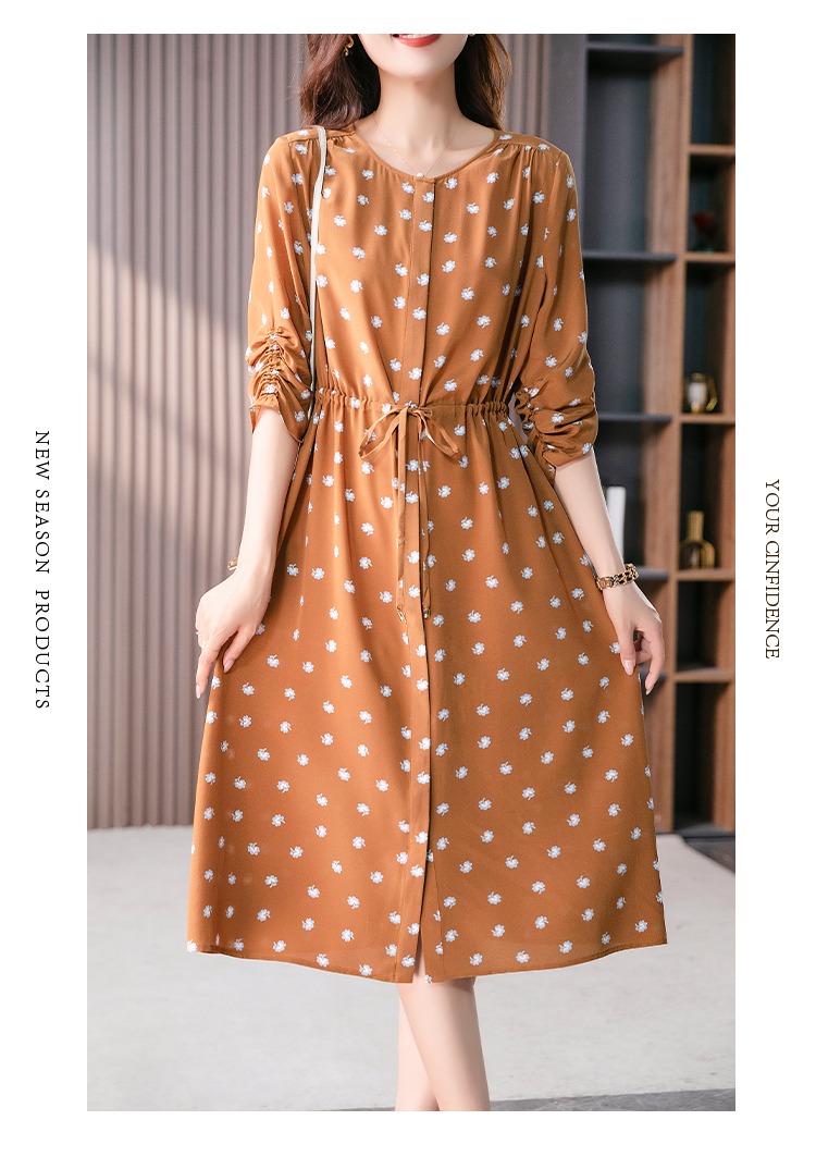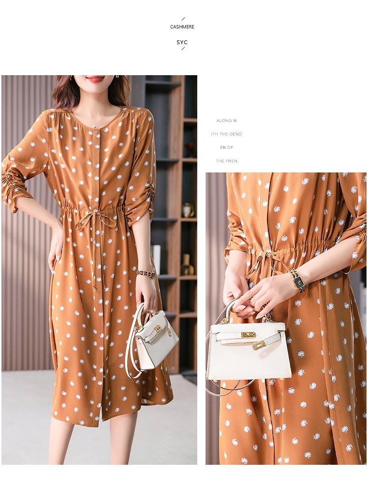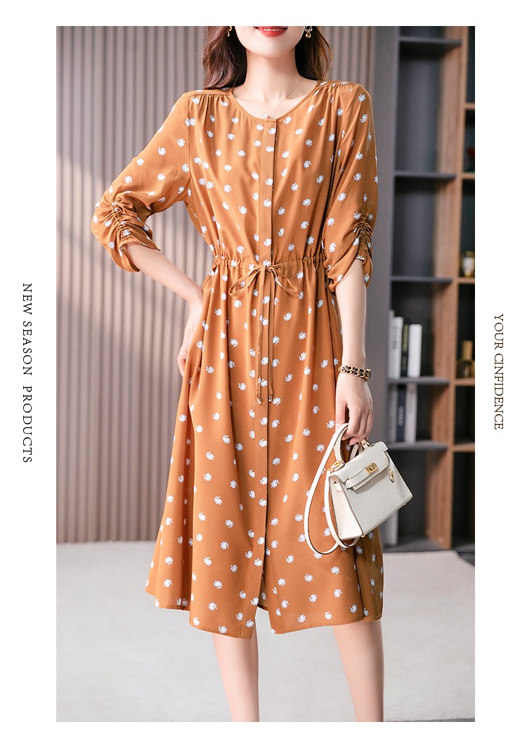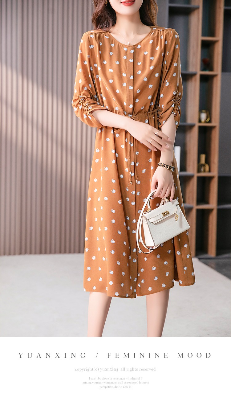 YX【定制12天】印花真丝衬衫连衣裙女夏2024新款韩版桑蚕丝收腰显瘦中长裙