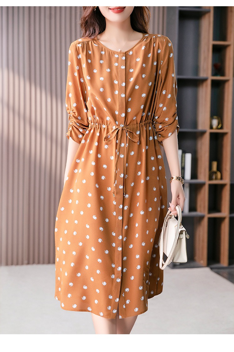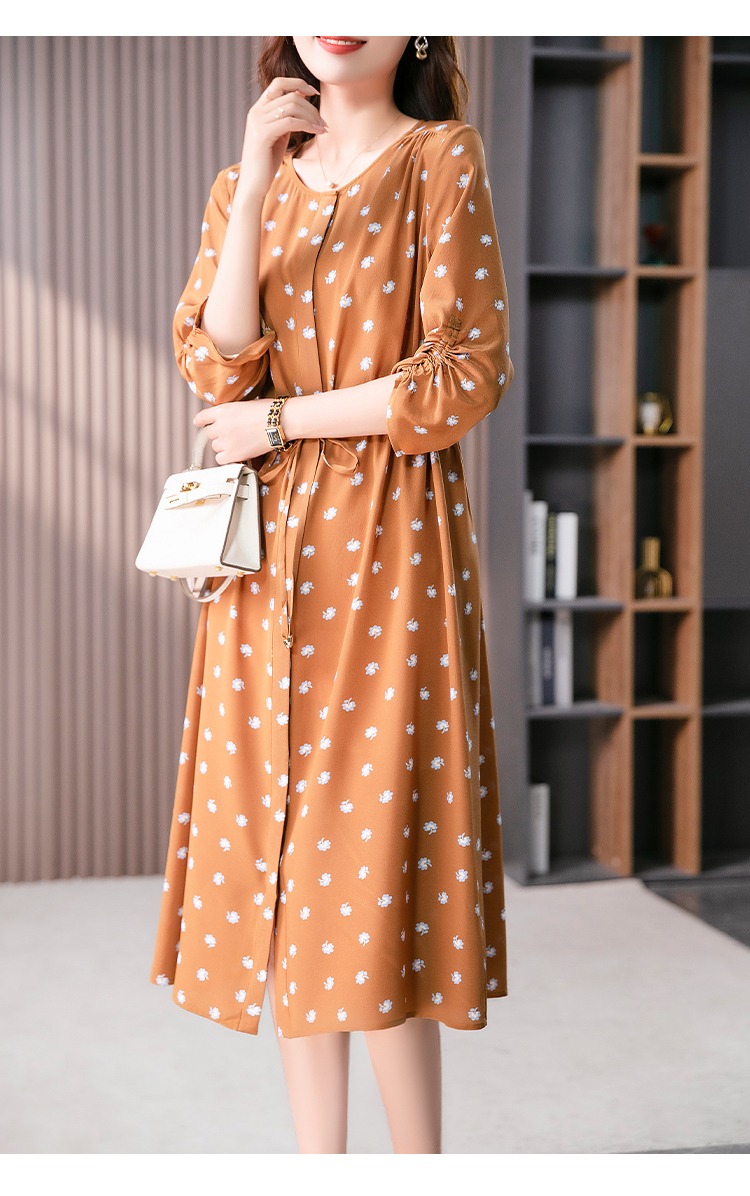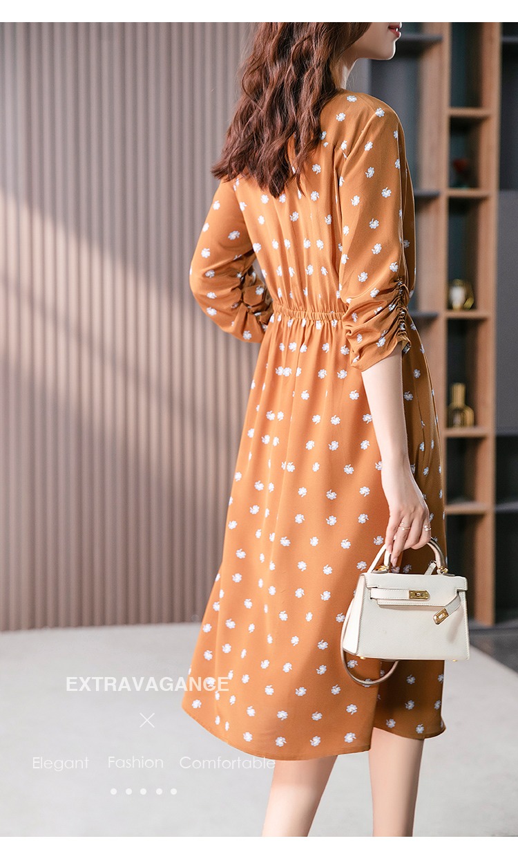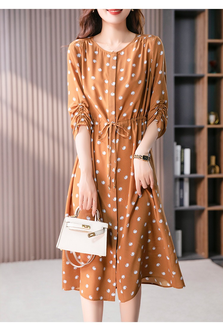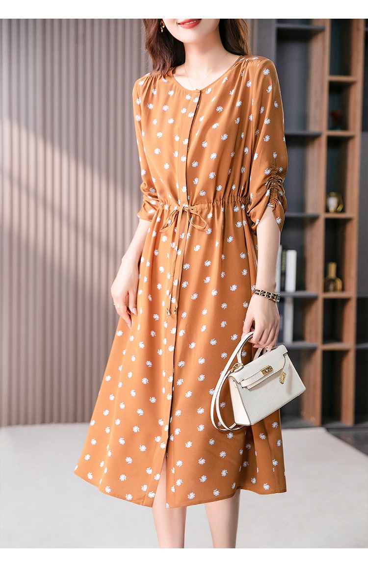 YX【定制12天】印花真丝衬衫连衣裙女夏2024新款韩版桑蚕丝收腰显瘦中长裙