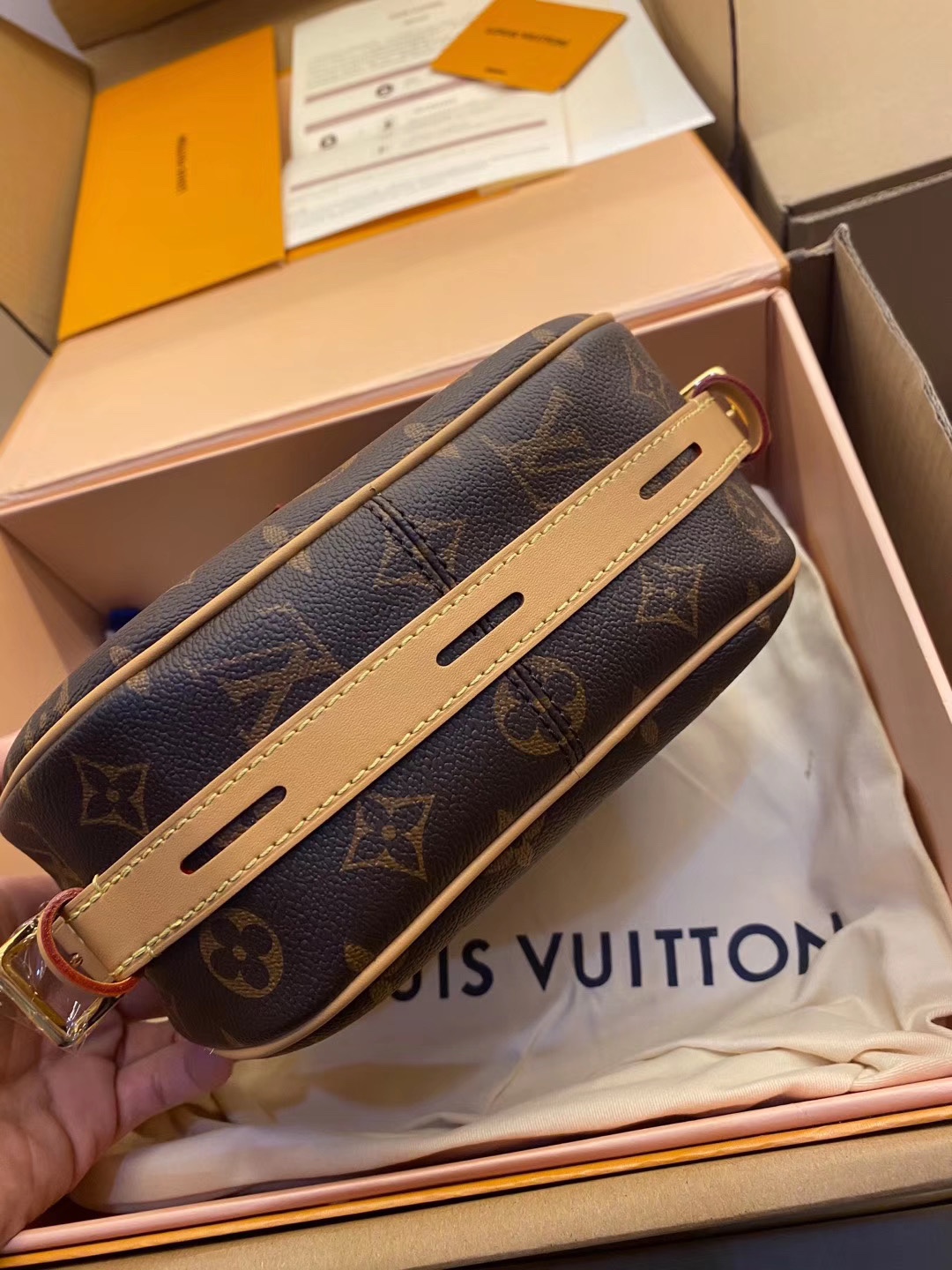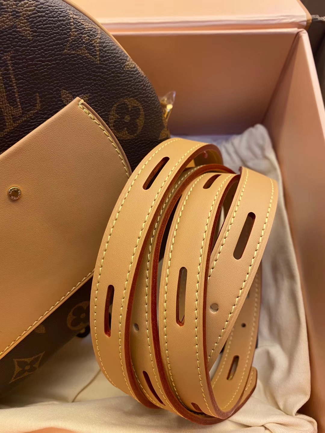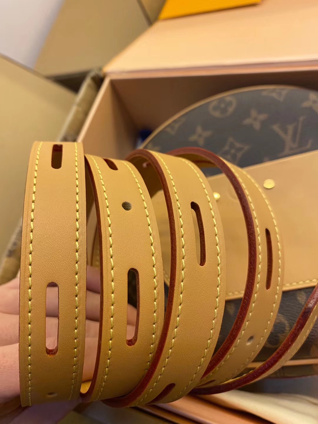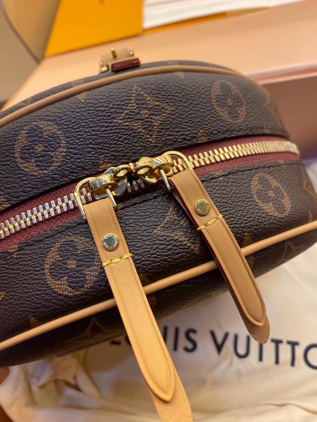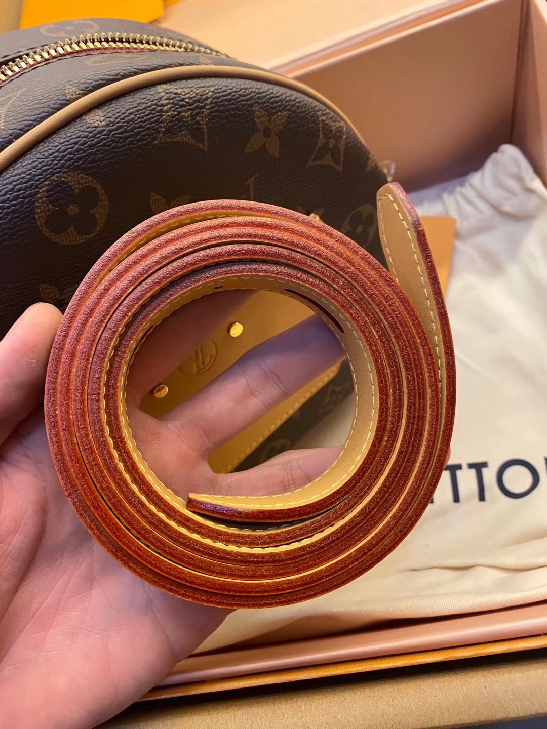 BOITE CHAPEAU 手袋M52294在2018秋冬系列中,女装艺术总监Nicolas Ghesquière以经典帽盒为原型,推出优雅迷人的Boite Chapeau软手袋。致敬路易威登制箱传统,柔软的Monogram帆布包身搭配皮革长肩带,轻松肩背或斜挎。20.0x 22.5x 8.0 cm (长x 高x 宽)
