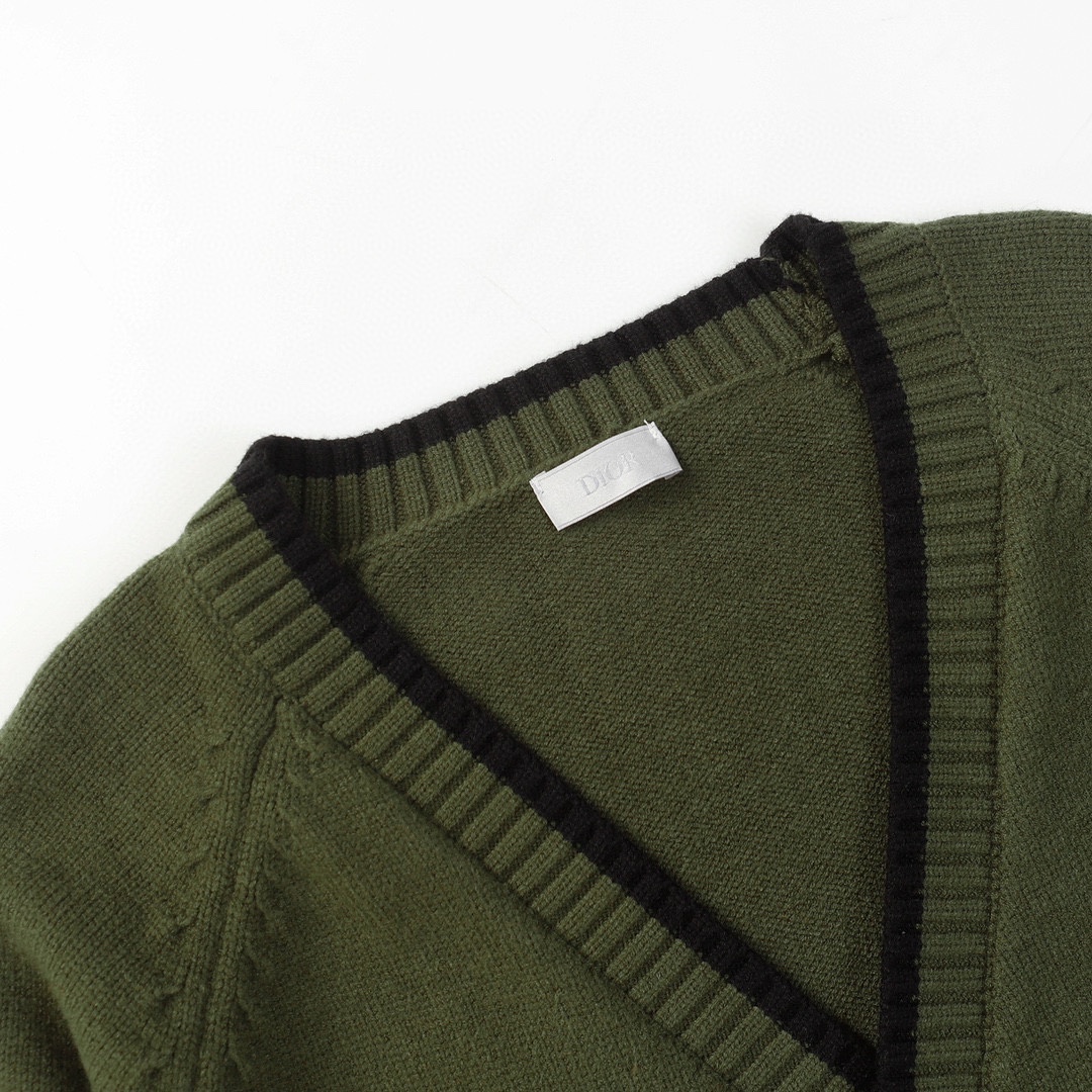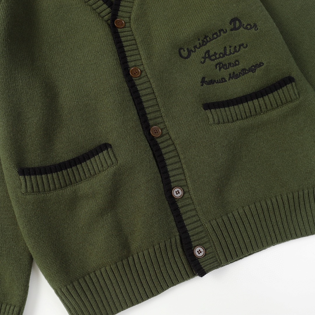 这款针织开衫款式经典。采用绿色山羊绒平纹针织面料精心制作,正面贴袋上方饰以刺绣方框图案,内部点缀以对比鲜明的 Christian Dior Couture 标志。可与各式休闲装扮搭配,打造舒适精致的造型,彰显优雅气质。