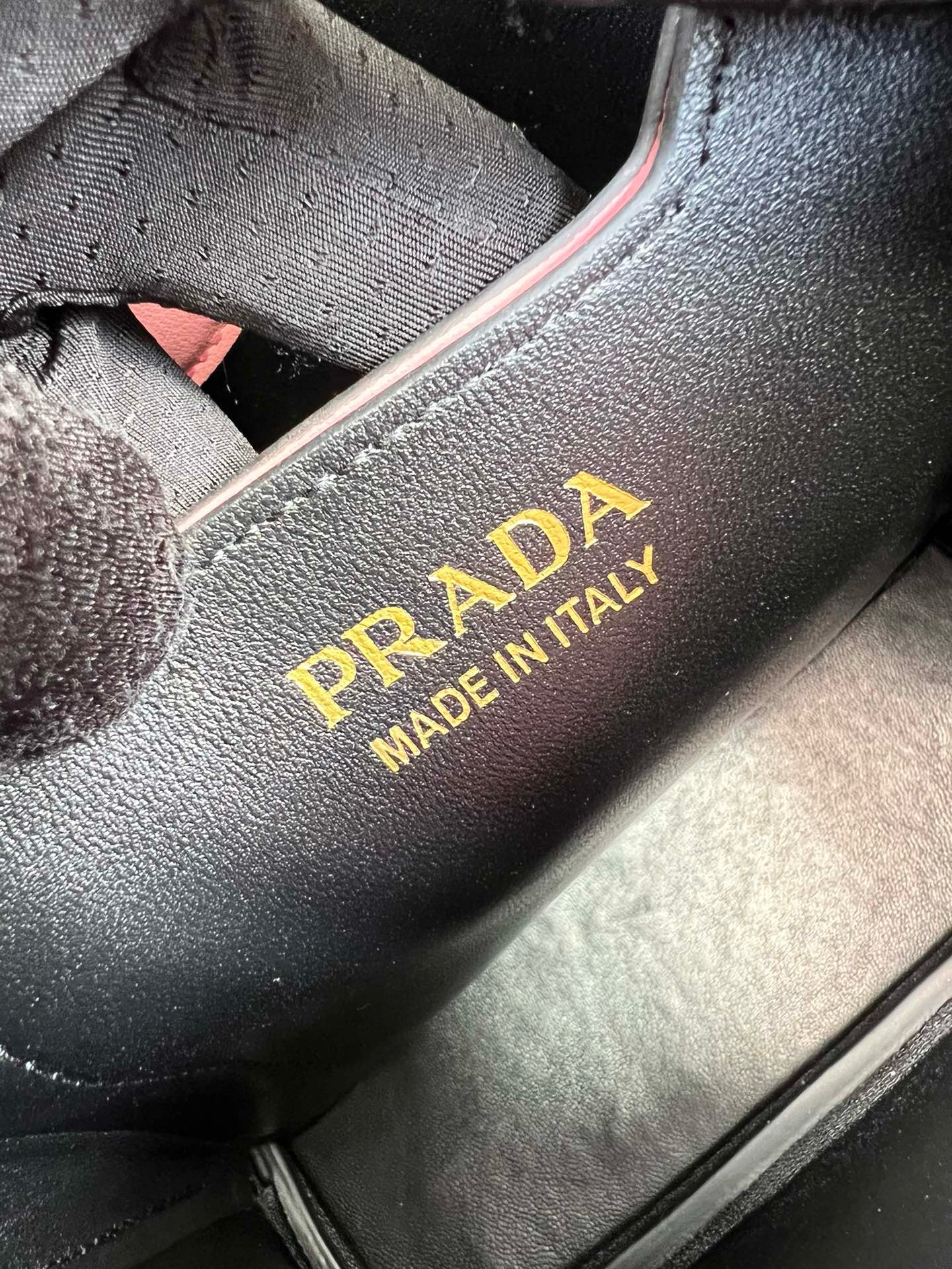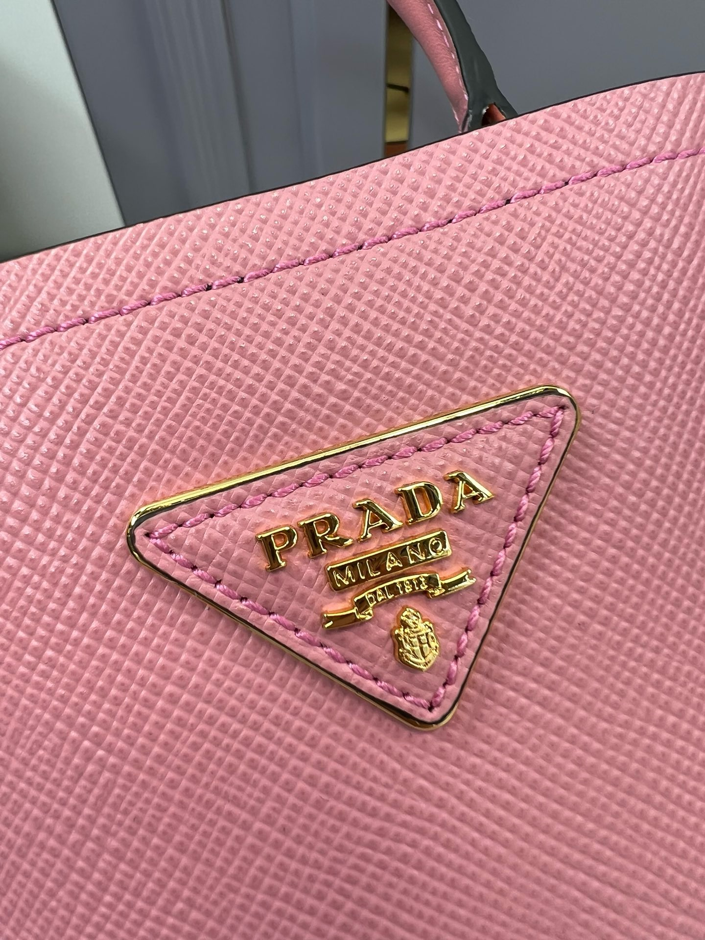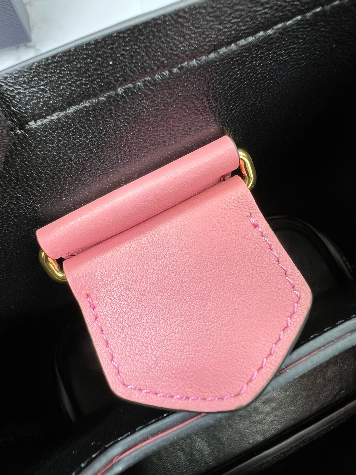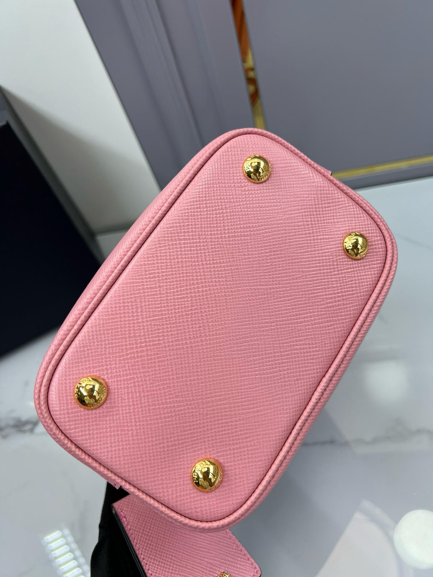 风靡全球的“小精灵”saffiano十字纹牛皮赋予这款p家水桶包独特的魅力--不会形状太软不够精神,也不会过于呆板缺乏质感,可爱的迷你号更是增添时尚感,外部十字纹牛皮挺括有型,内里羊皮柔软细腻,可手提可肩背可斜挎。尺寸18*17*10.5 cm