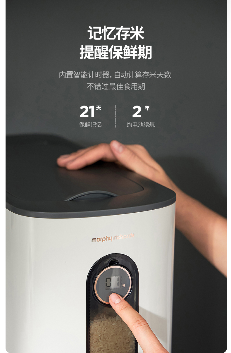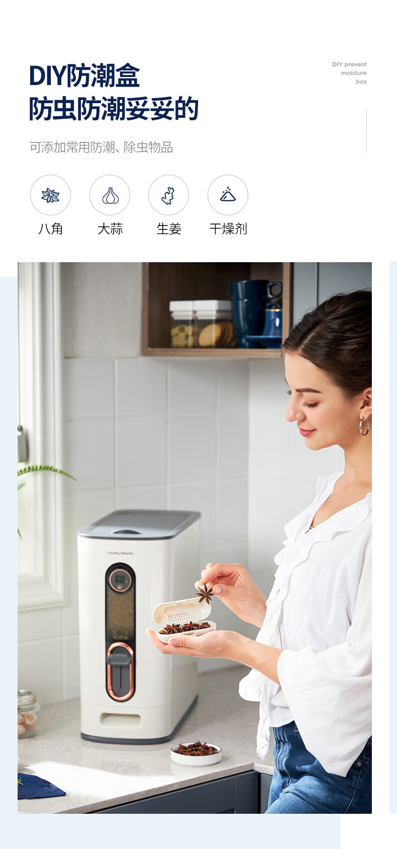 摩飞电器(Morphyrichards)智能计量家用防虫防潮密封储存罐米缸米箱12公斤装收纳盒带盖米桶 MR2090