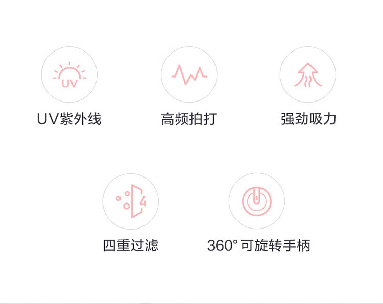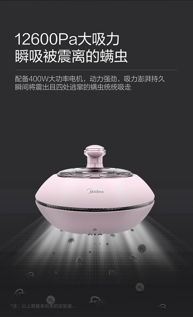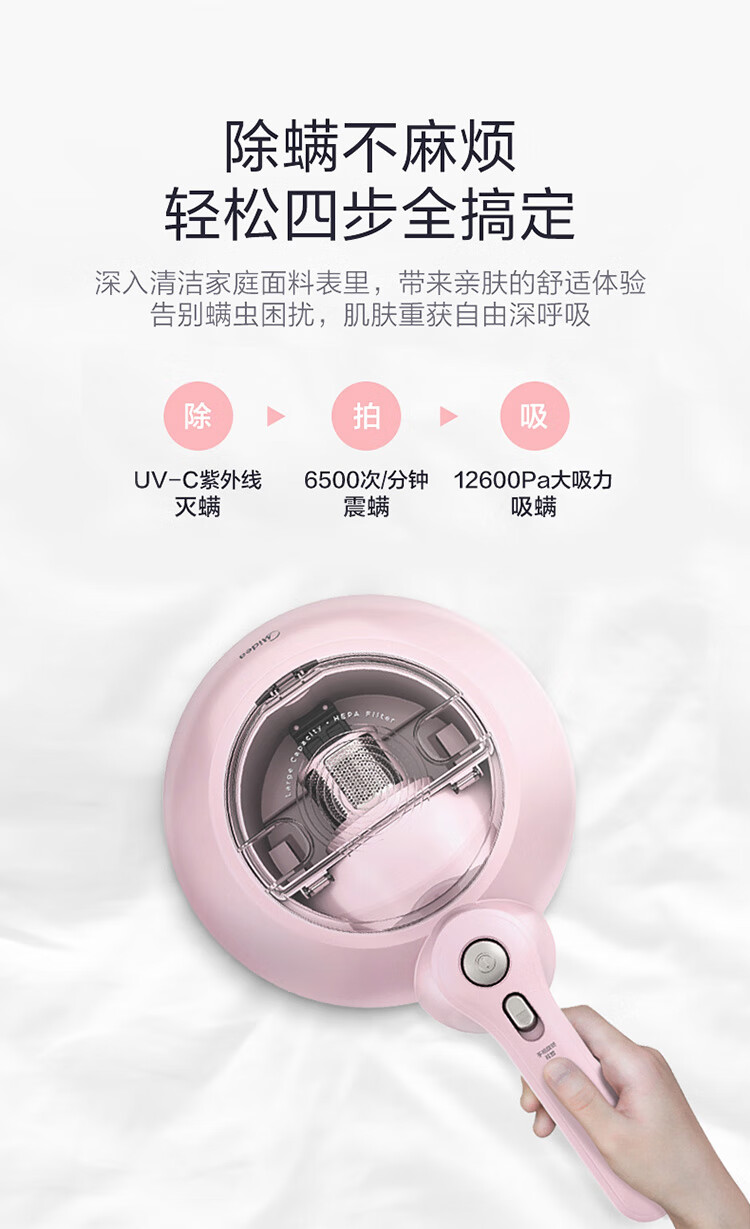美的(Midea)除螨仪MT3 有线手持床上家用吸尘除螨 冰莹粉 紫外线杀菌除螨