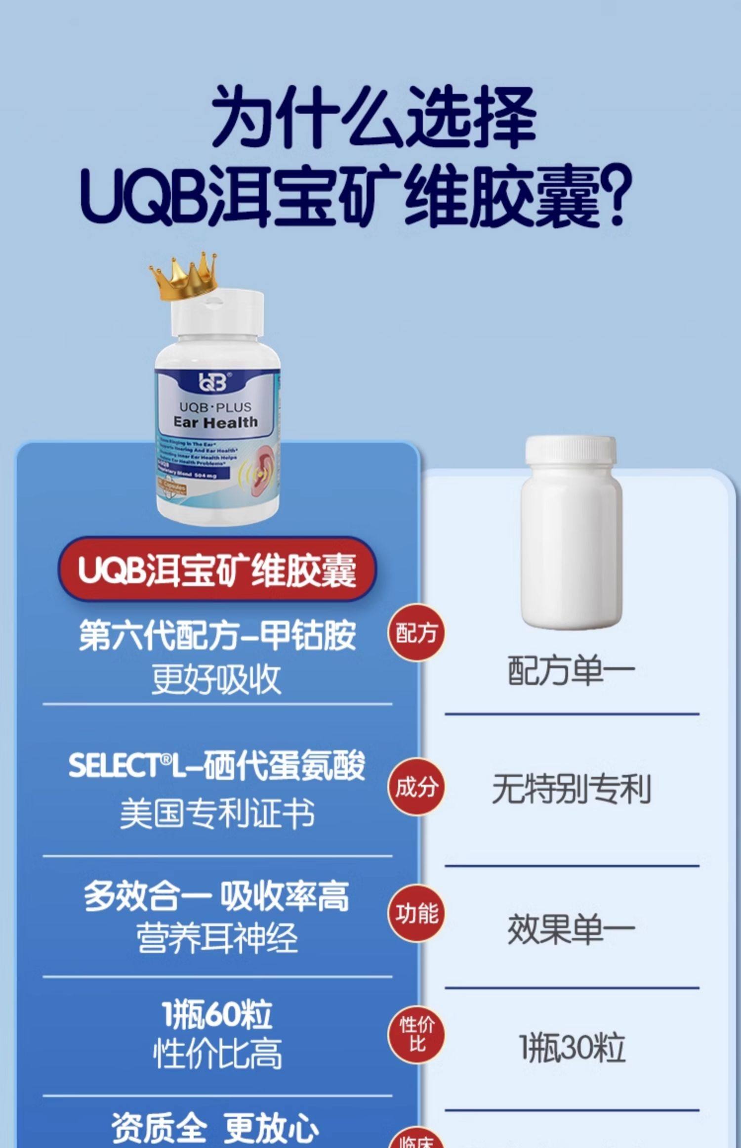 UQB美国原装进口洱宝矿维胶囊神经性耳响嗡嗡响改善耳健康耳背