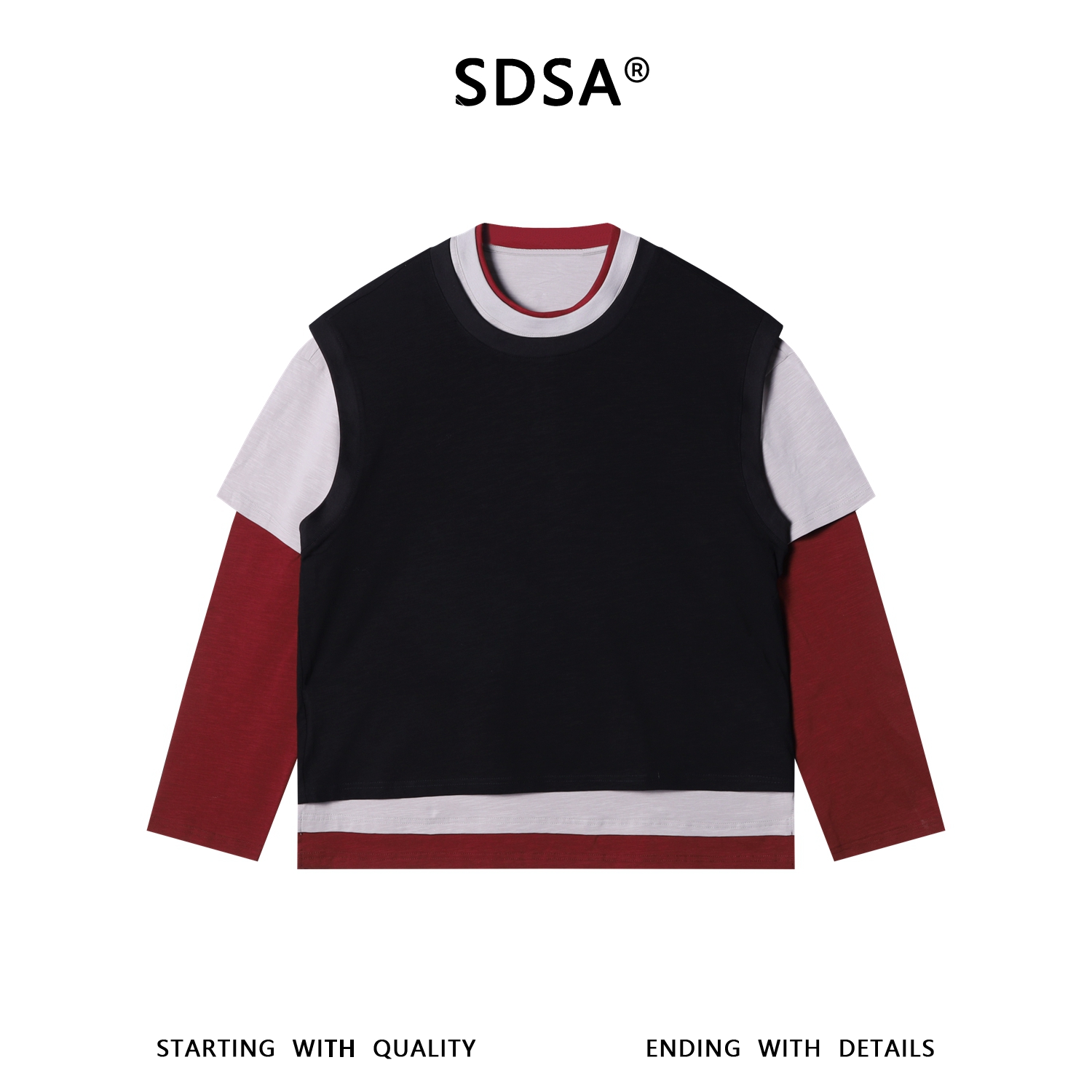 26011SDSA男装2026新款高贵轻奢韩版撞色拼接假两件长袖T恤百搭时尚