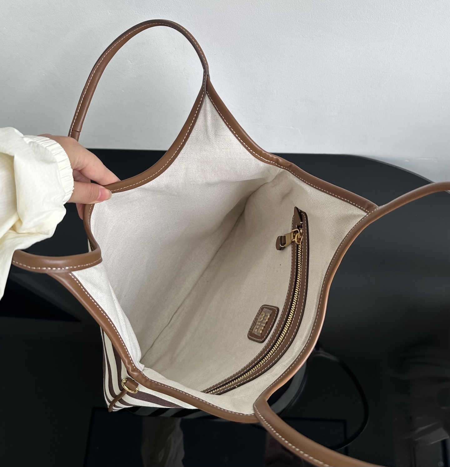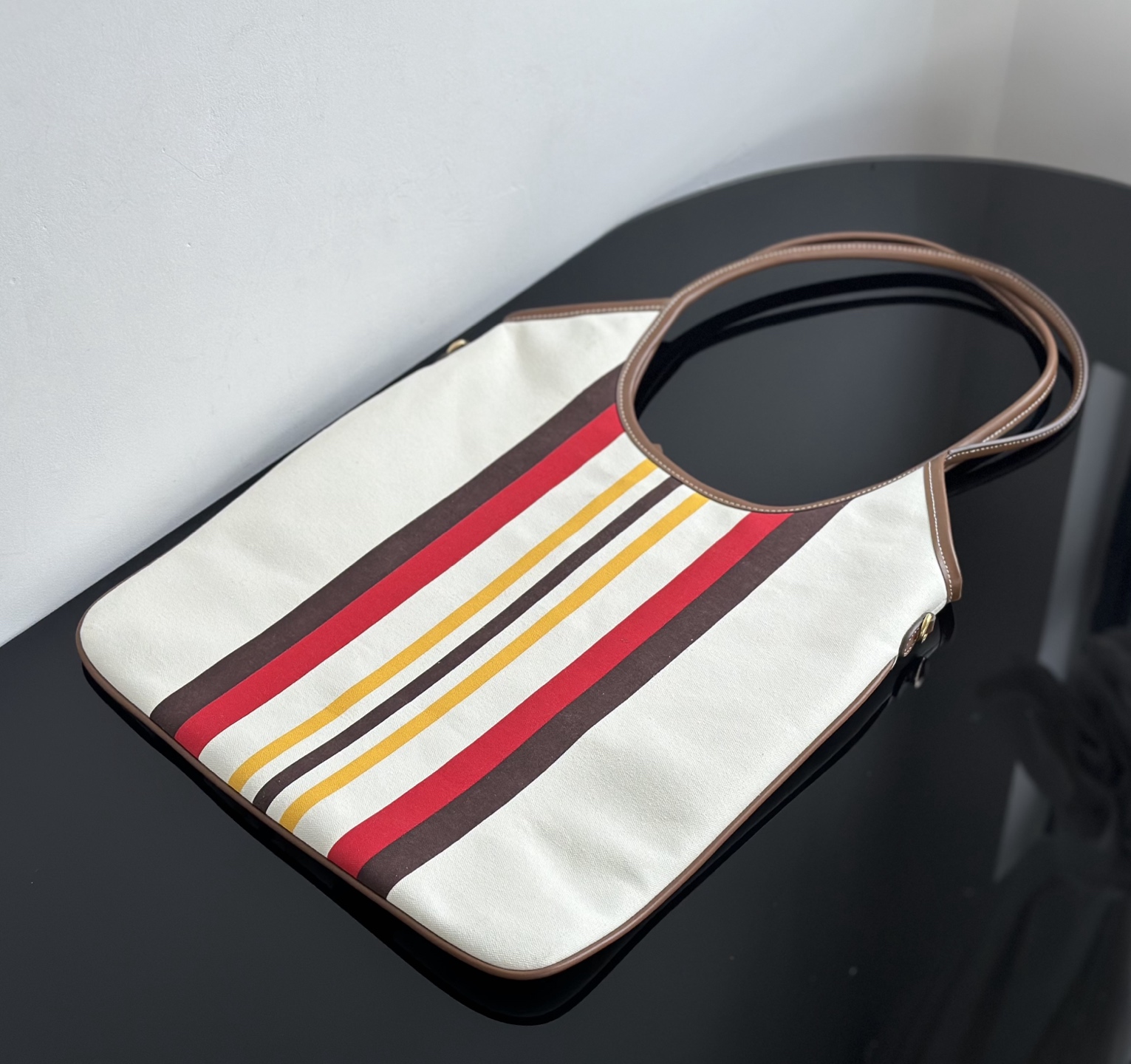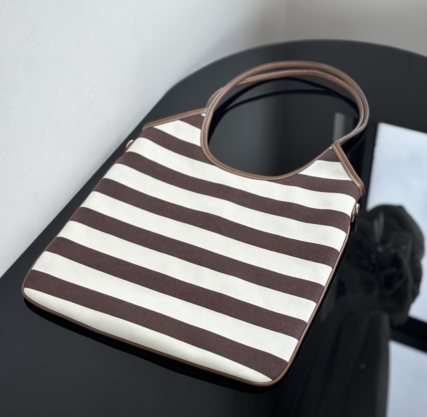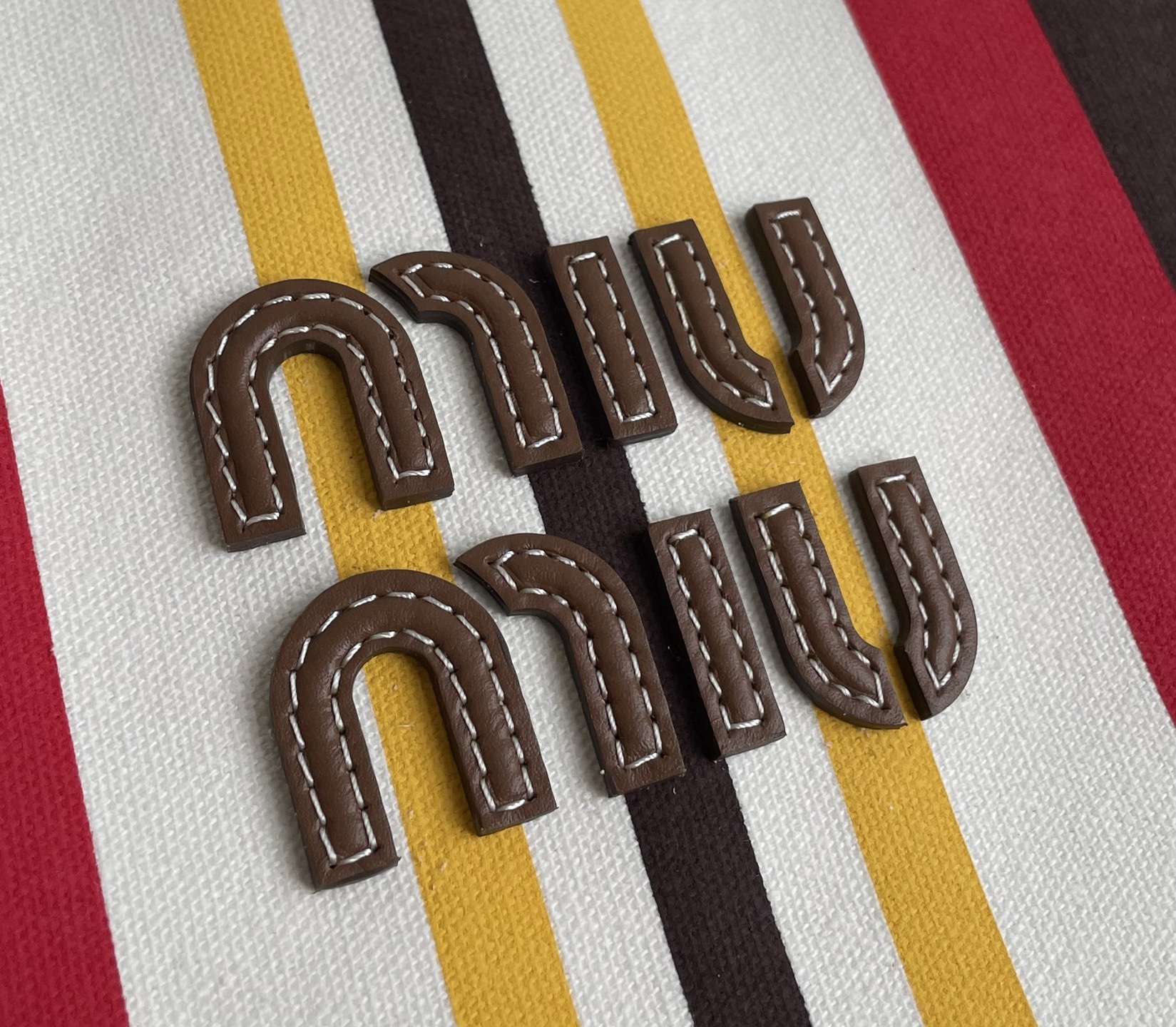 MiuMiu 25最新款条纹帆布Tote包 经典条纹元素搭配品牌标识,风格复古又时尚,辨识度高,轻松在众多包包里脱颖而出,适配多种穿搭场景,从休闲到轻职场都能搭 优质帆布结合皮质包边,帆布耐用、有质感,皮质提升精致度,制作工艺精细,缝线、包边等细节处理到位,保证包包品质与使用寿命