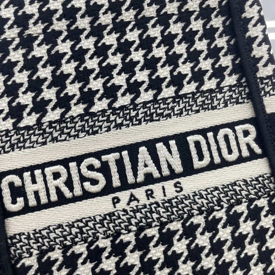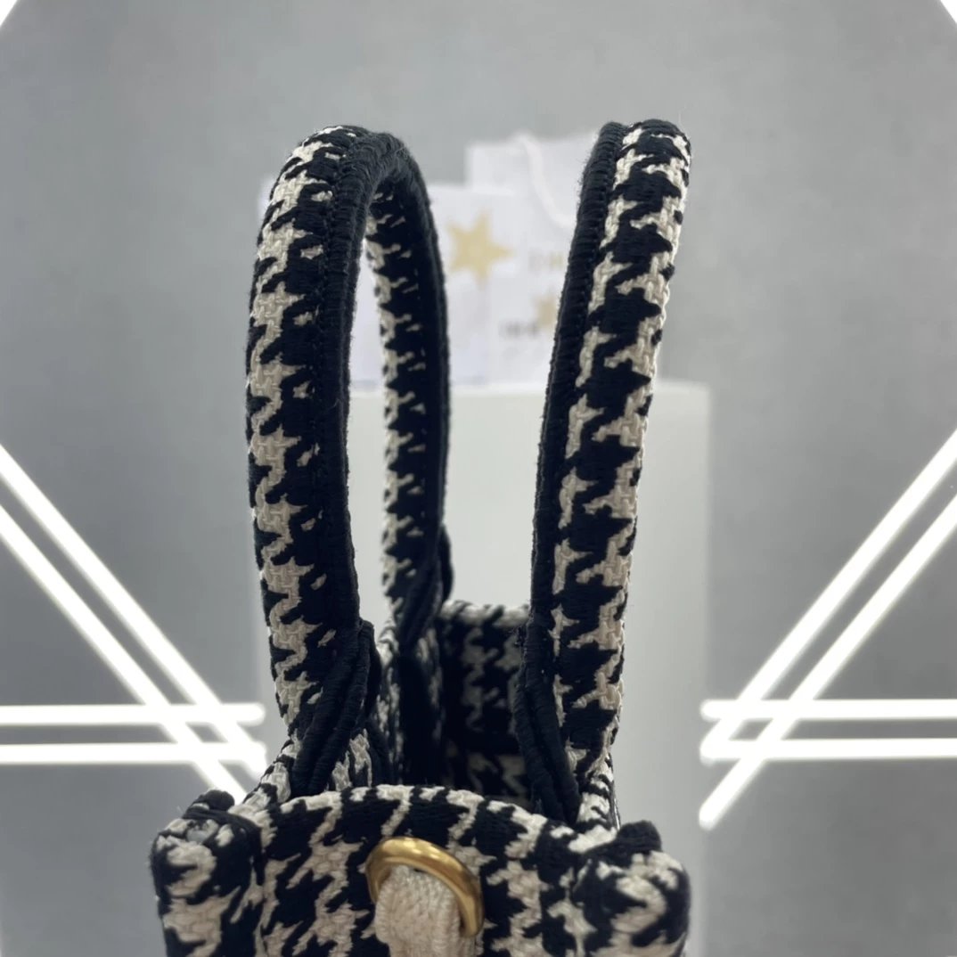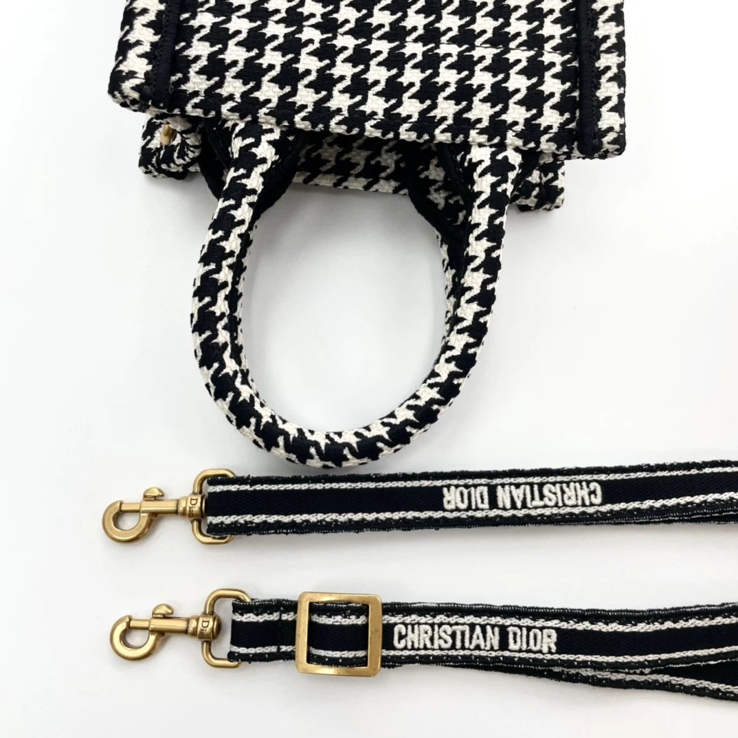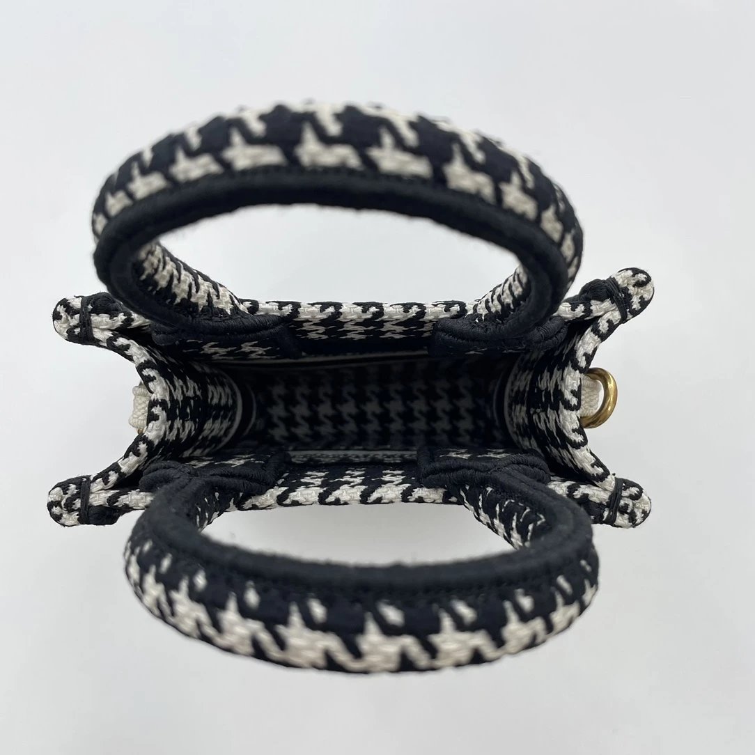 这款手机袋由玛丽亚·嘉茜娅·蔻丽 (Maria Grazia Chiuri) 设计,丰富了 Book Tote 系列,充分彰显 D1or 的精湛工艺。通体饰以黑色和白色超迷你千鸟格纹图案刺绣,正面饰以“CHRISTIAN D1OR PARIS”标志提升格调。迷你款式,可收纳手机和小件日常用品。摩登时尚,搭配可调节、可拆卸的刺绣肩带,可手提、肩背或斜挎