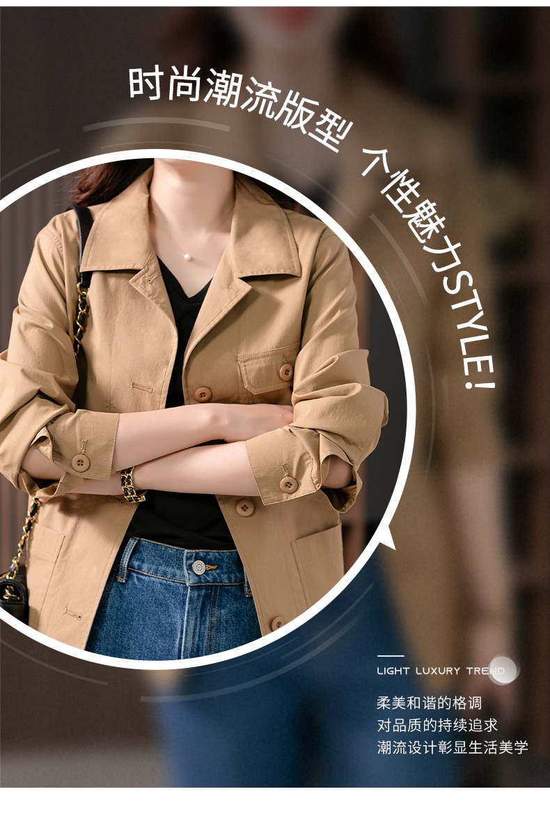 【现货7天】风衣女短款小个子上衣2023秋季新款韩版休闲系带时尚短外套