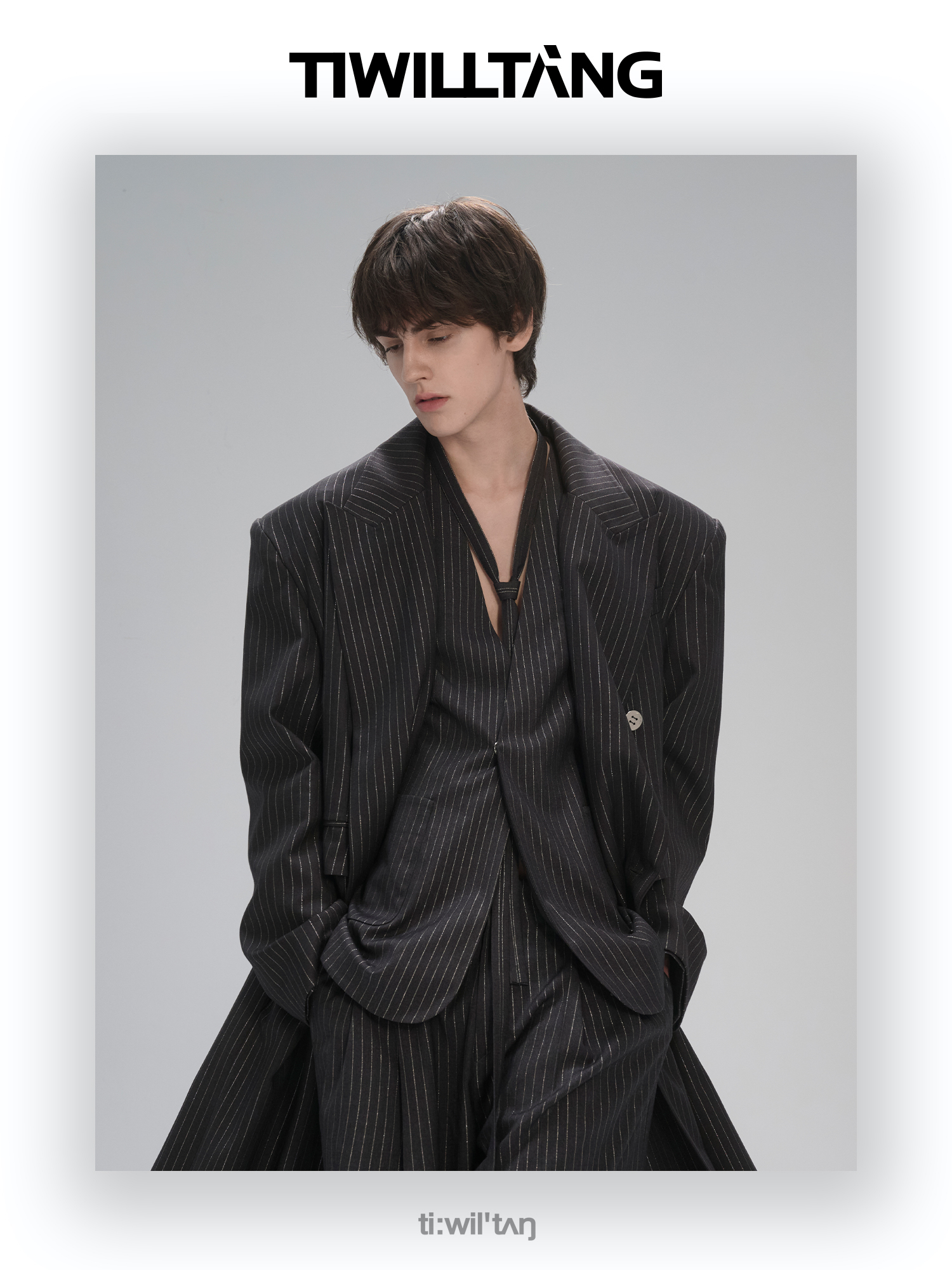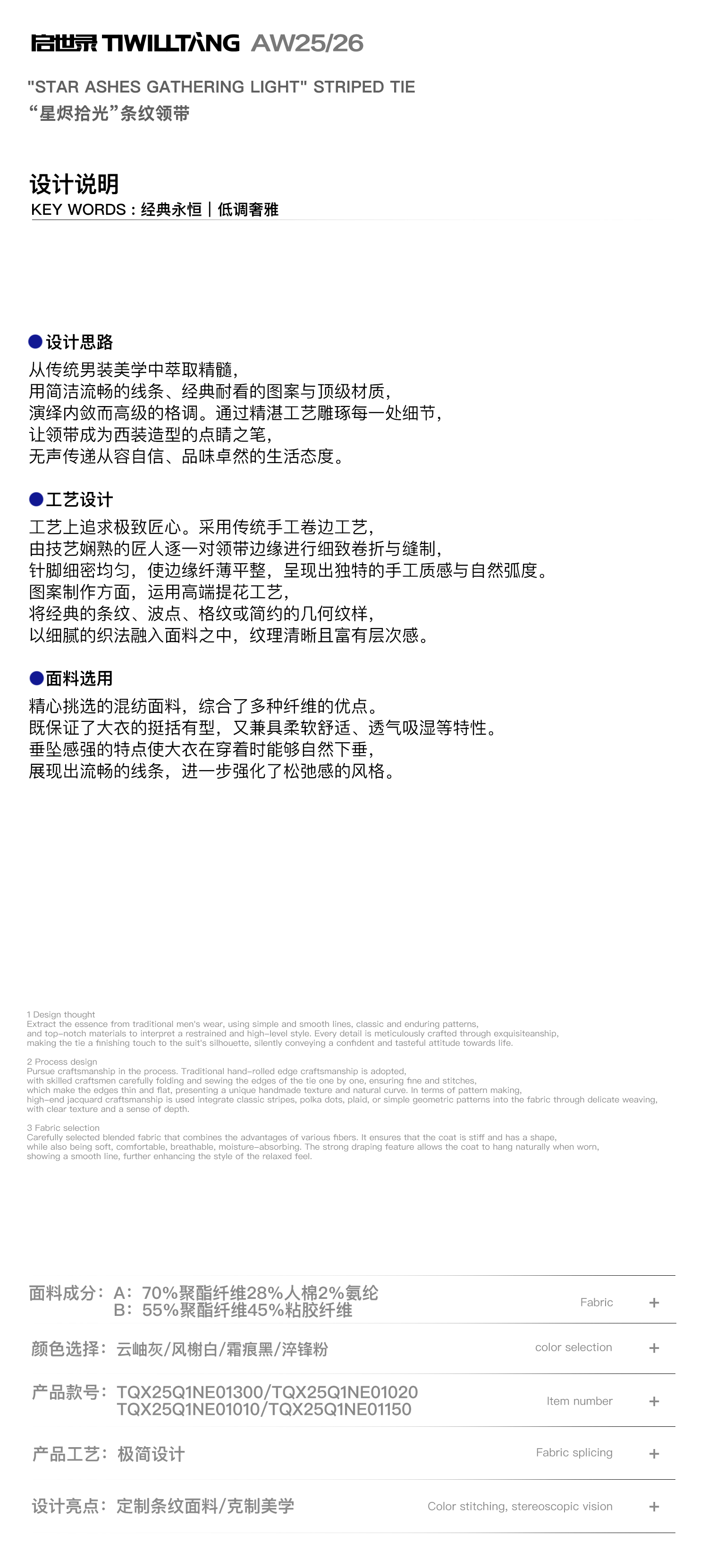 启世录TIWILLTANG“星烬拾光”低调奢雅混纺条纹领带男士