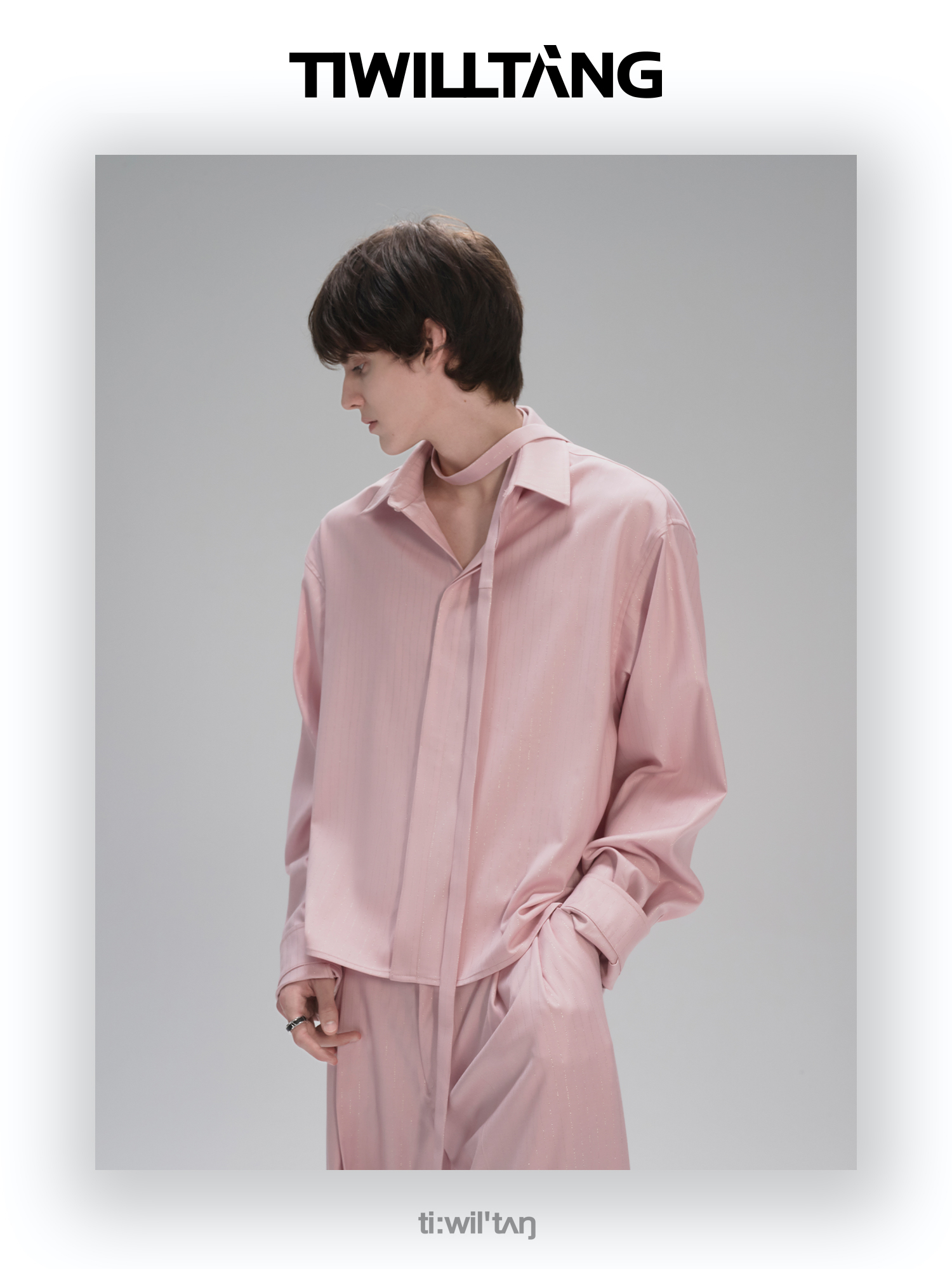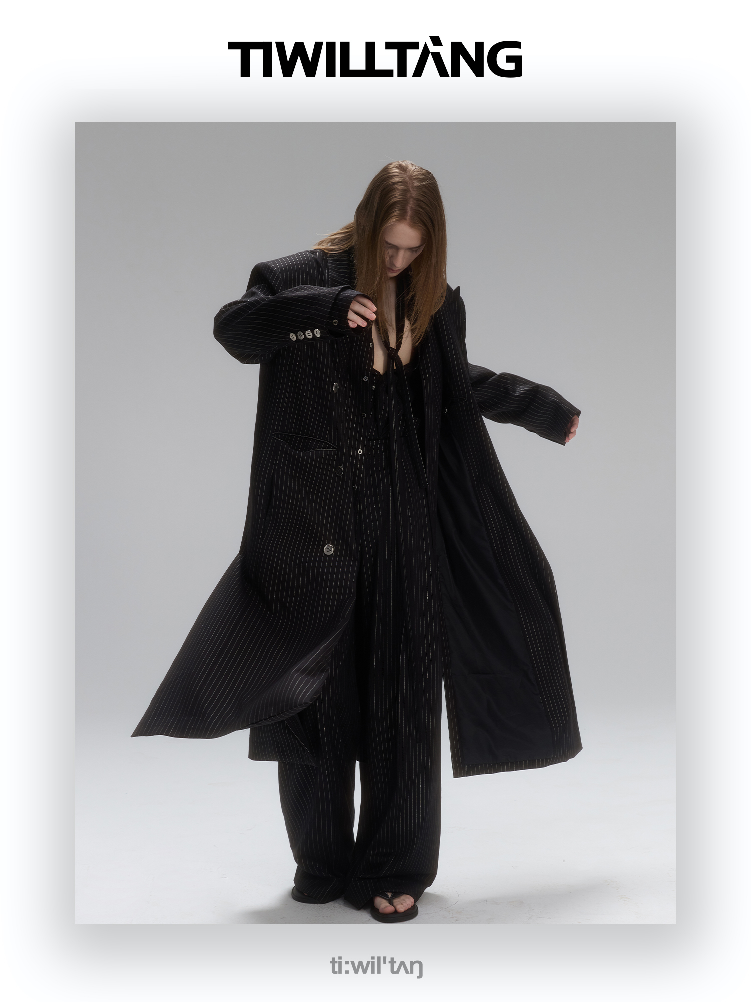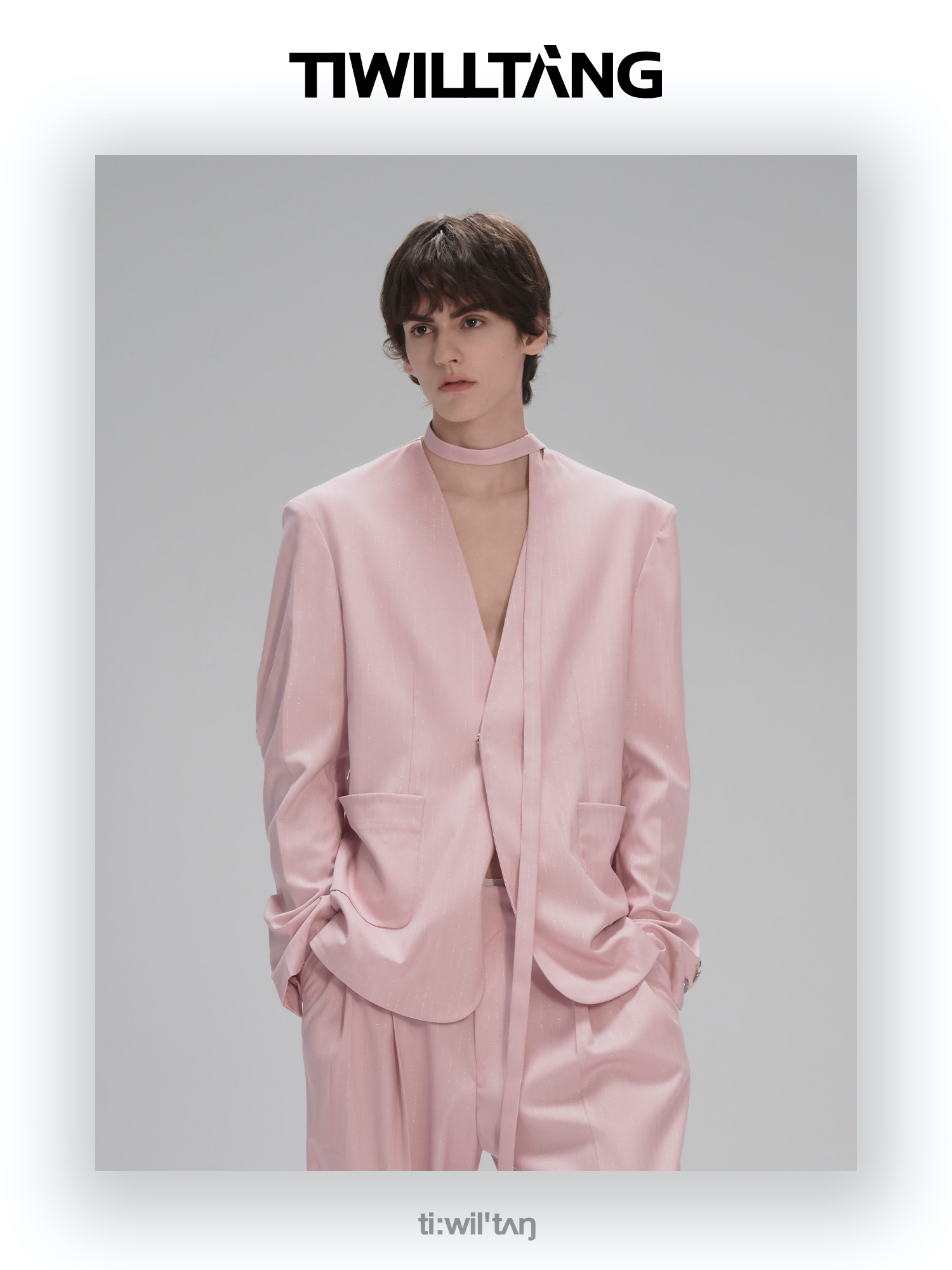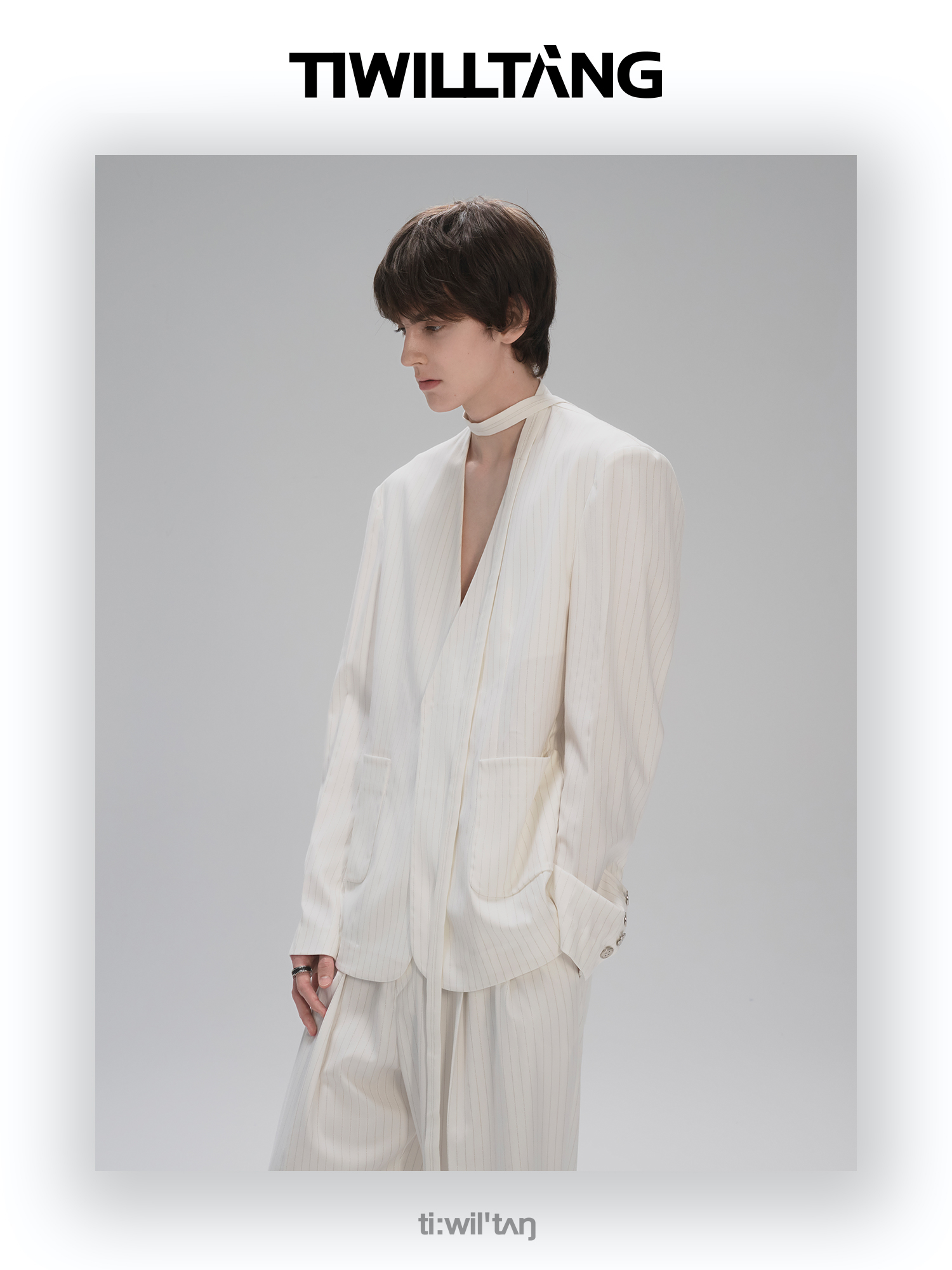 启世录TIWILLTANG“虚室生白”现代简约撞色拼接直筒西裤