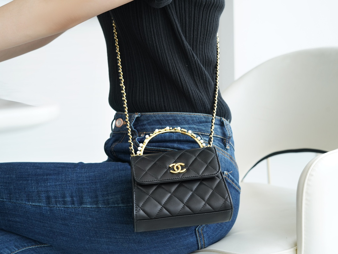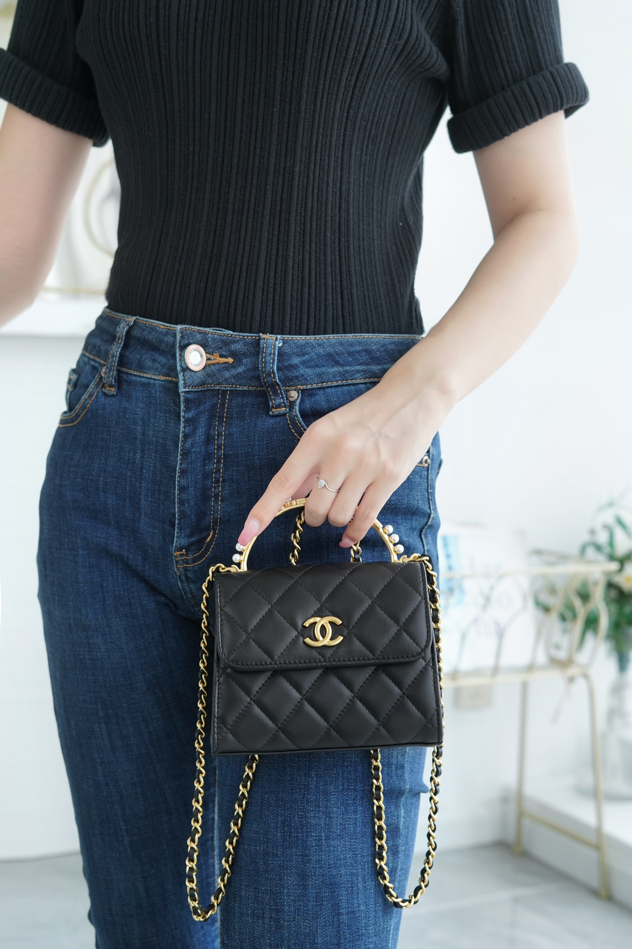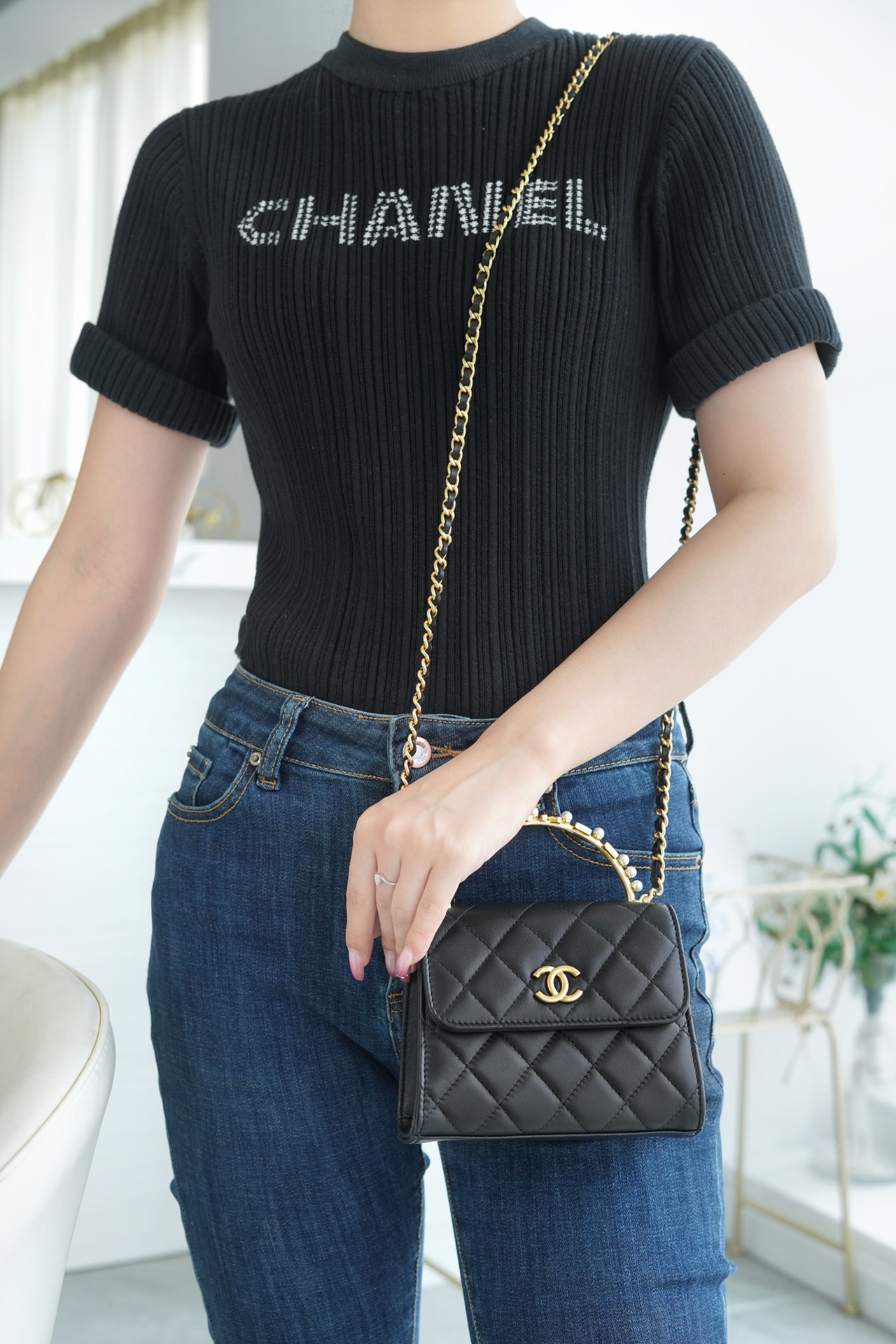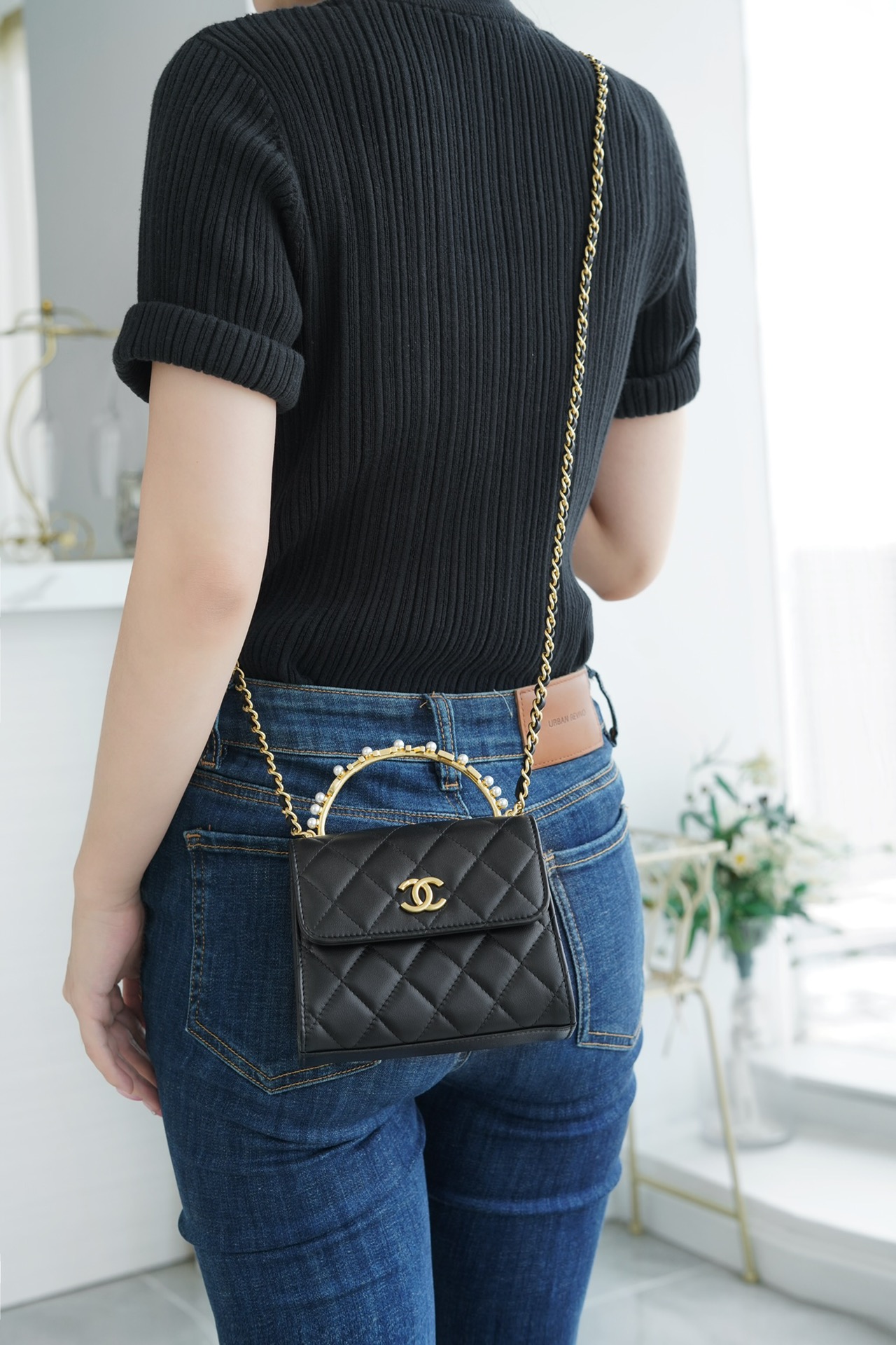 本季最美复古手柄包,外形酷似???????? ????????????,经典黑金设计,珍珠手柄是它最大的亮点,超级显精致,单肩或者手提,都有不同的优雅韵味,气质女孩必备??