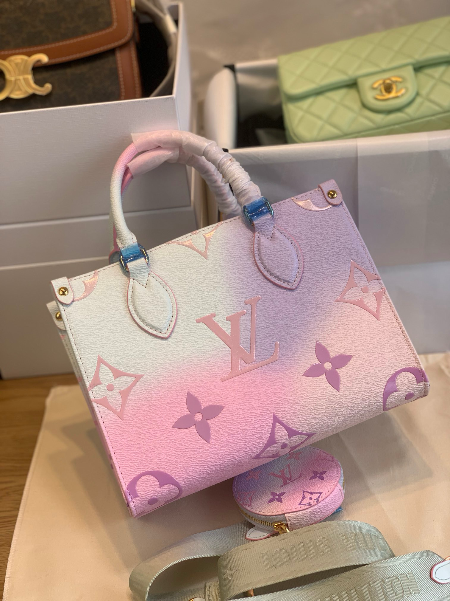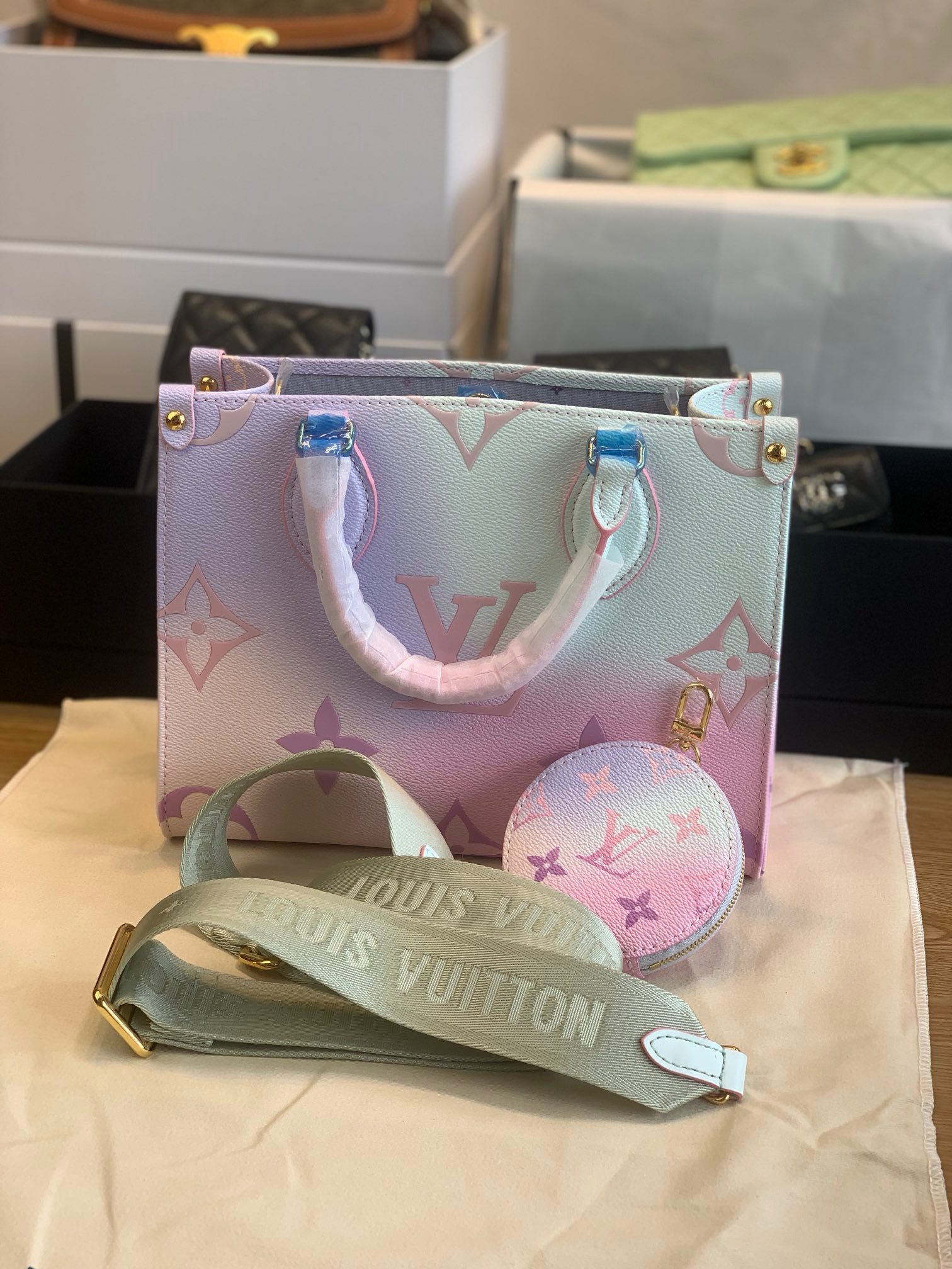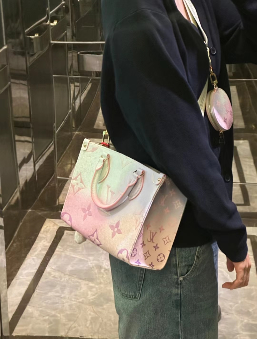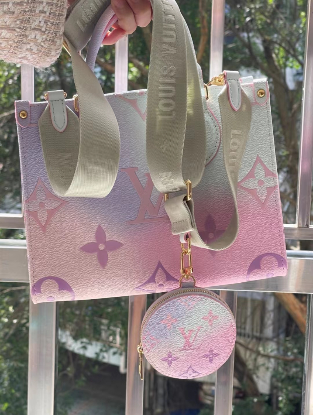 LouIs VUITTON ONTHEGO 城市春日系列 经典老花可拆卸可调节肩带 涂层帆布 托特包Tote包购物袋单肩斜挎手提包 渐变蓝粉(CB)