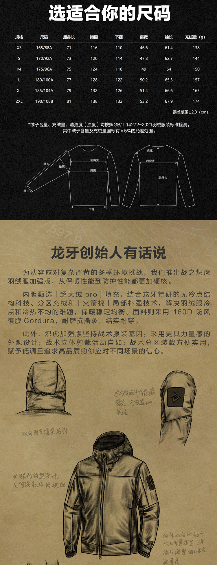 【龙牙上新】加强版龙牙战之炽虎战术连帽羽绒服加强版