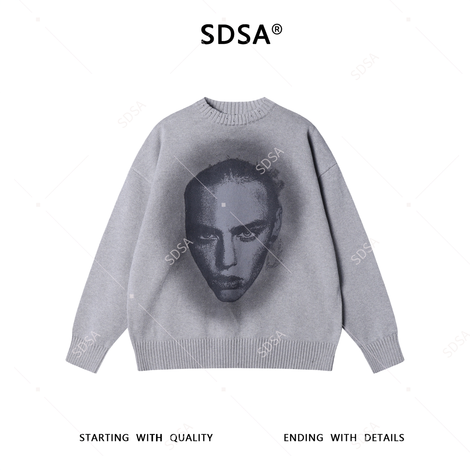 SDSA男士秋冬新款痞帅男装美式高街人物印花圆领毛衣百搭宽松上衣