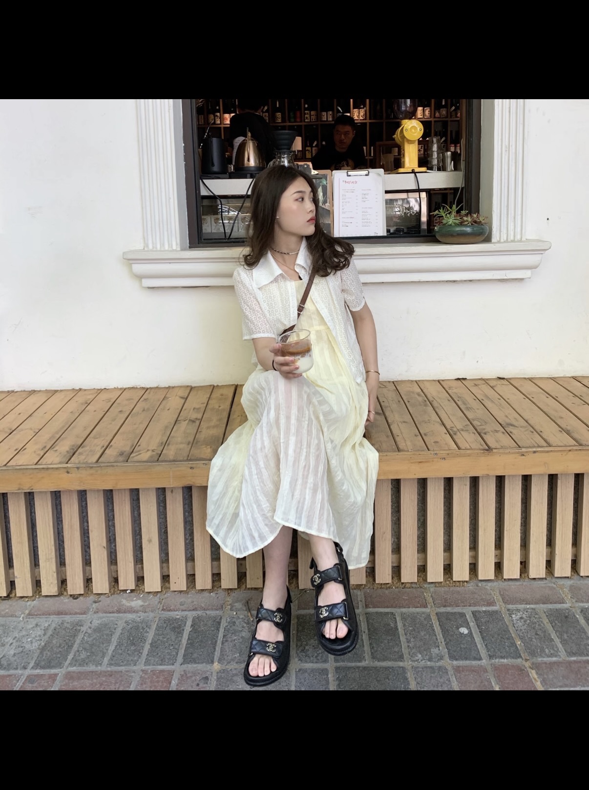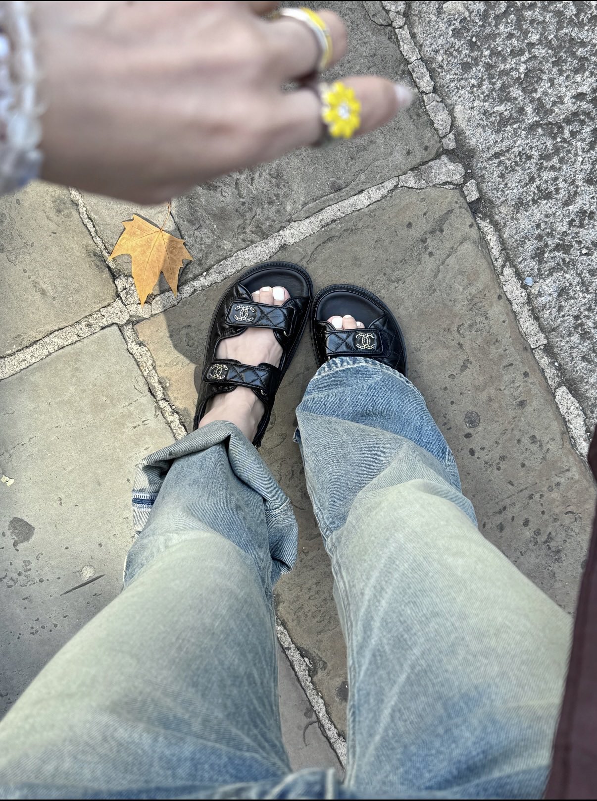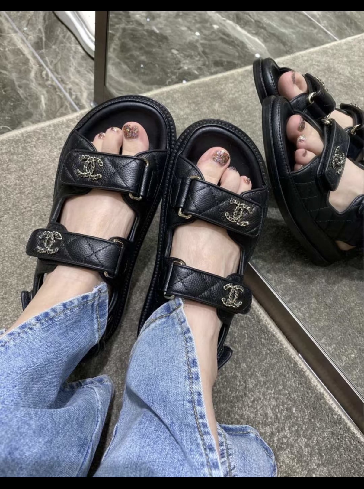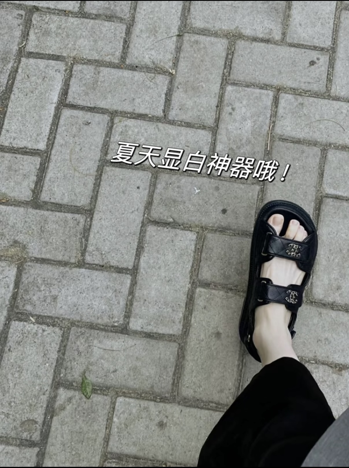 魔术贴小凉鞋巨百搭!! 鞋头部分恰到好处的露出脚尖 上脚时尚又秀气