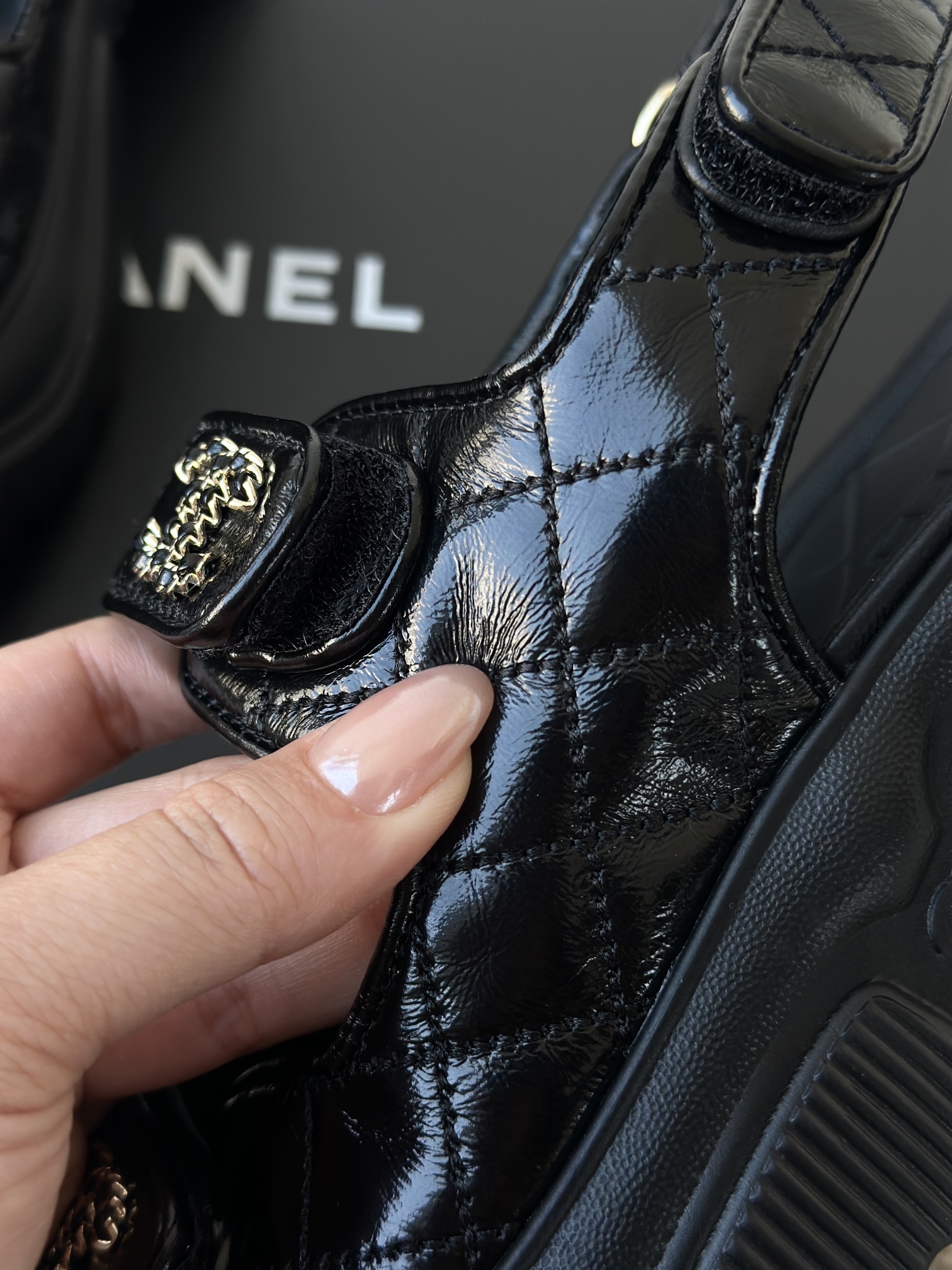 ★鞋面:超柔软油牛皮,经典电绣菱格工艺,皮面特制甩纹工艺,搭配标志性 双C五金扣,低调精致!