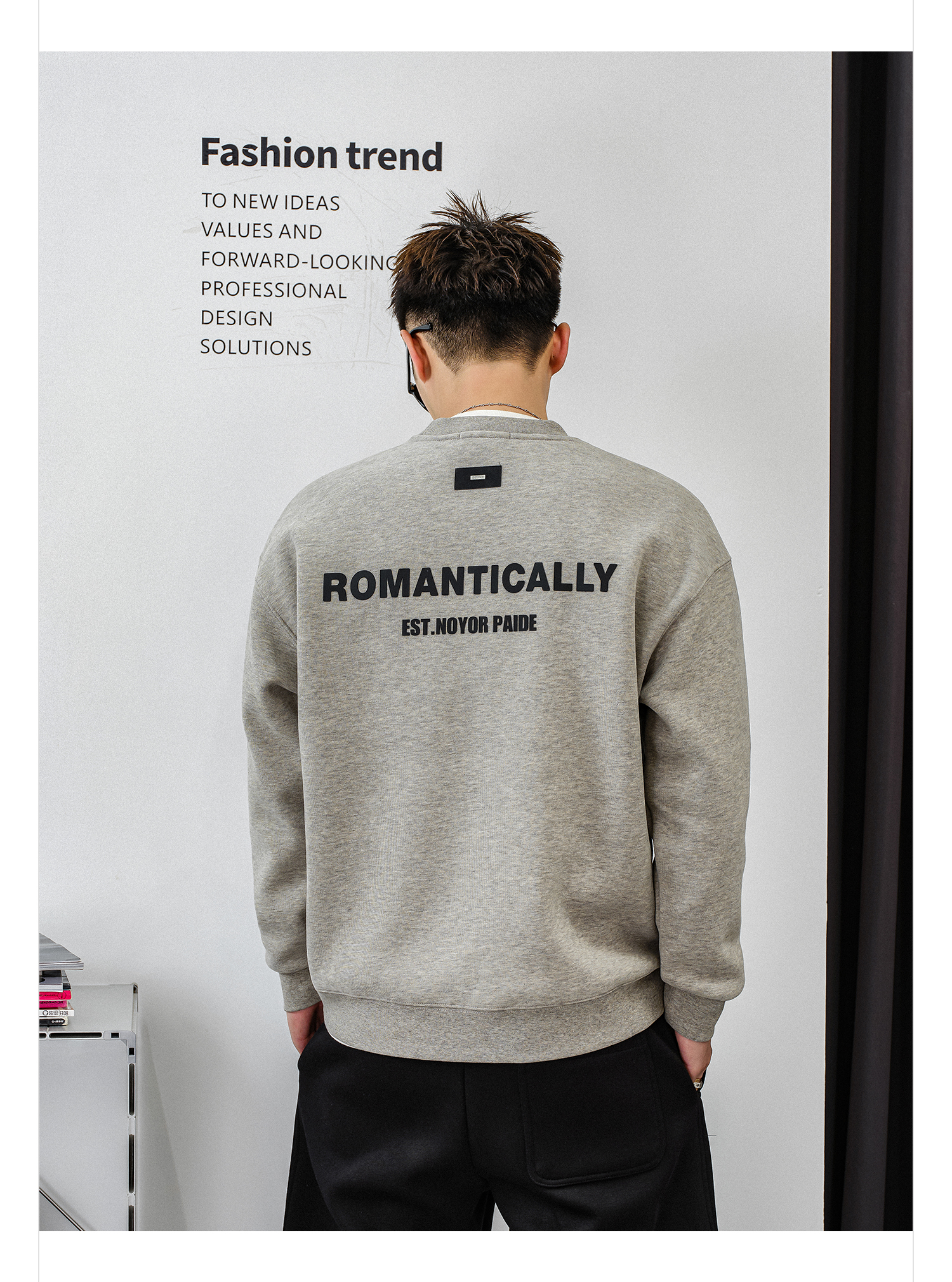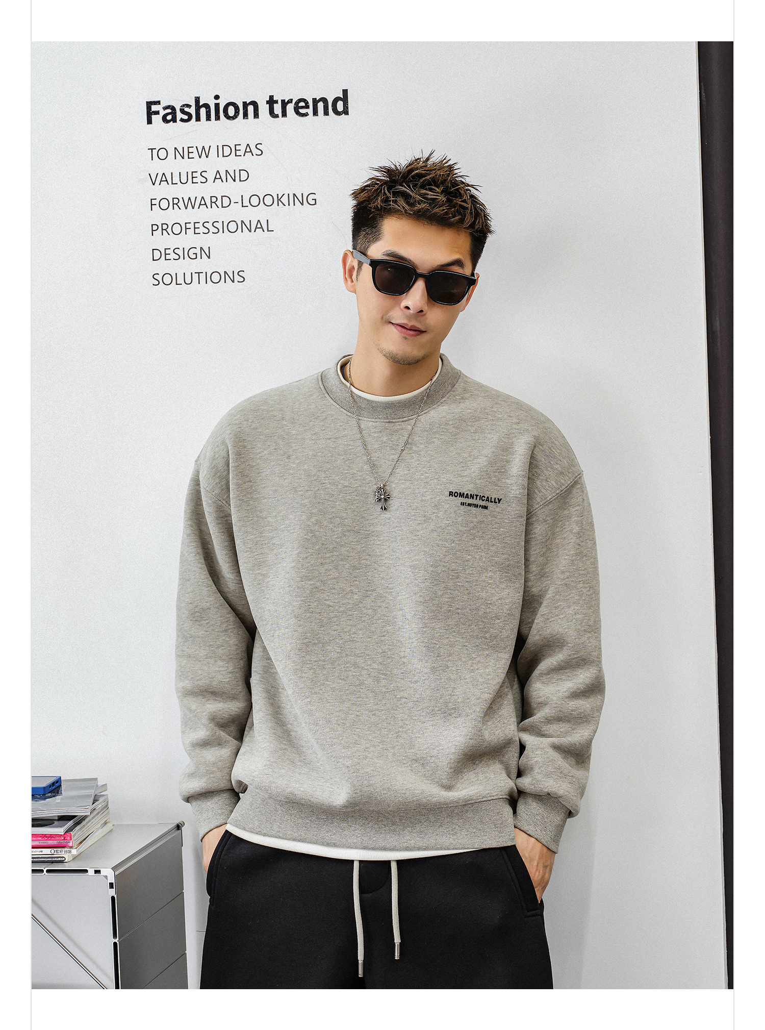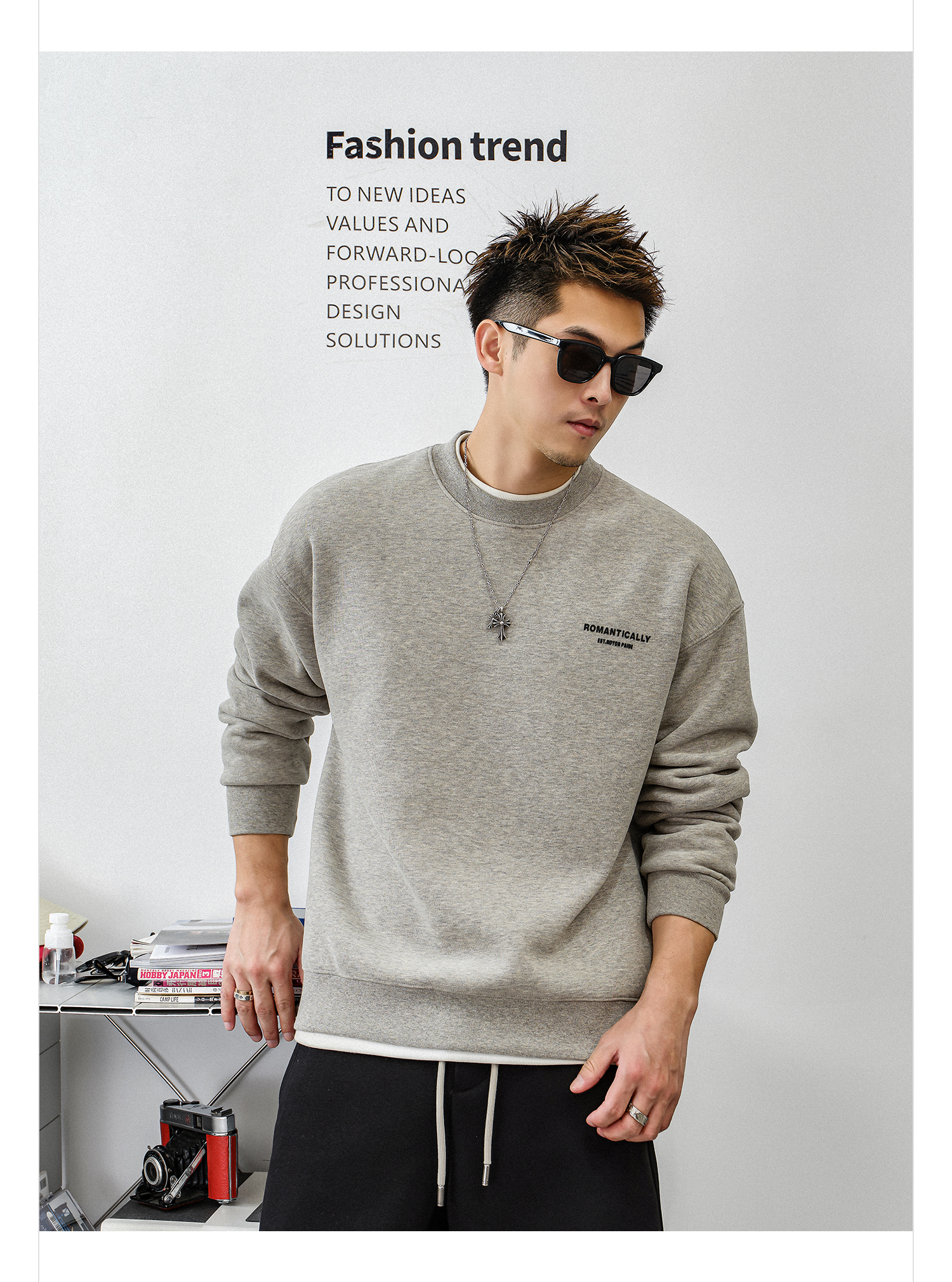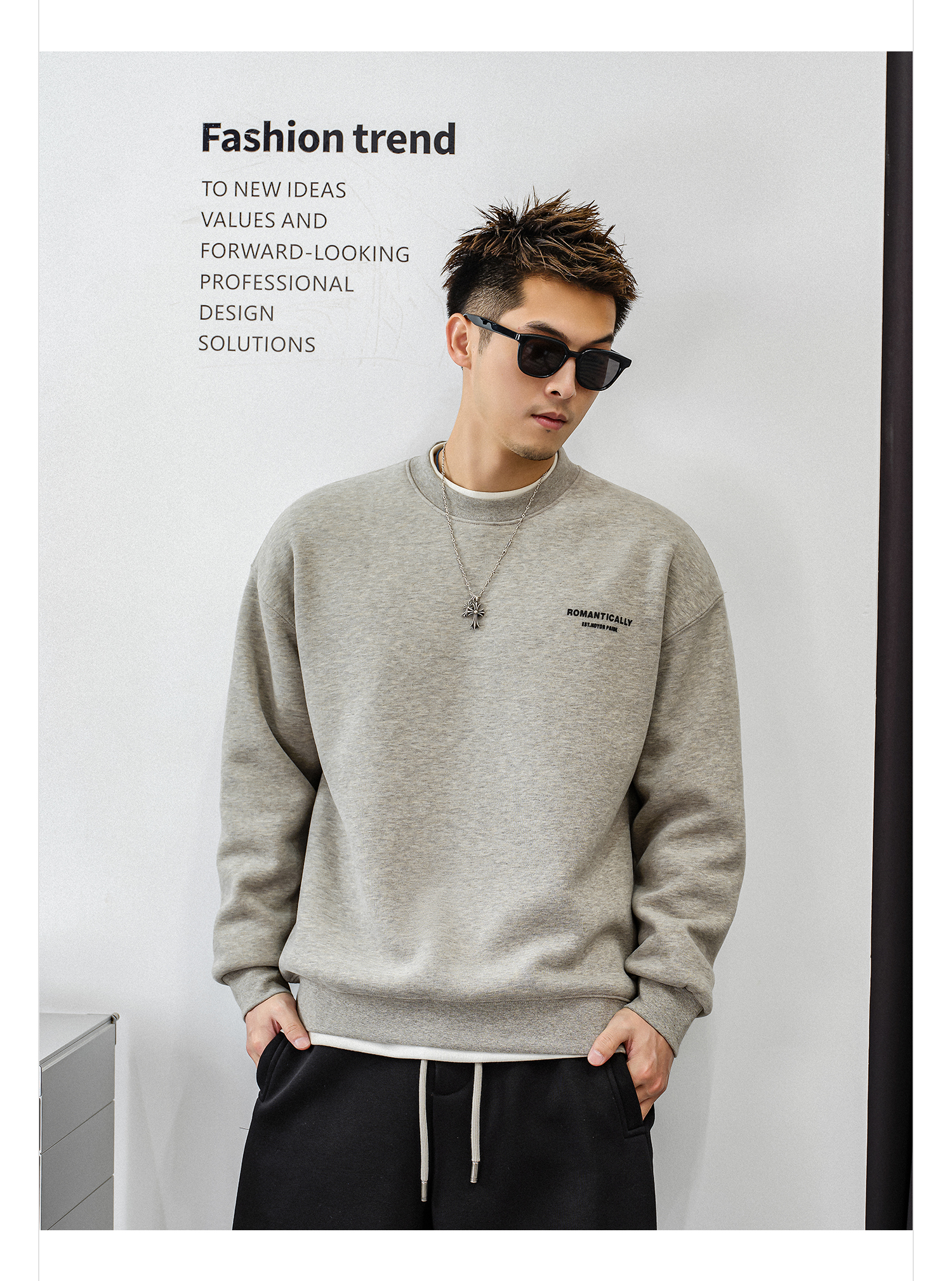 徐太浪【字母印花 帅气大码】灰色加绒卫衣男秋冬内搭打底衫上衣