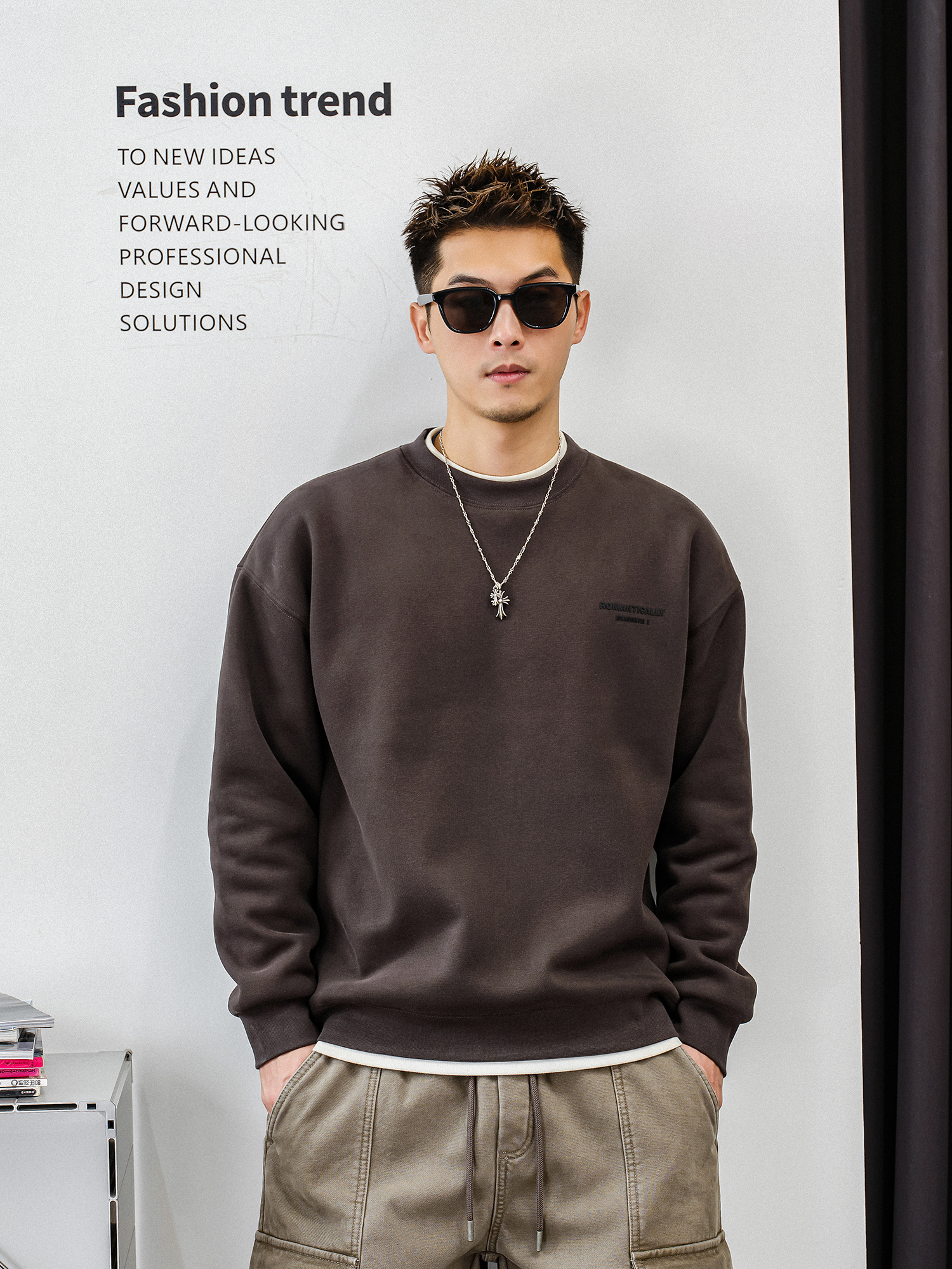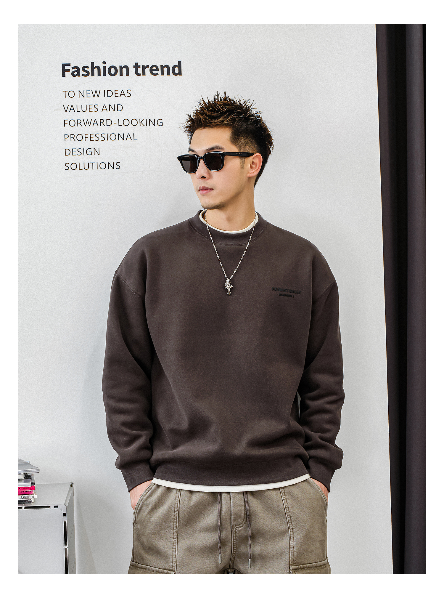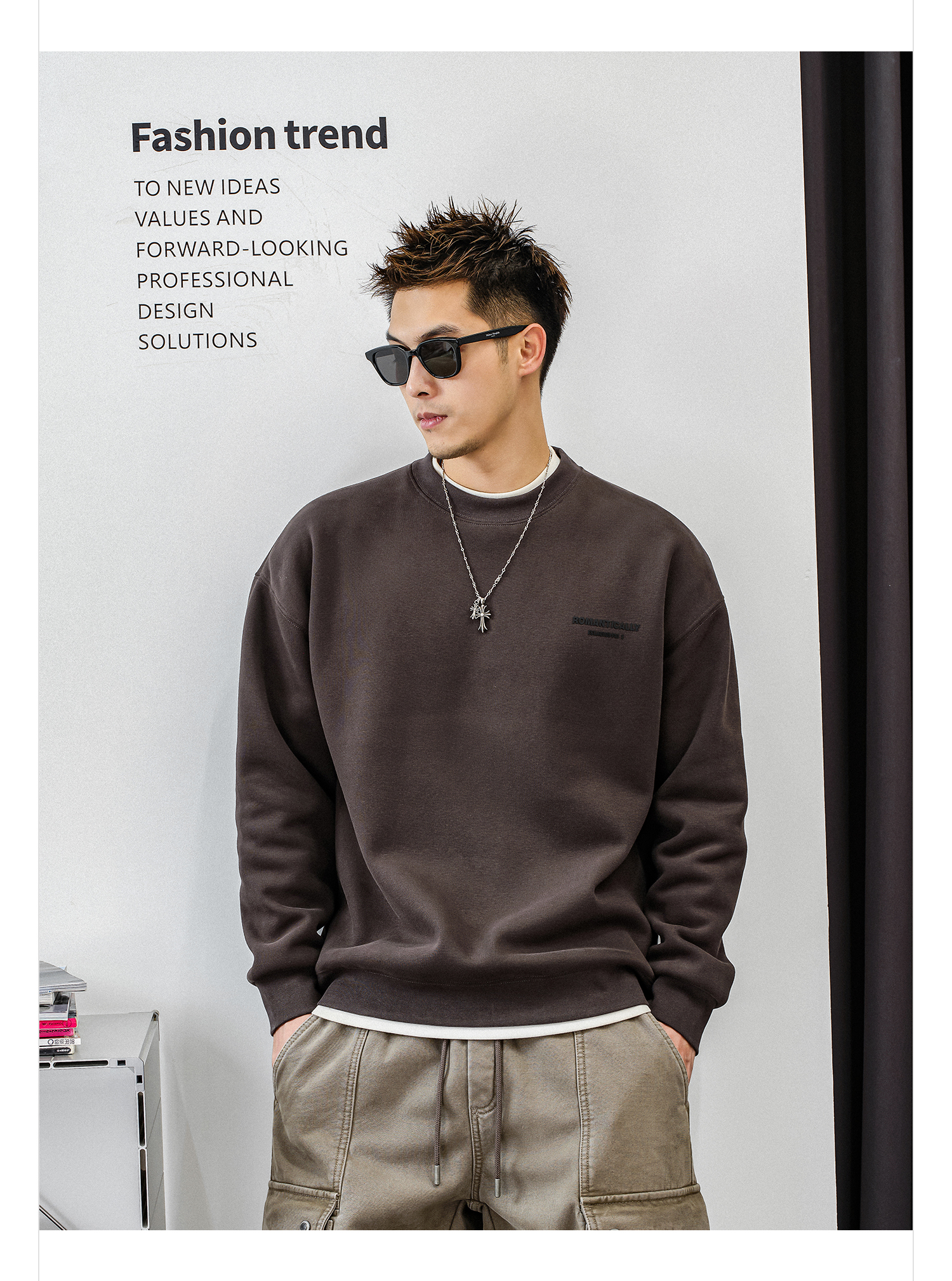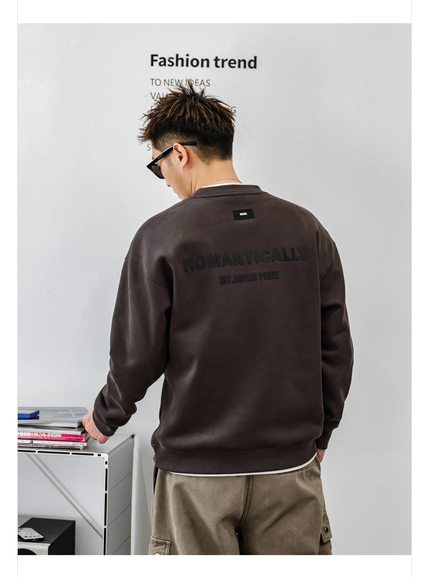 徐太浪【字母印花 帅气大码】灰色加绒卫衣男秋冬内搭打底衫上衣