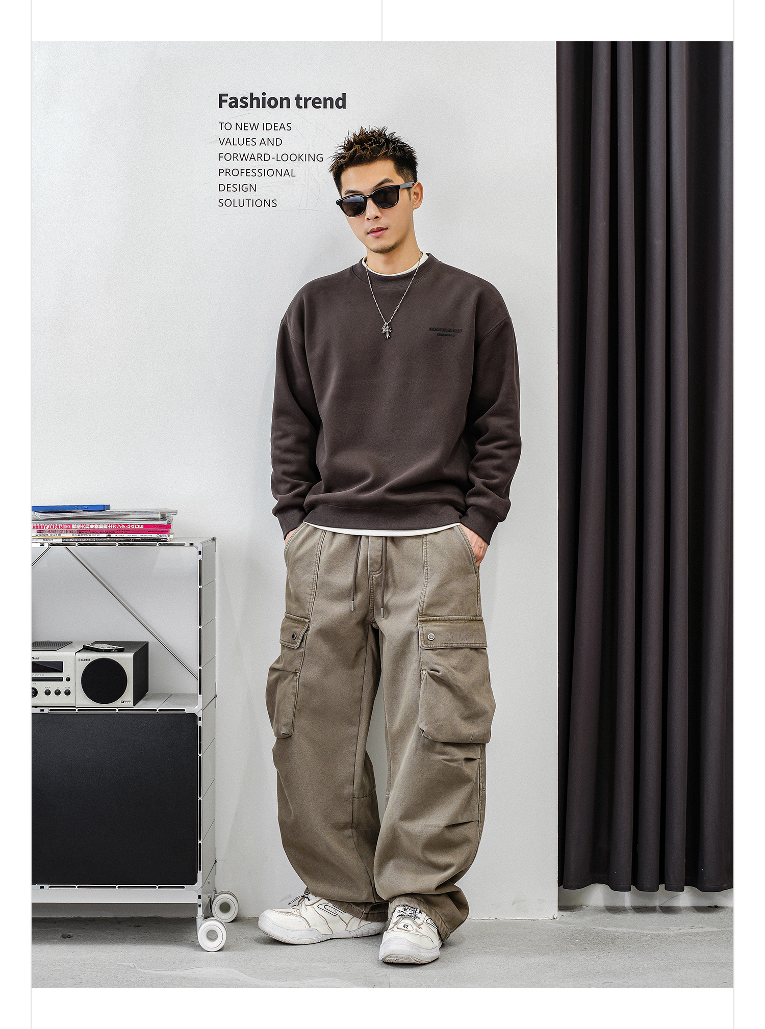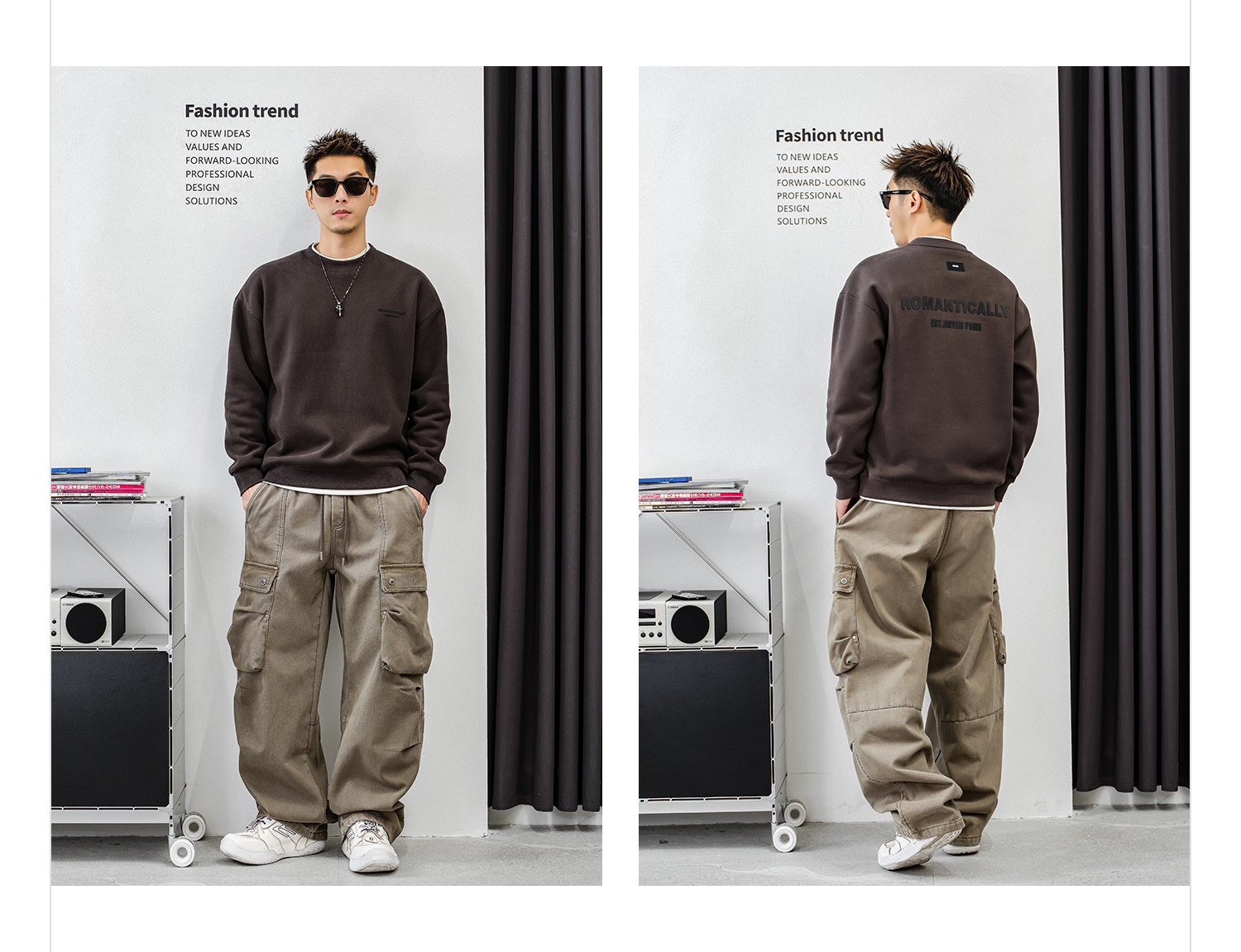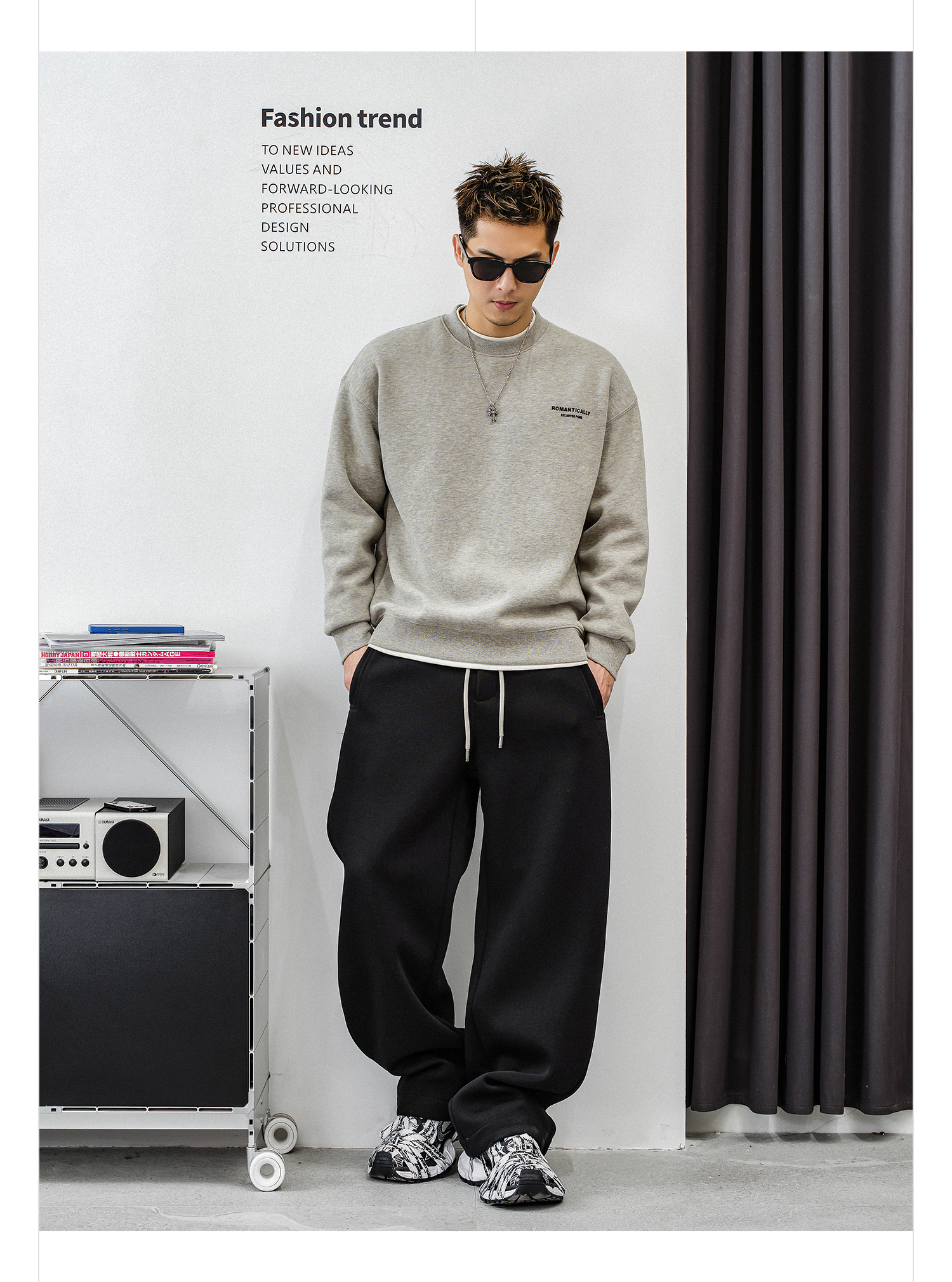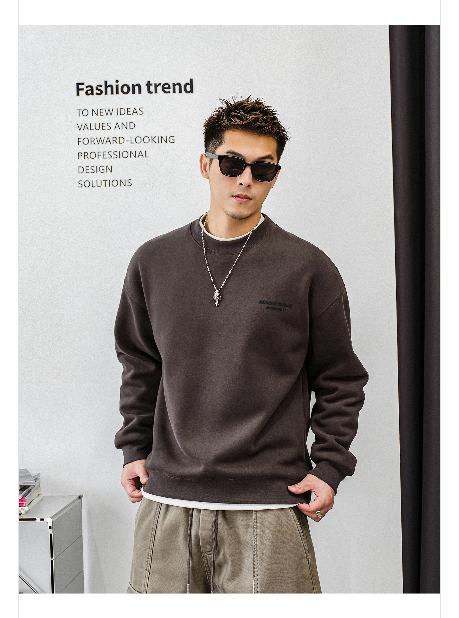 徐太浪【字母印花 帅气大码】灰色加绒卫衣男秋冬内搭打底衫上衣