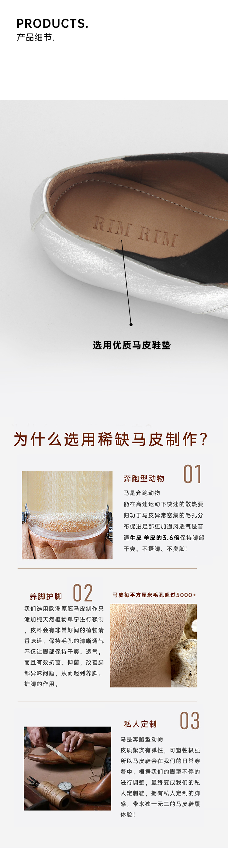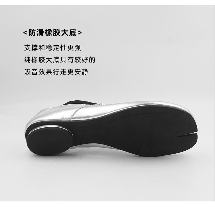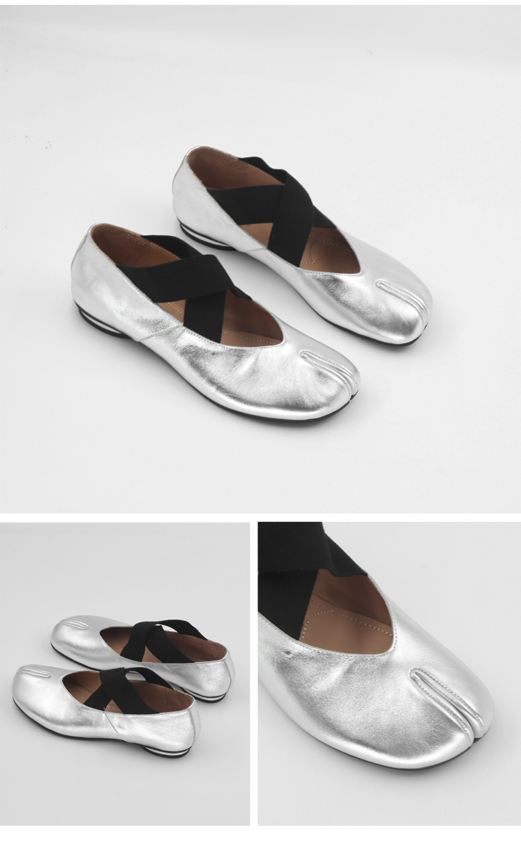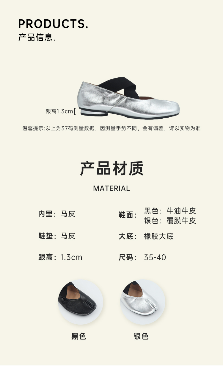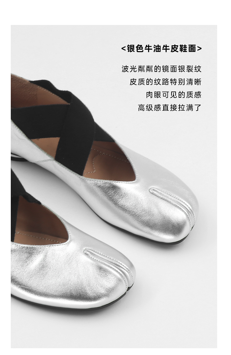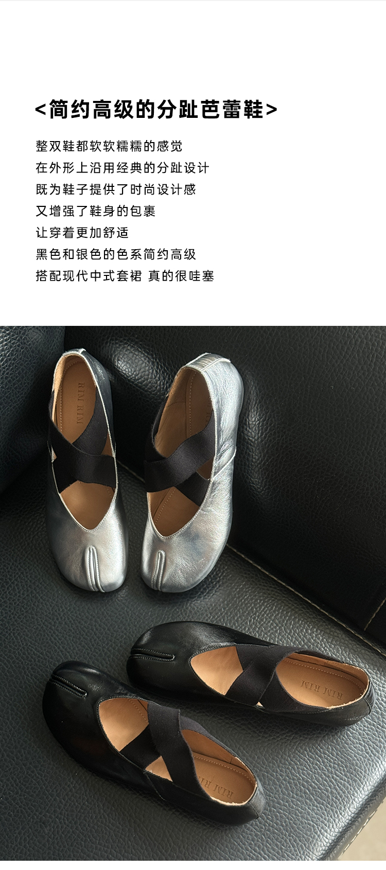 RIM RIM塑型马皮鞋分趾鞋银色平底玛丽珍鞋舒适软底浅口单鞋复古鞋2435