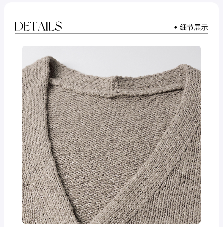 ROMI STUDIO“松弛自在”3针单边亚麻棉混纺肌理感V领开衫 432WS014
