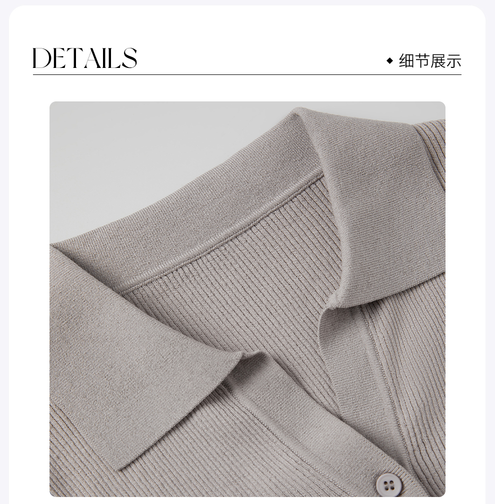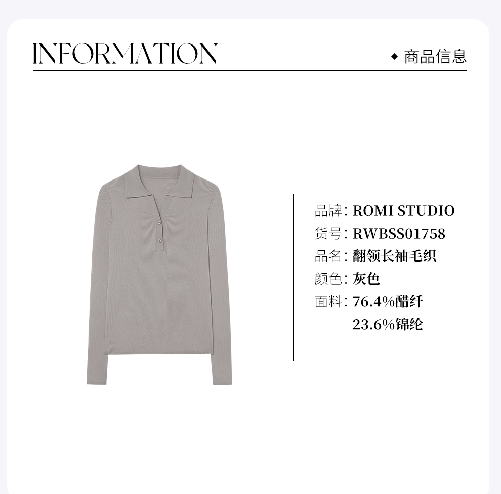 ROMI STUDIO“简约优雅”环保醋纤弹力罗纹翻领针织上衣 RWBSS01758